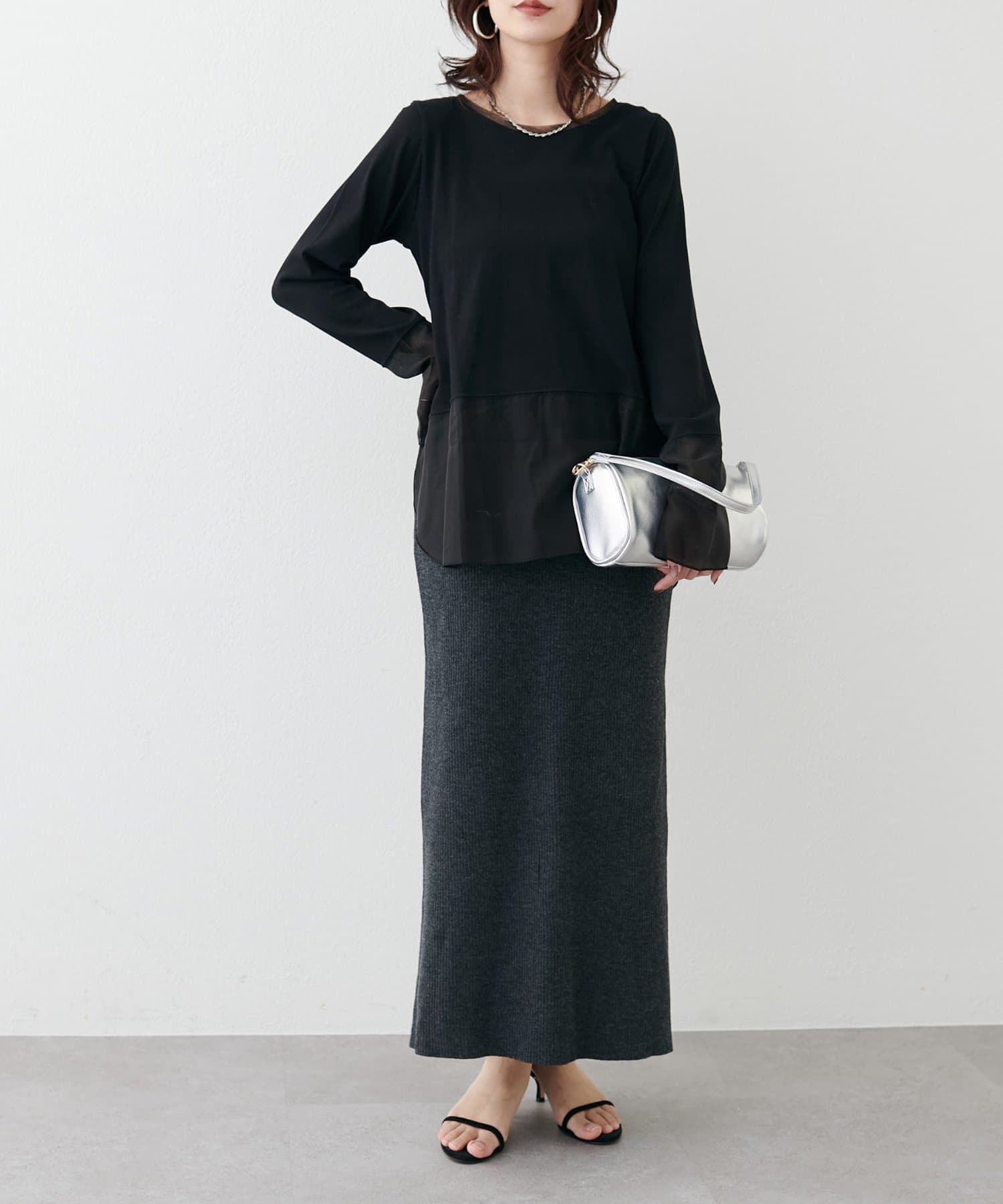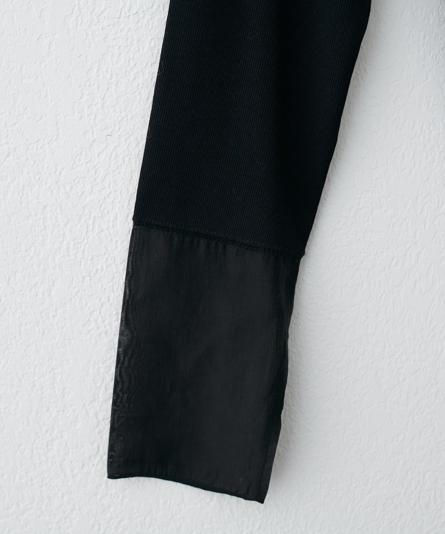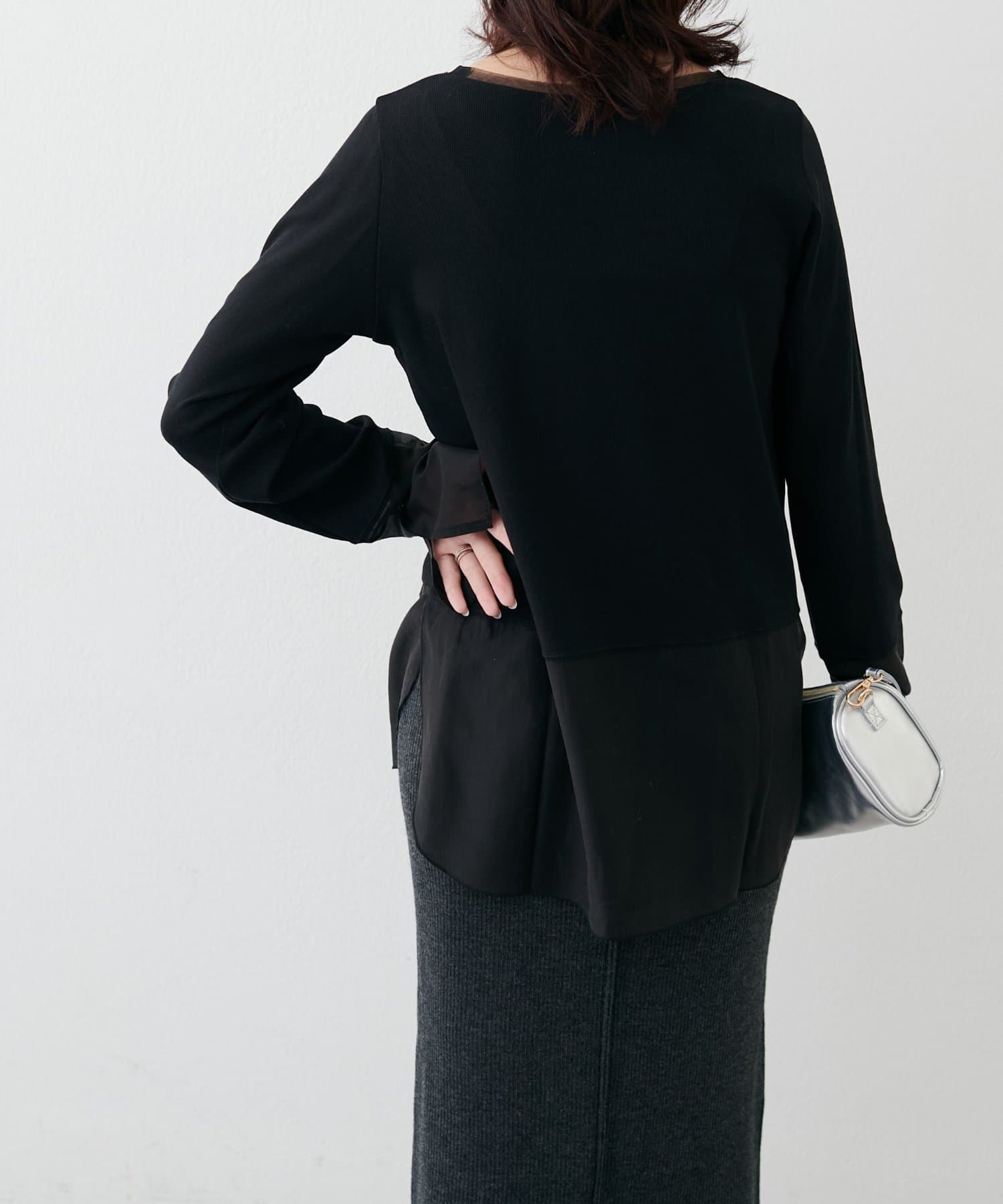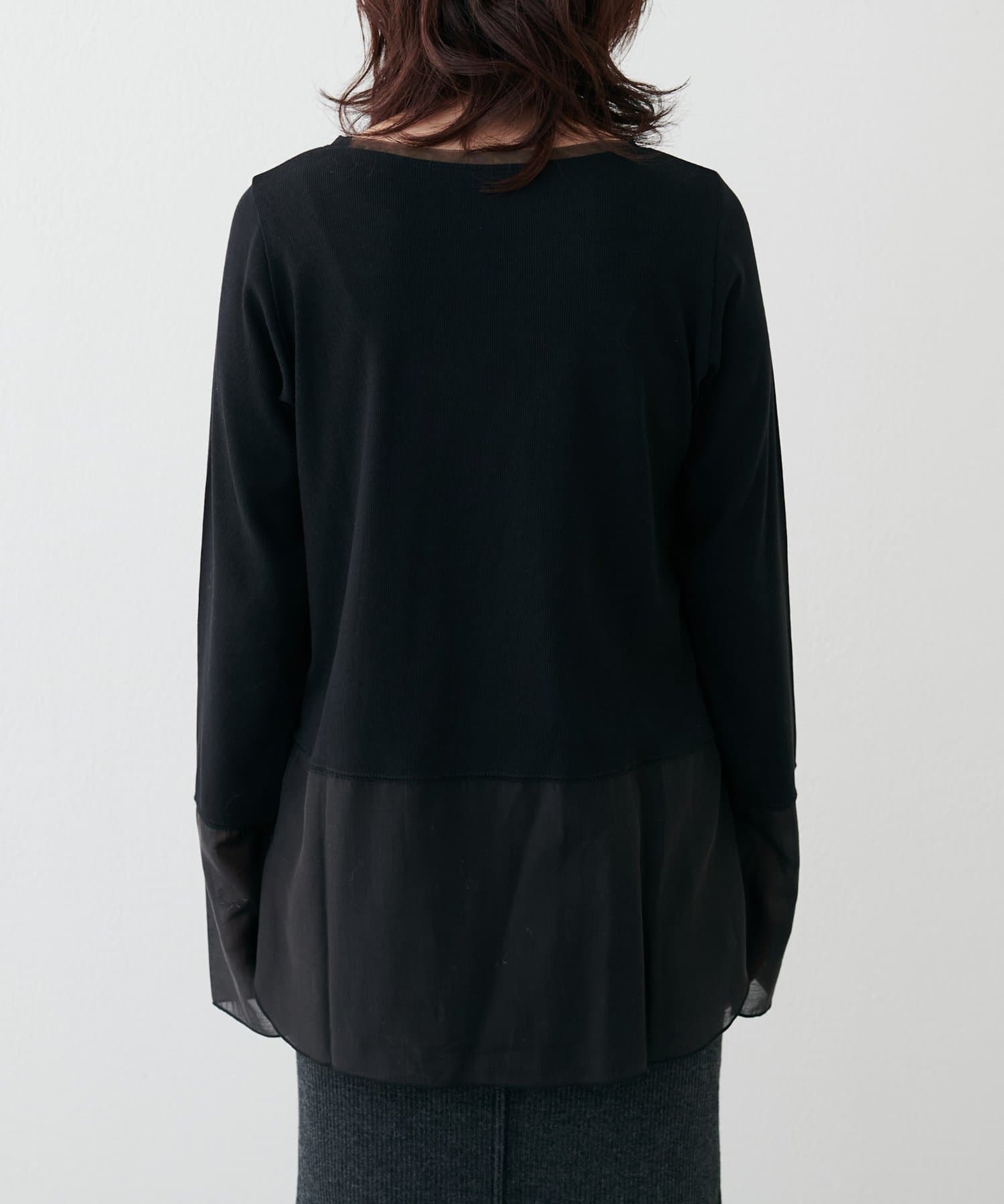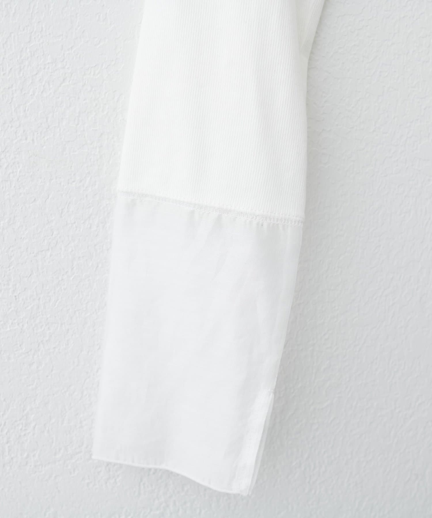 トレンドライクなシアーチュールをドッキングさせてロングスリーブTシャツ。