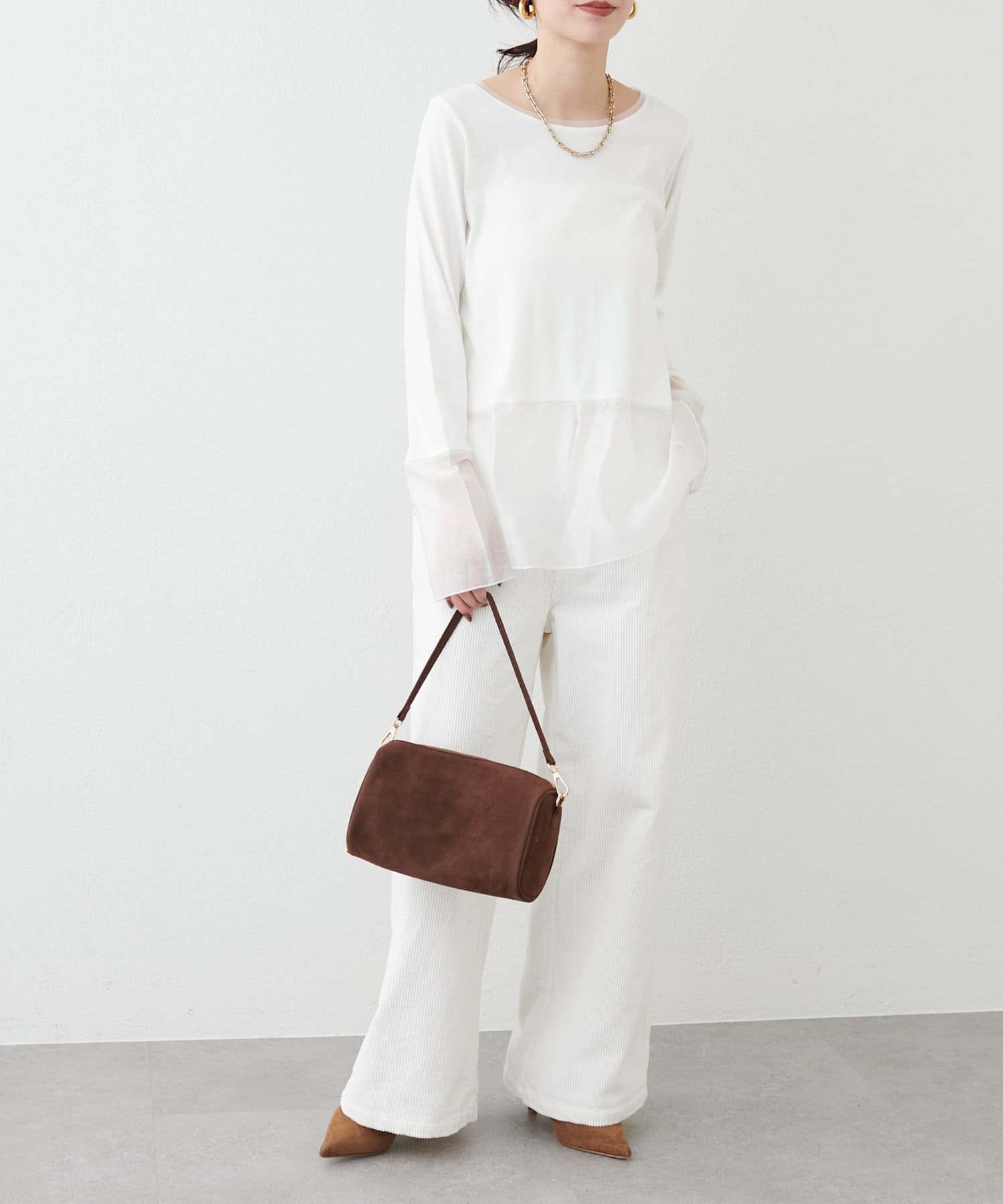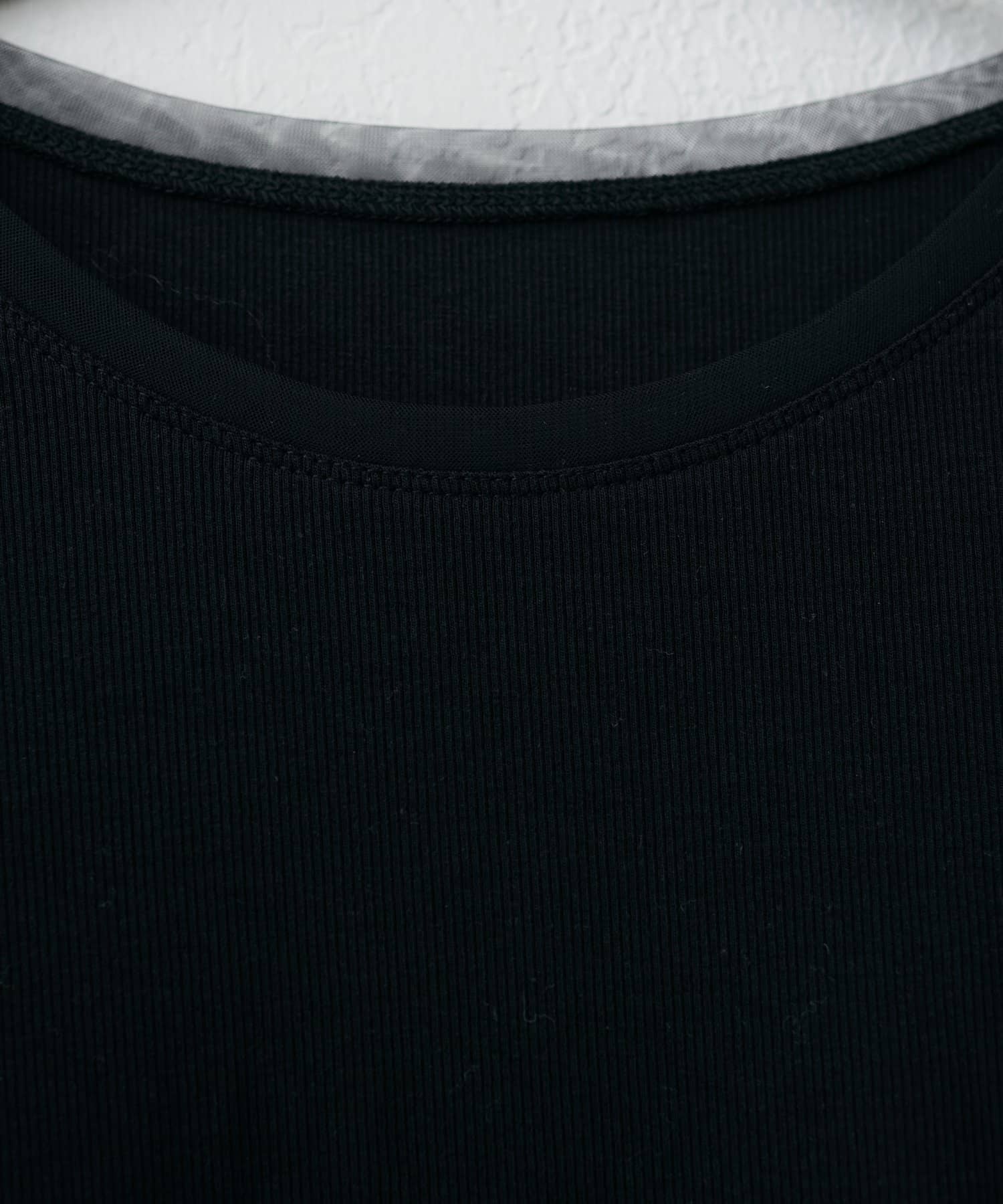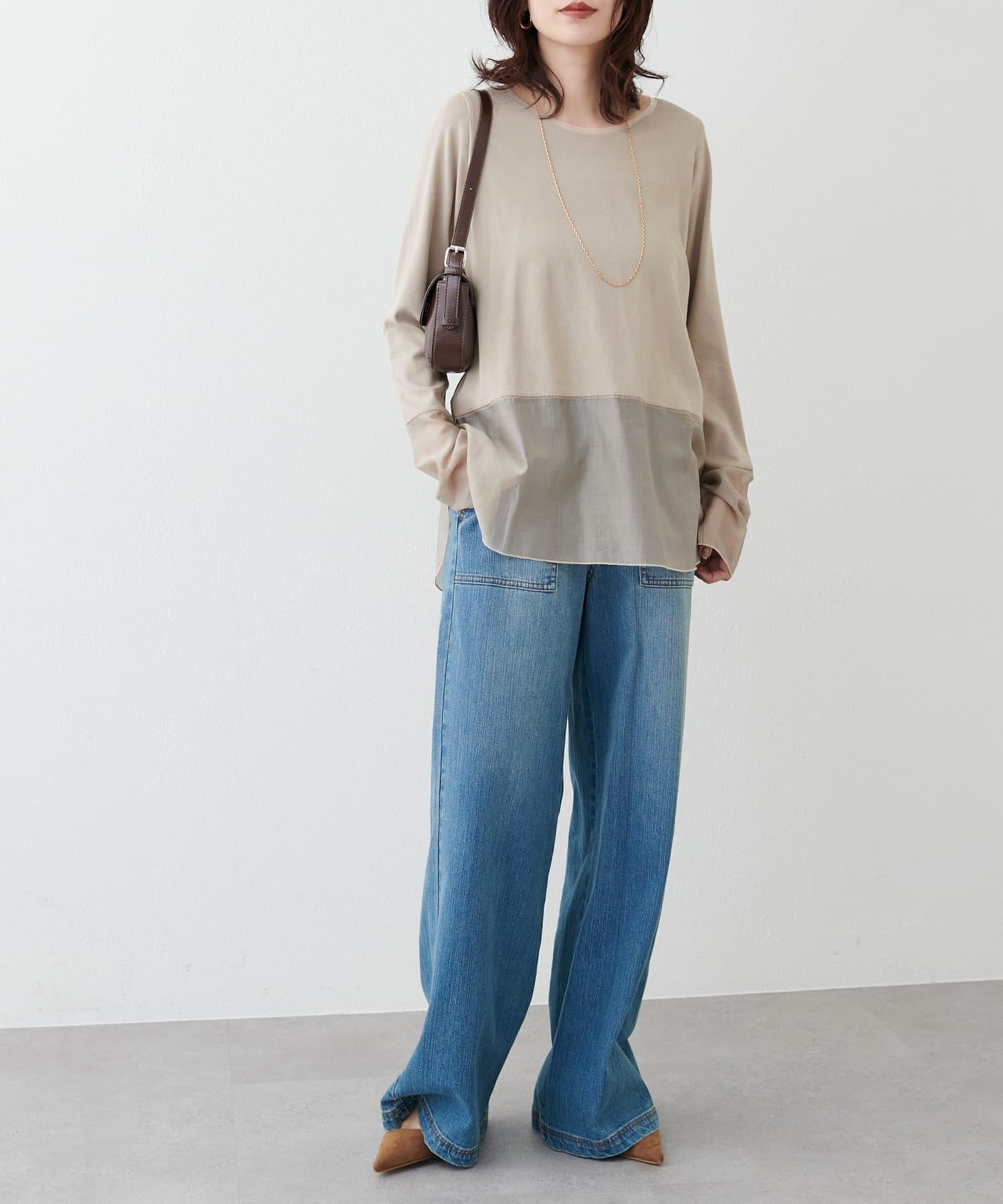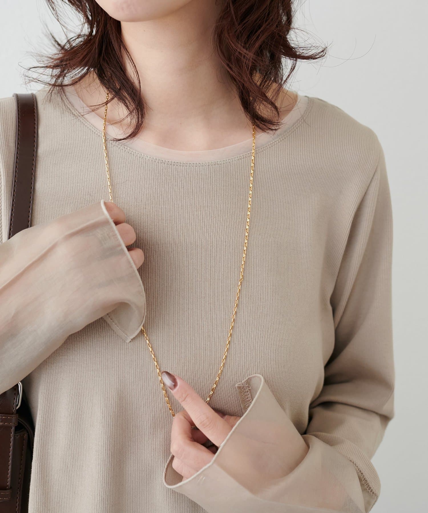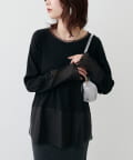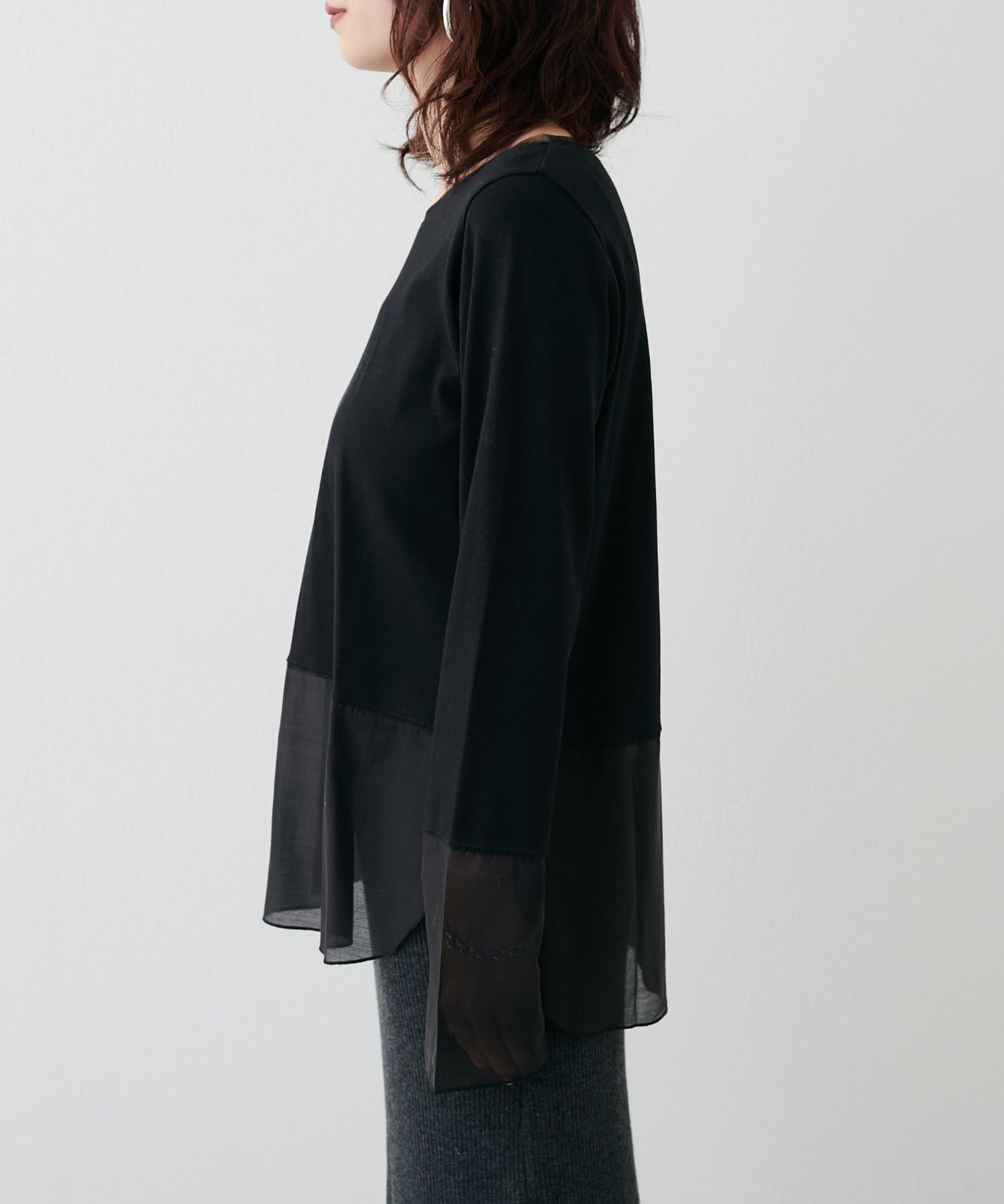 トレンドライクなシアーチュールをドッキングさせてロングスリーブTシャツ。