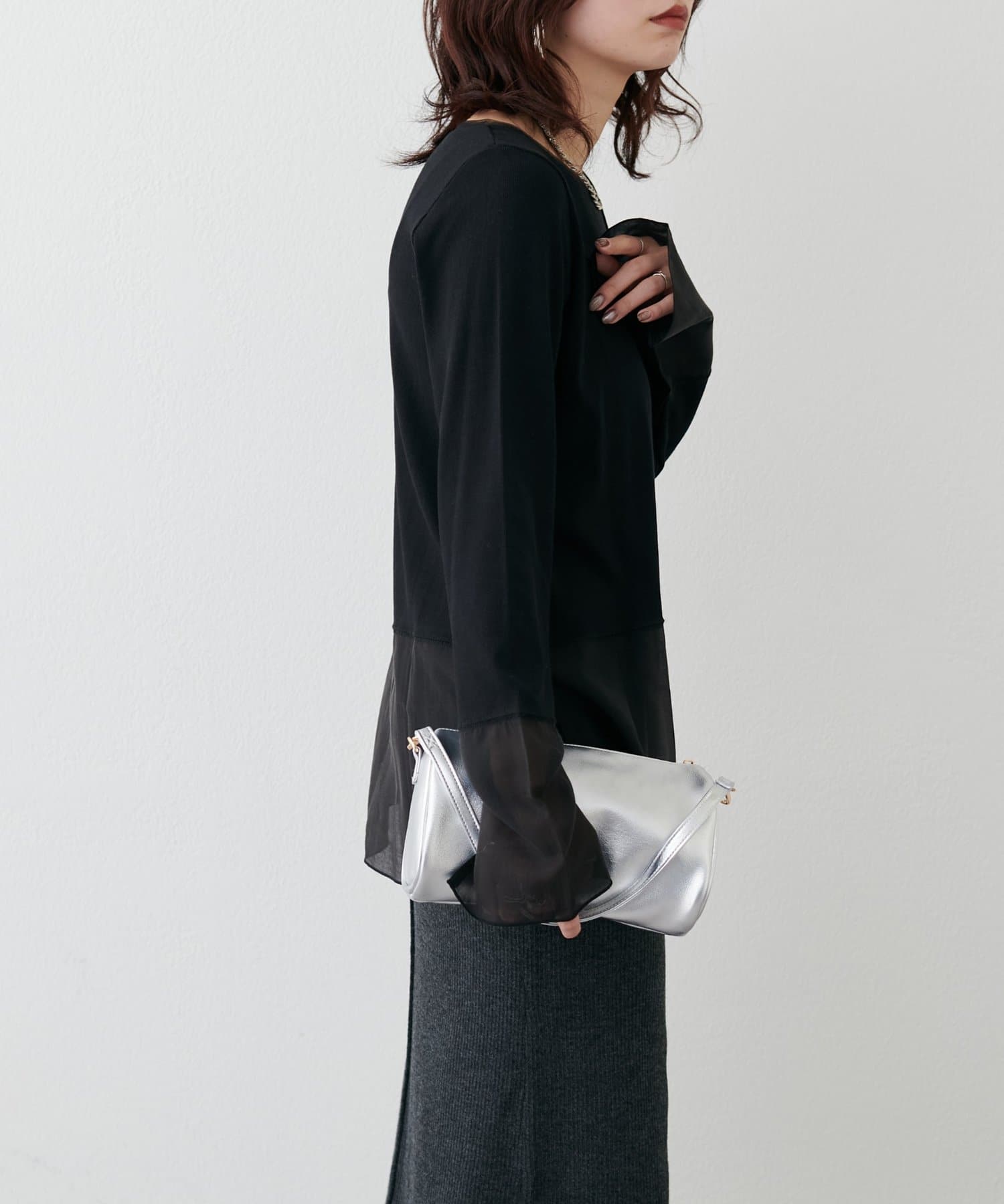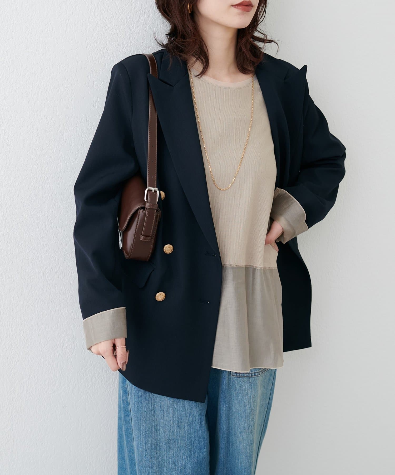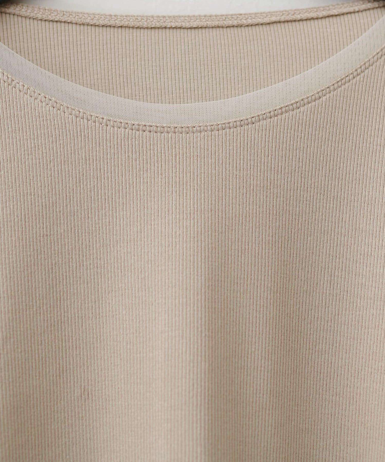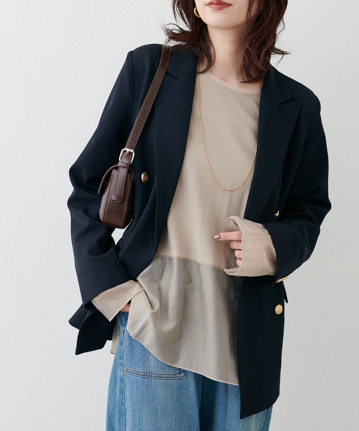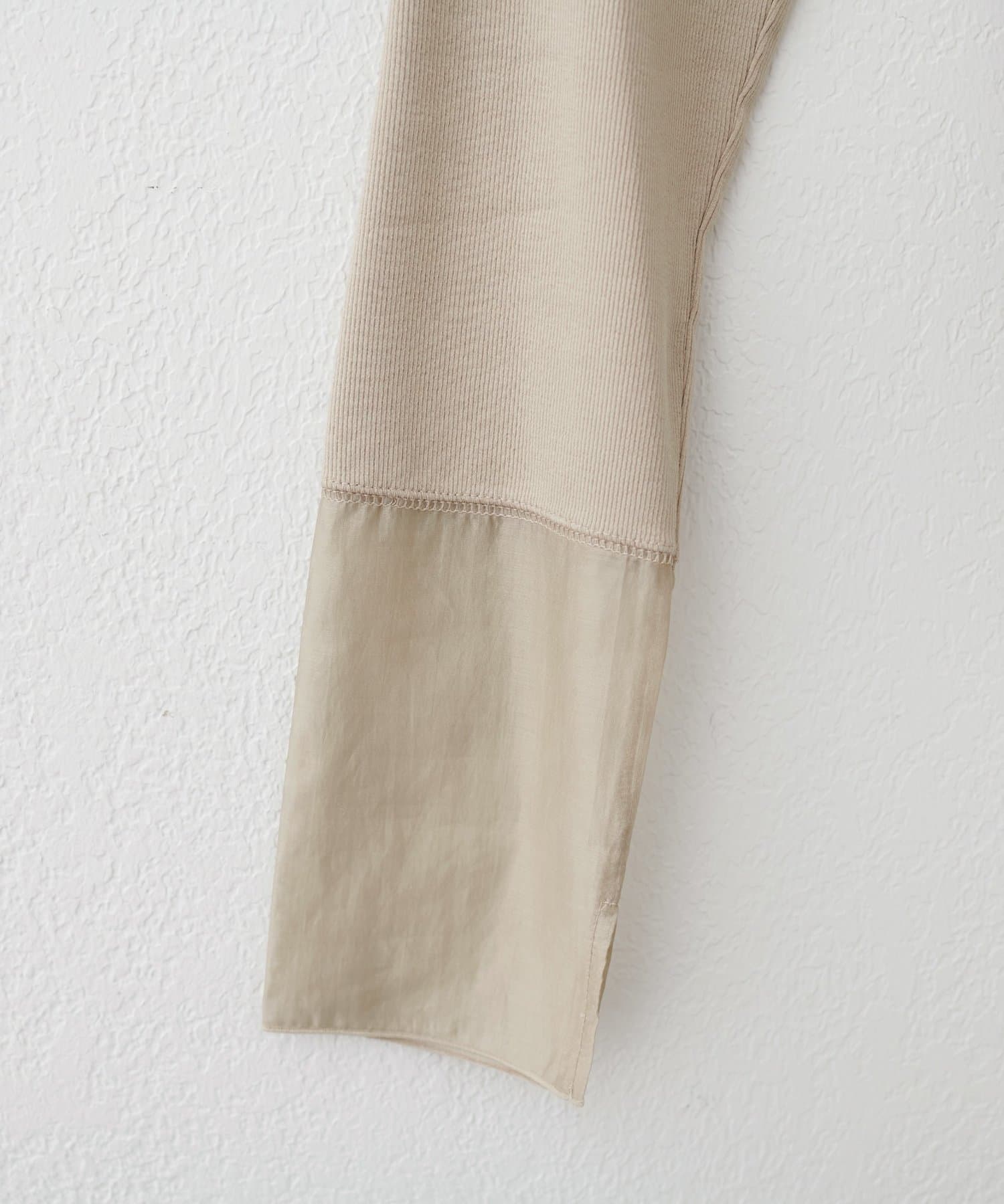 トレンドライクなシアーチュールをドッキングさせてロングスリーブTシャツ。