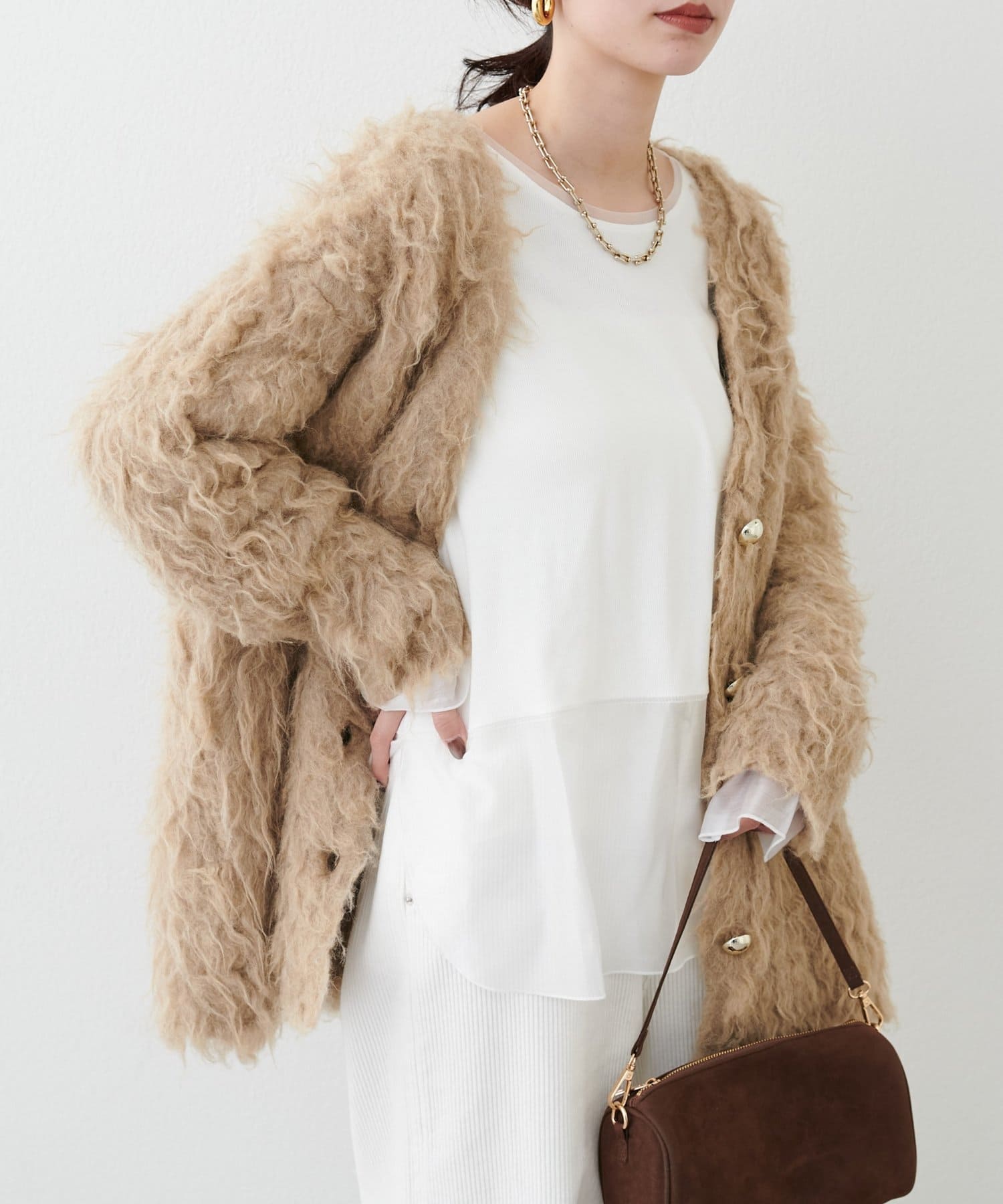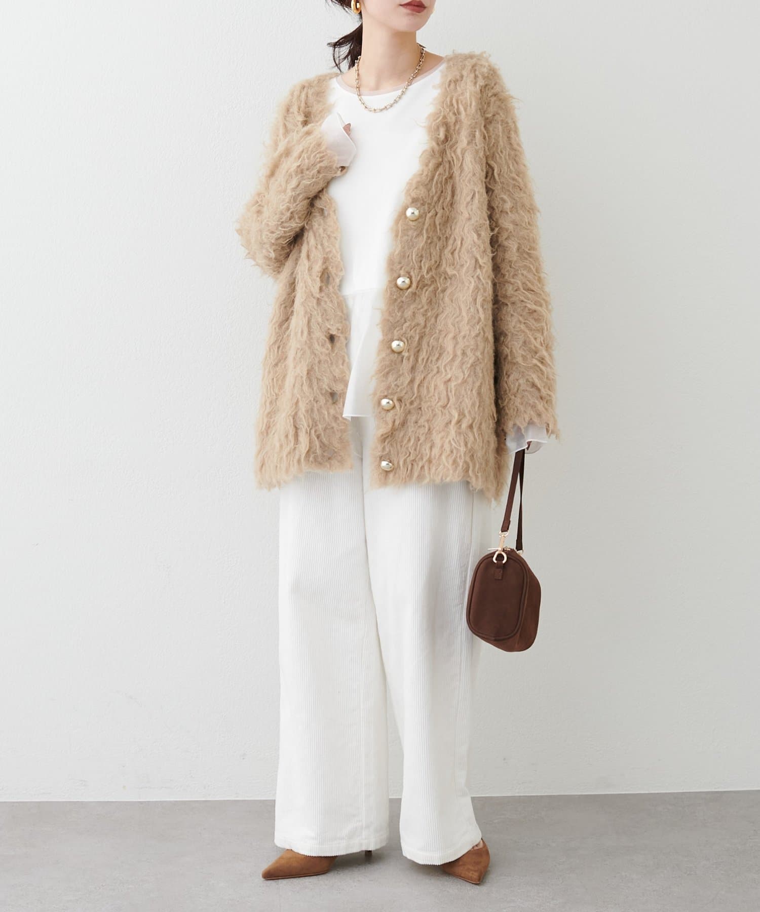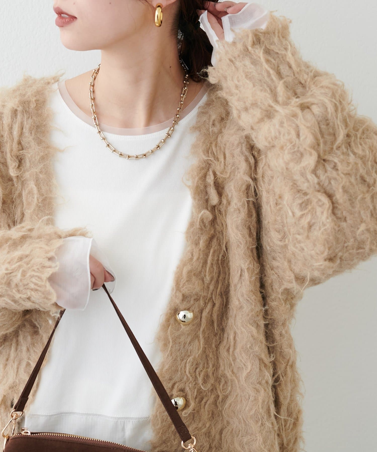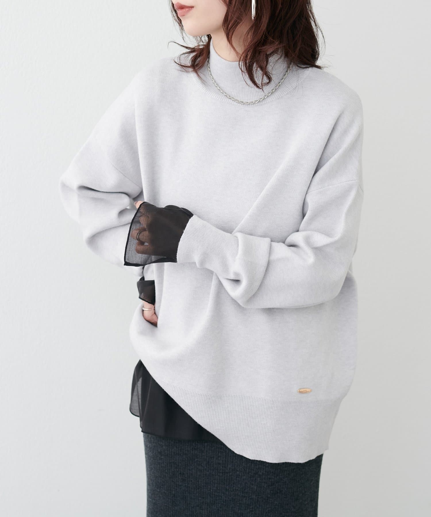 袖口にはチュールを施し、手元に軽いアクセントをプラスすることで、コーディネートに抜け感をプラスしてくれる一枚。