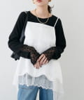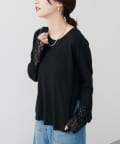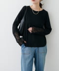 シンプルさの中に、袖の切り替えレースで華やかさをプラスしたカットソー。