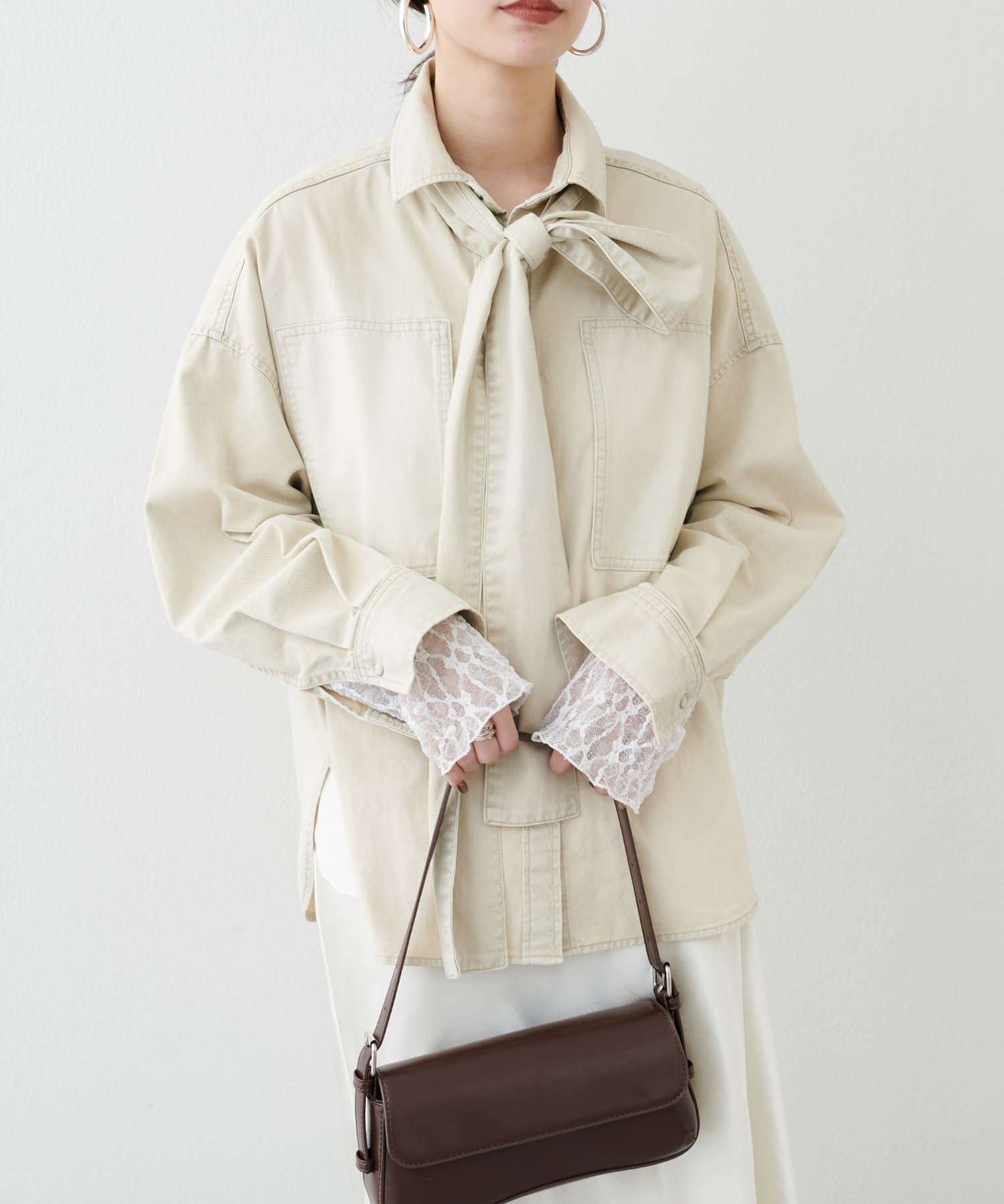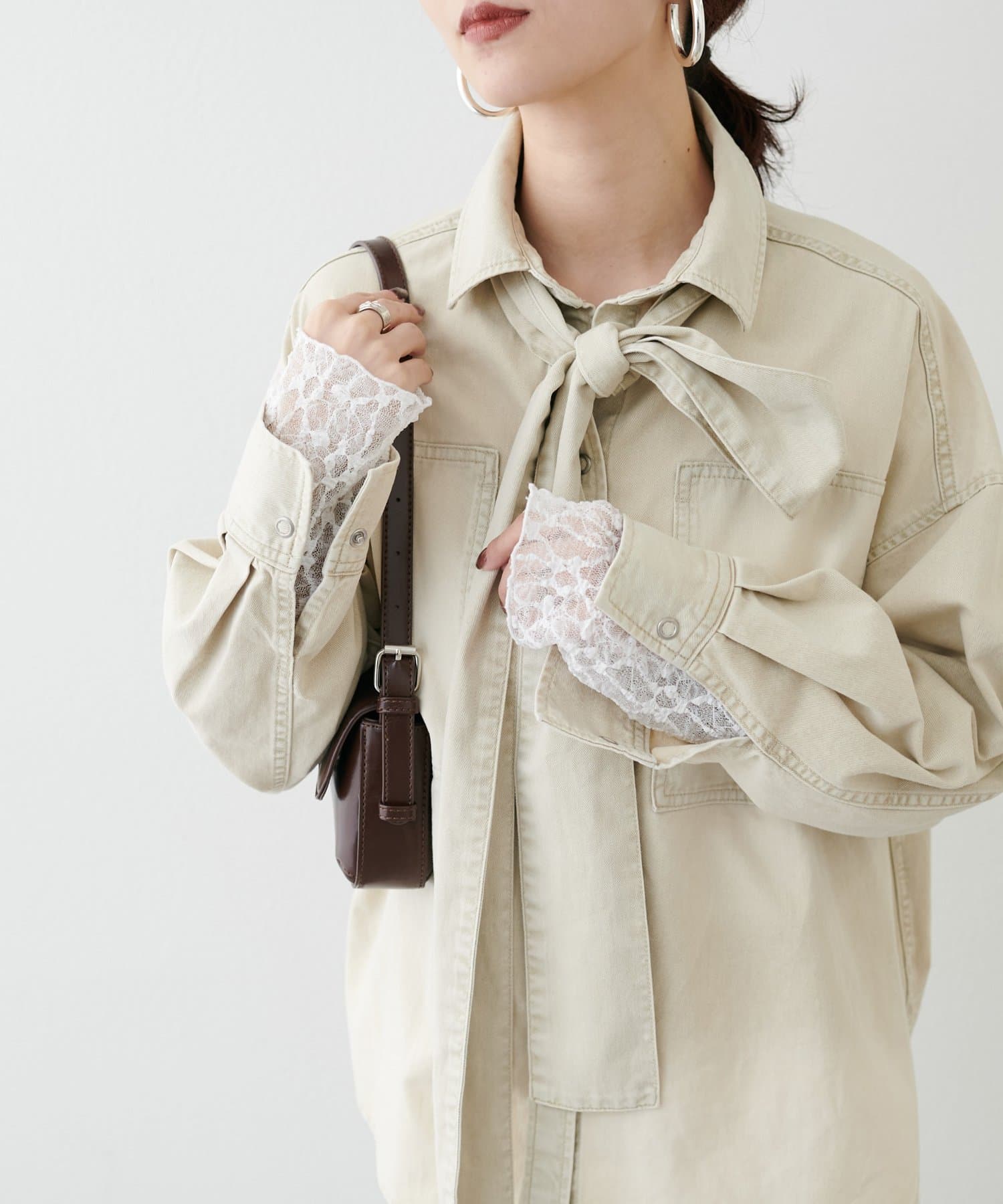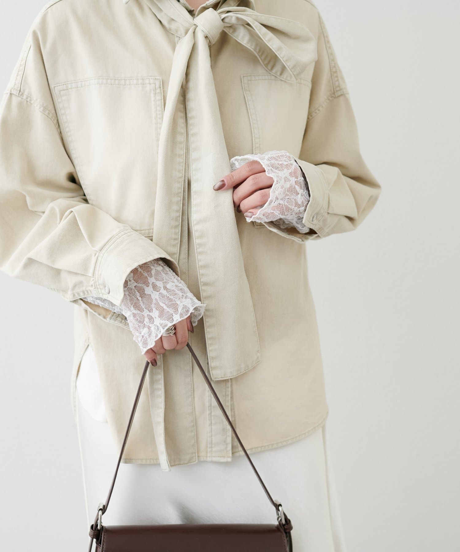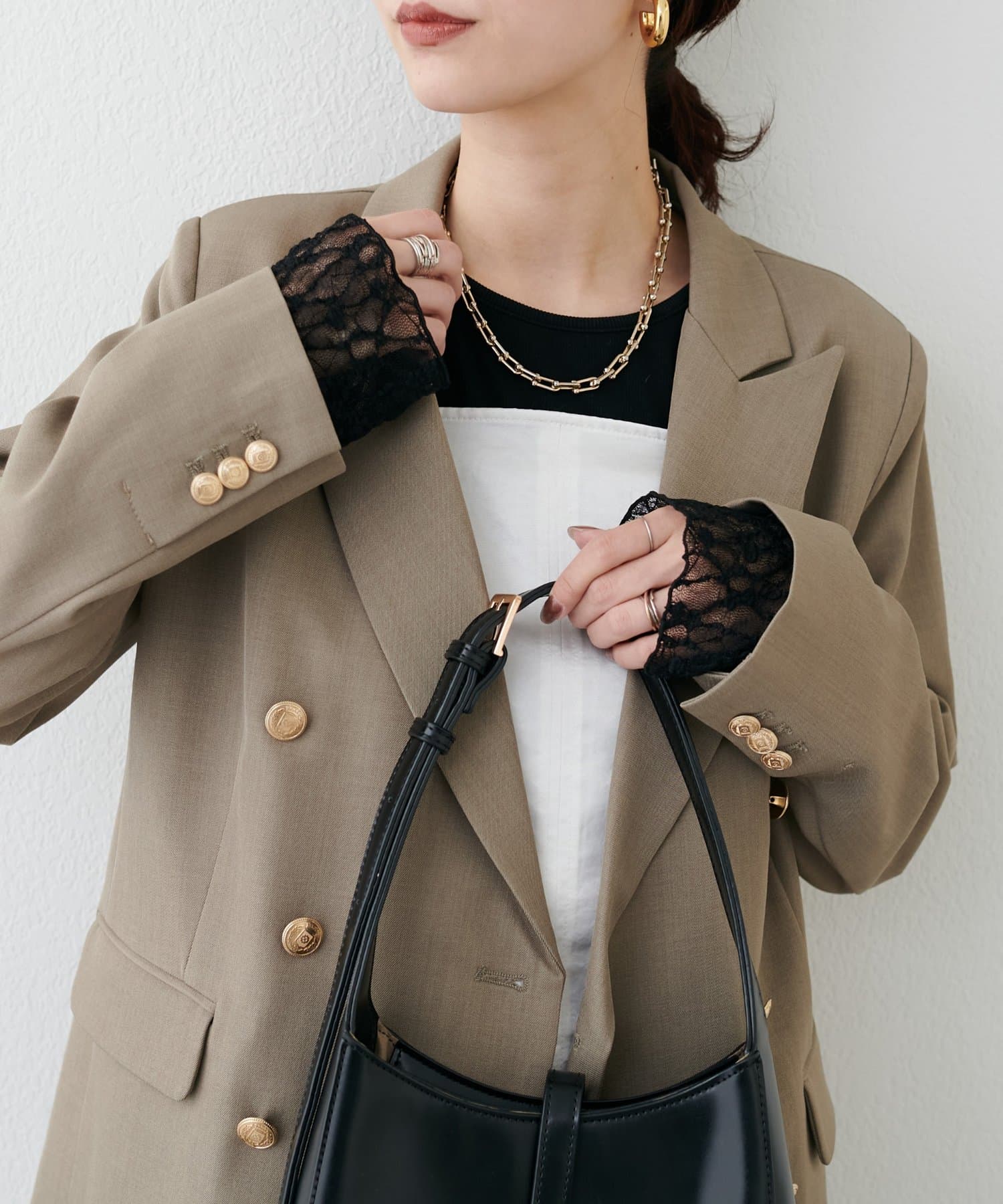 ジャケットやベストのインナーとしても使いやすく、袖口から覗くレースデザインがさりげないポイントになります。