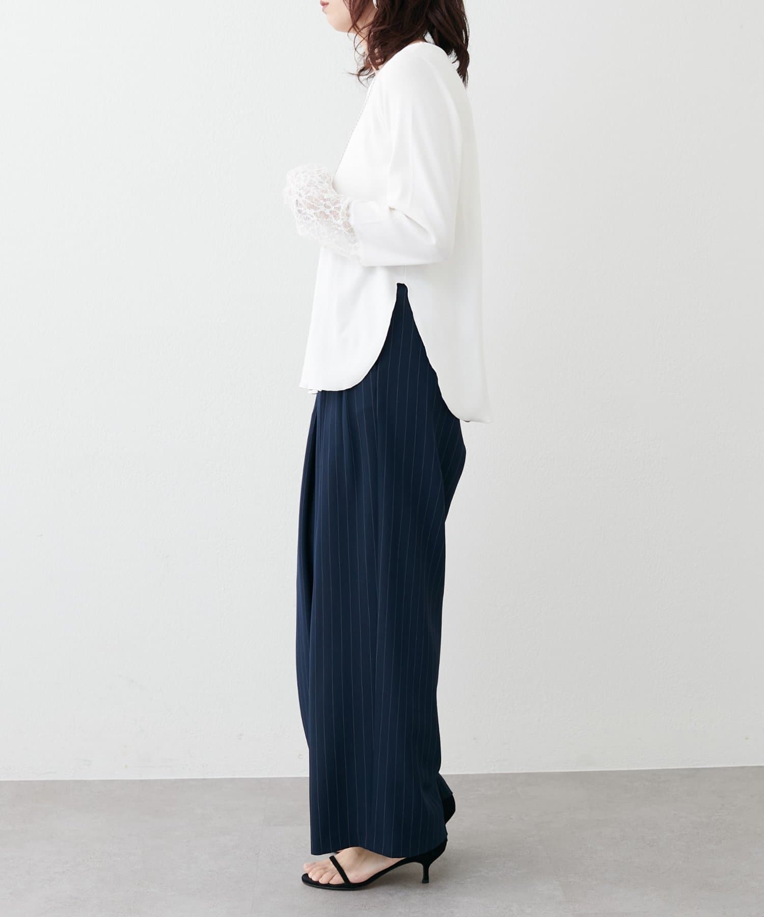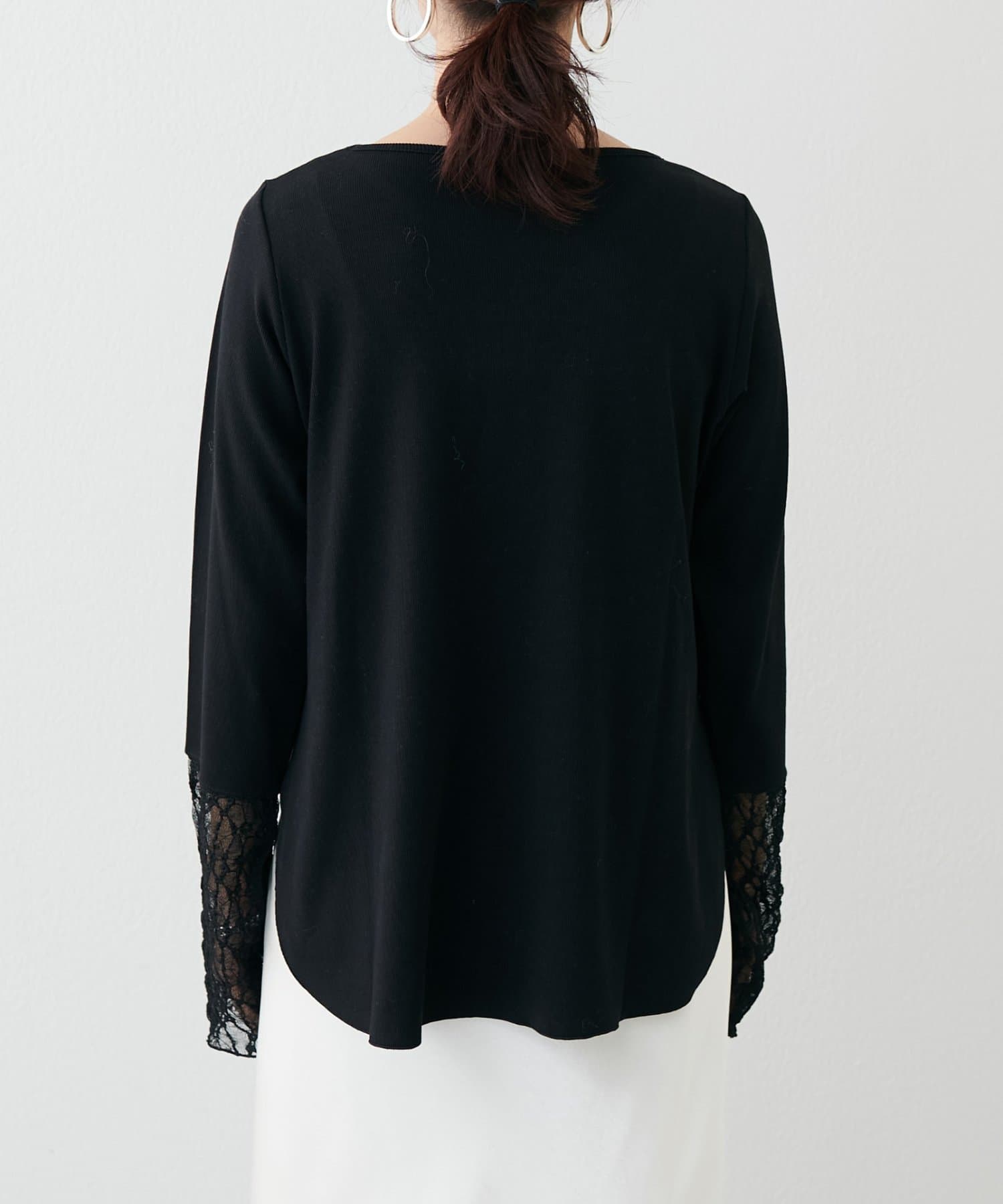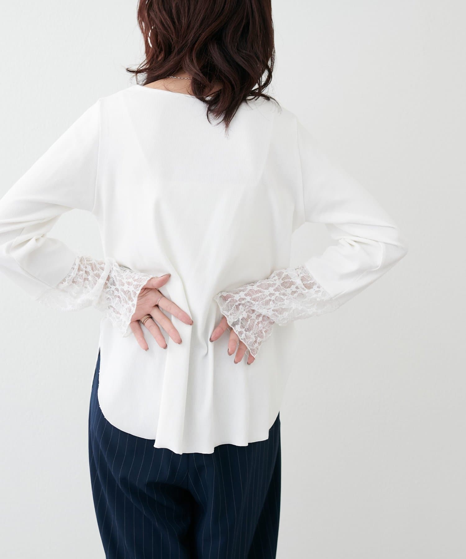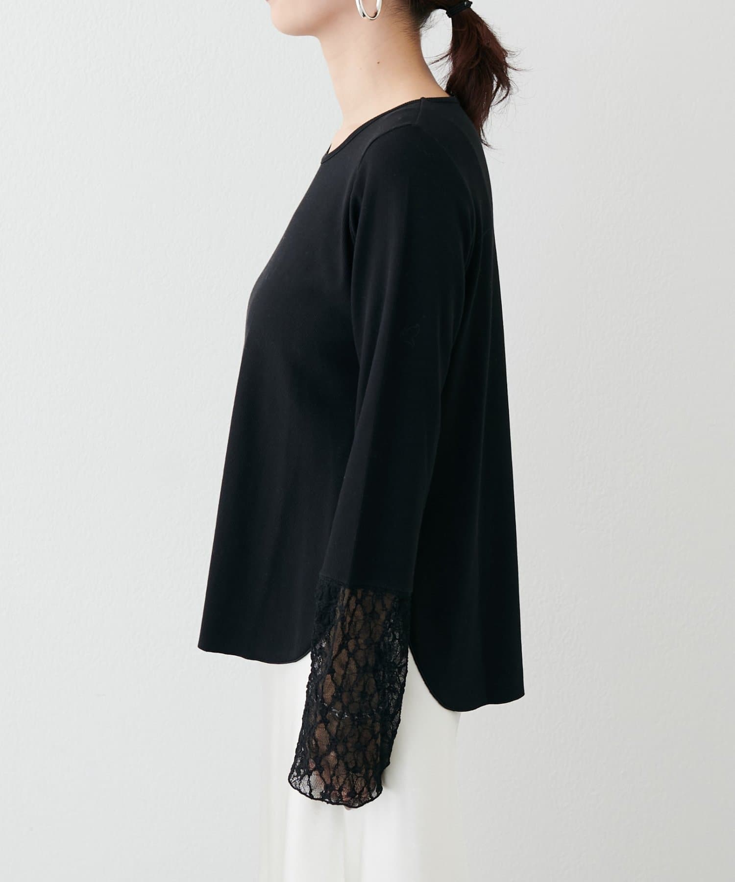 シンプルさの中に、袖の切り替えレースで華やかさをプラスしたカットソー。
