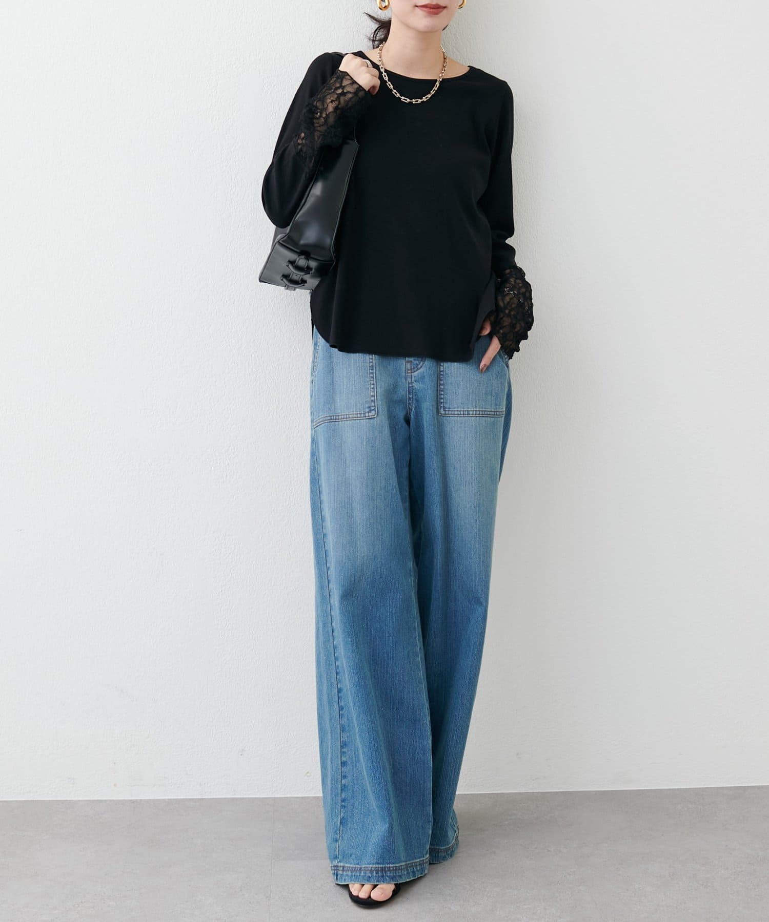 袖丈を長めに設定することで、レイヤードの際に袖口からさりげなくレースが覗くこだわりのデザイン。