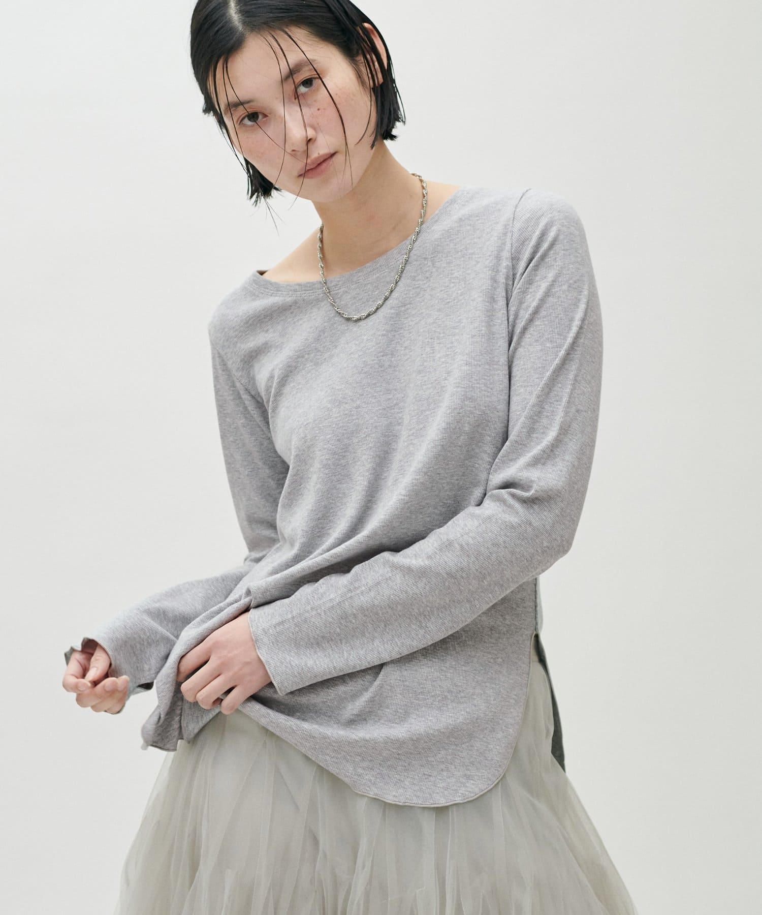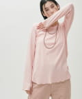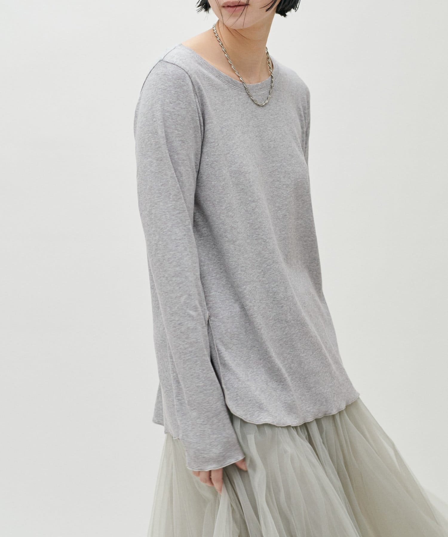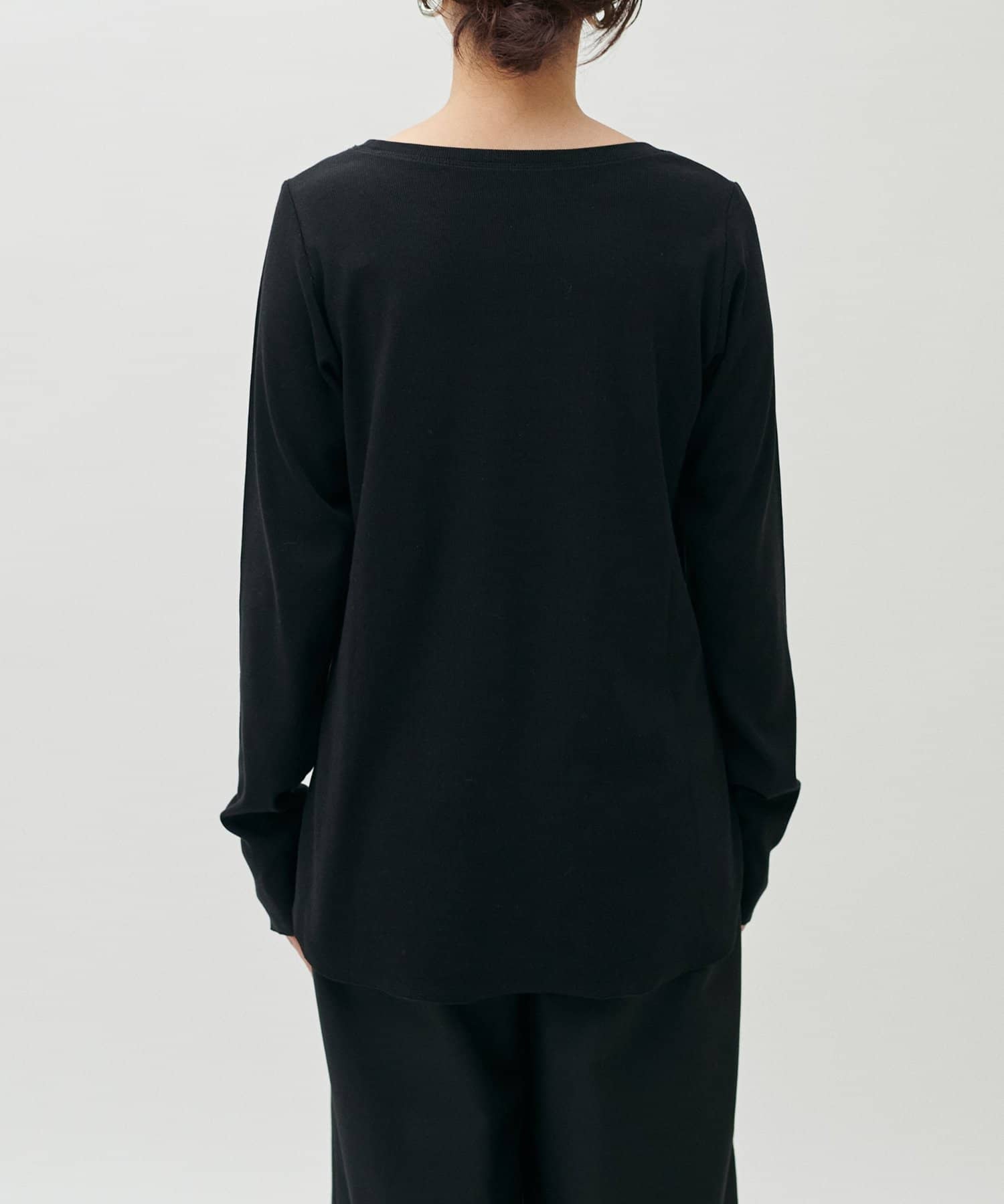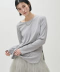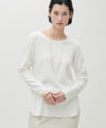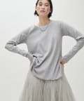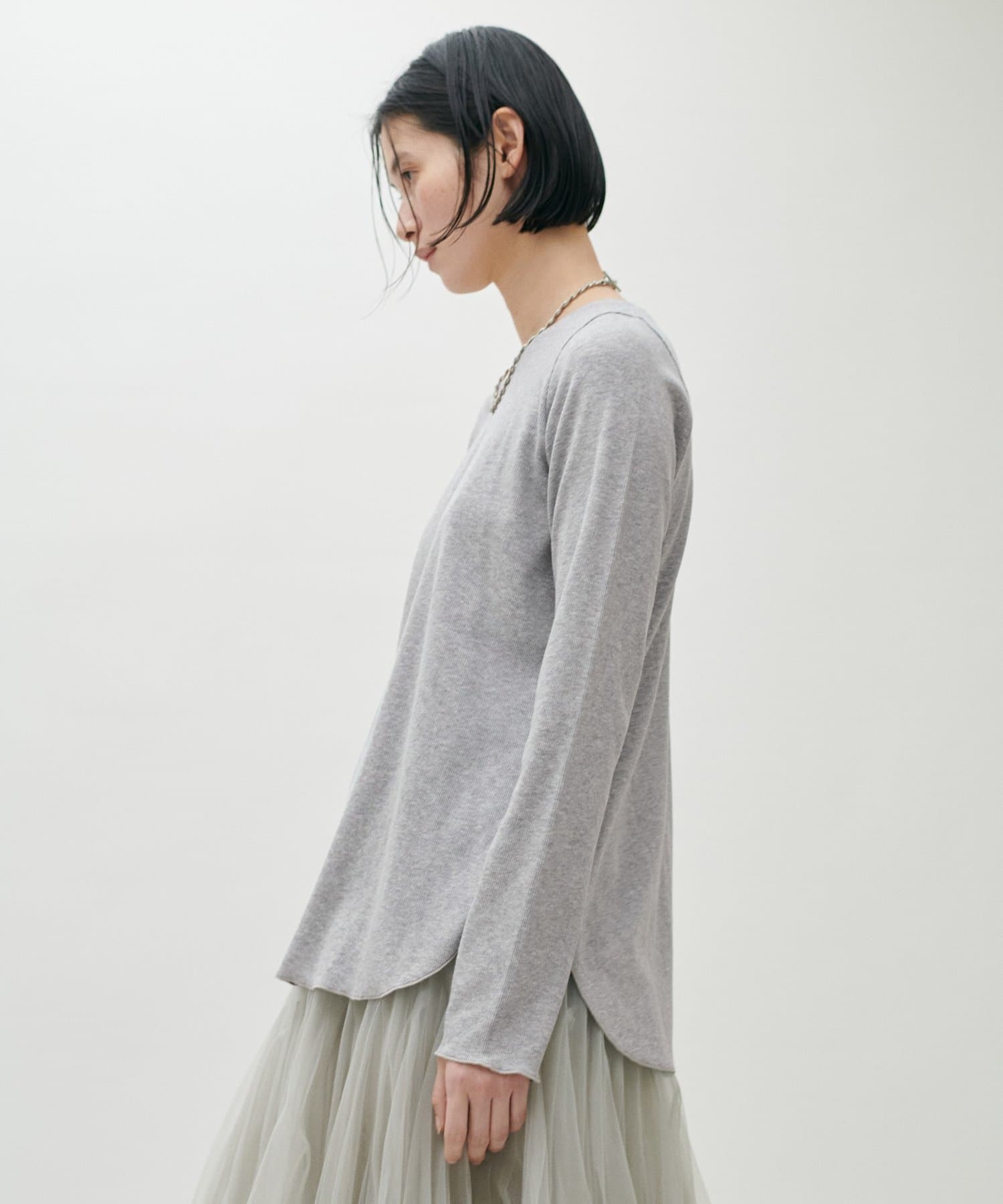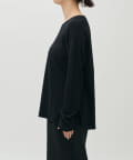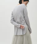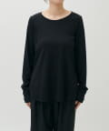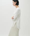 ややゆとりのあるシルエットと、身体のラインを拾いすぎない落ち感が特徴で、自然体で着られる一枚です。