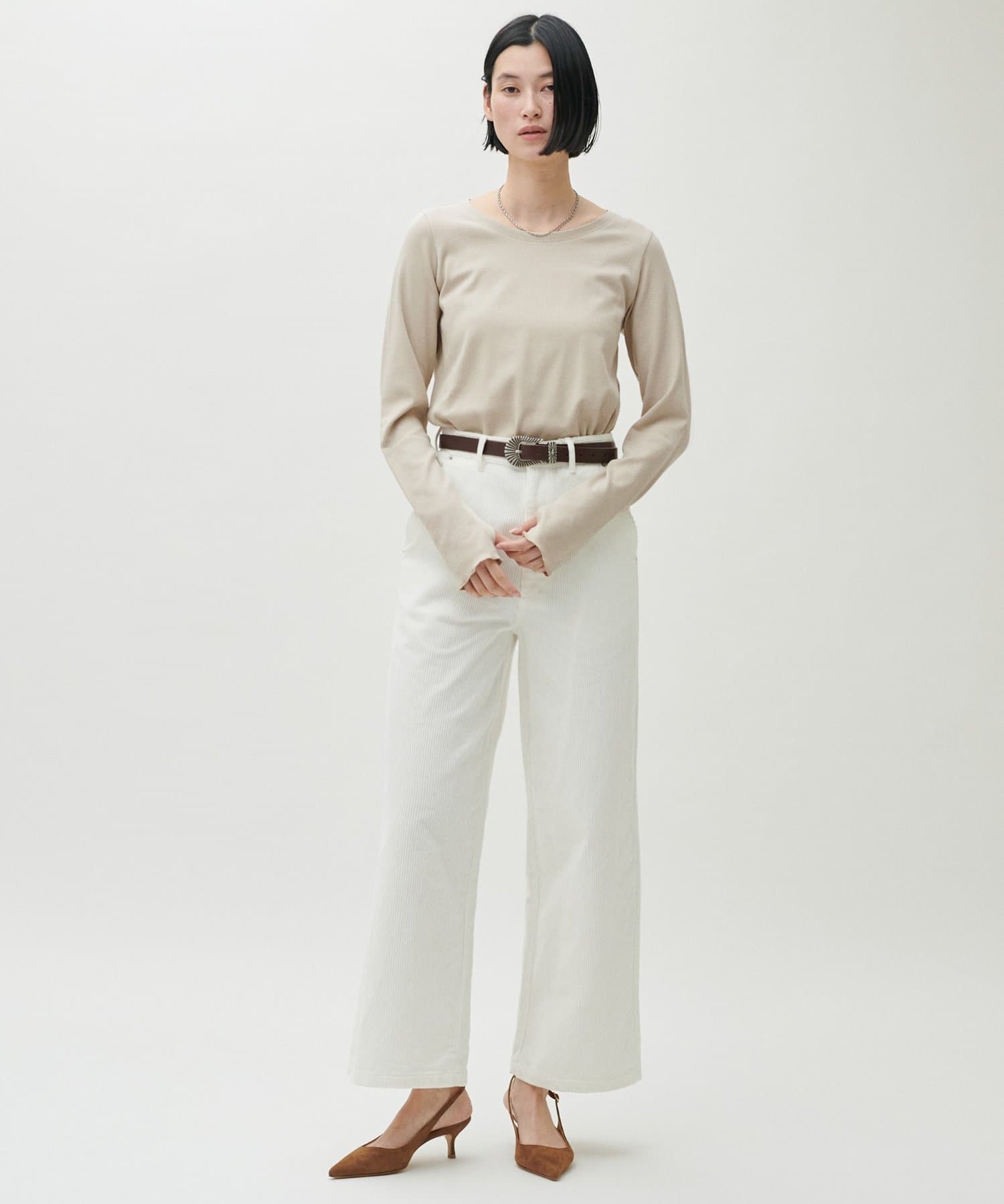 デニムやスラックスと合わせたミニマルな着こなしもおすすめで、デイリーからきれいめまで幅広く対応します。