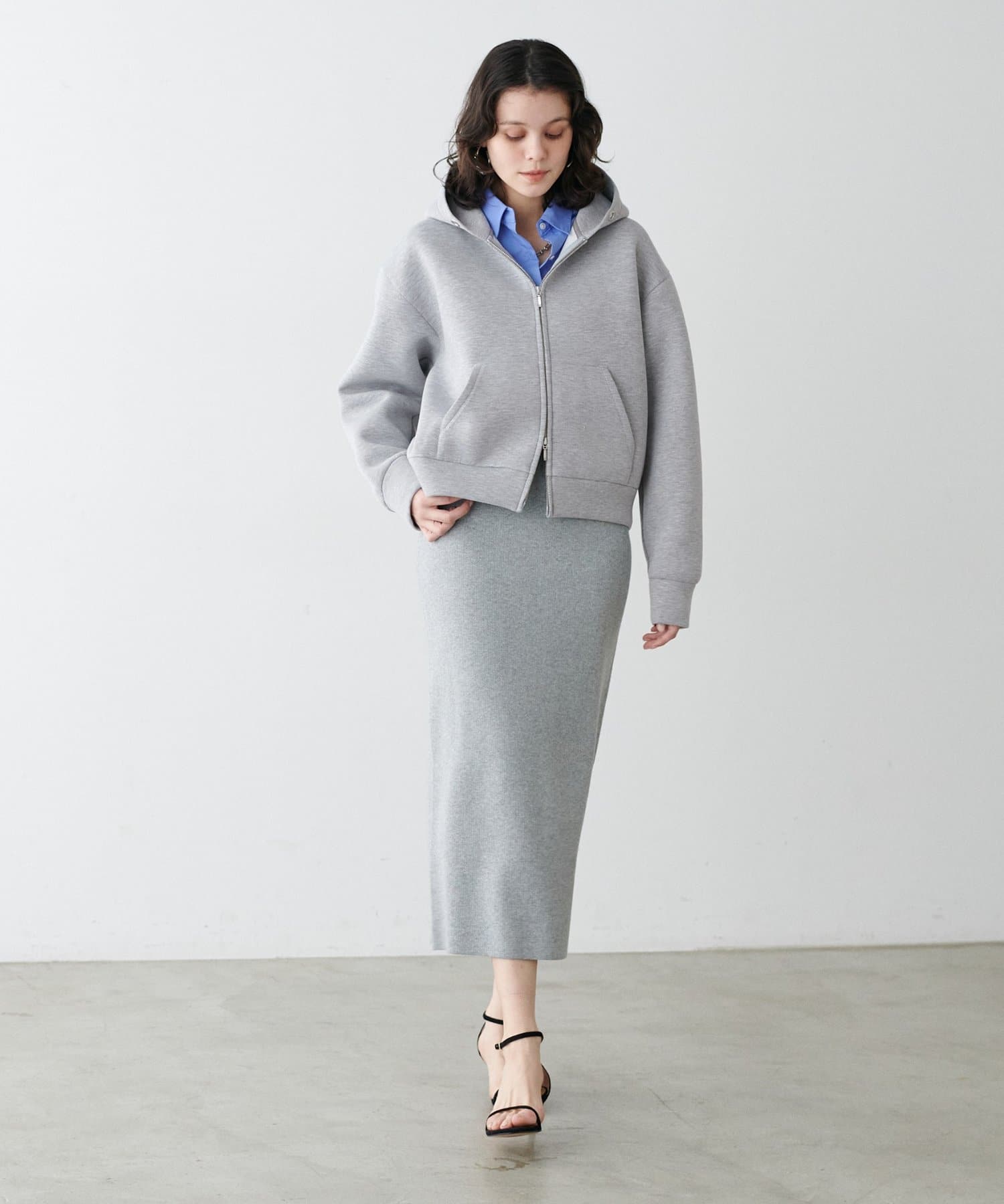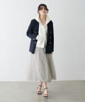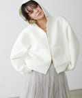 ジャスト丈なので、ハイウエストボトムやワンピースの上に羽織ってもすっきりとまとまります。