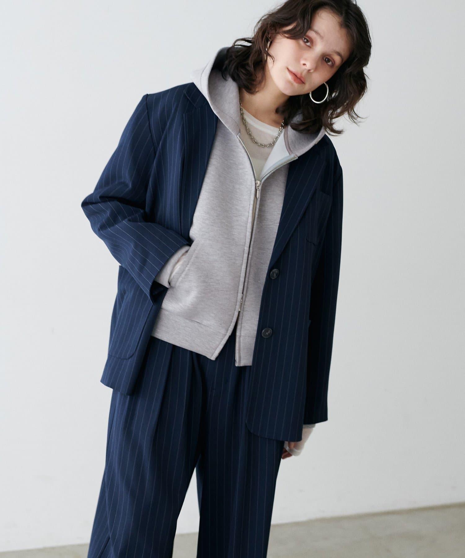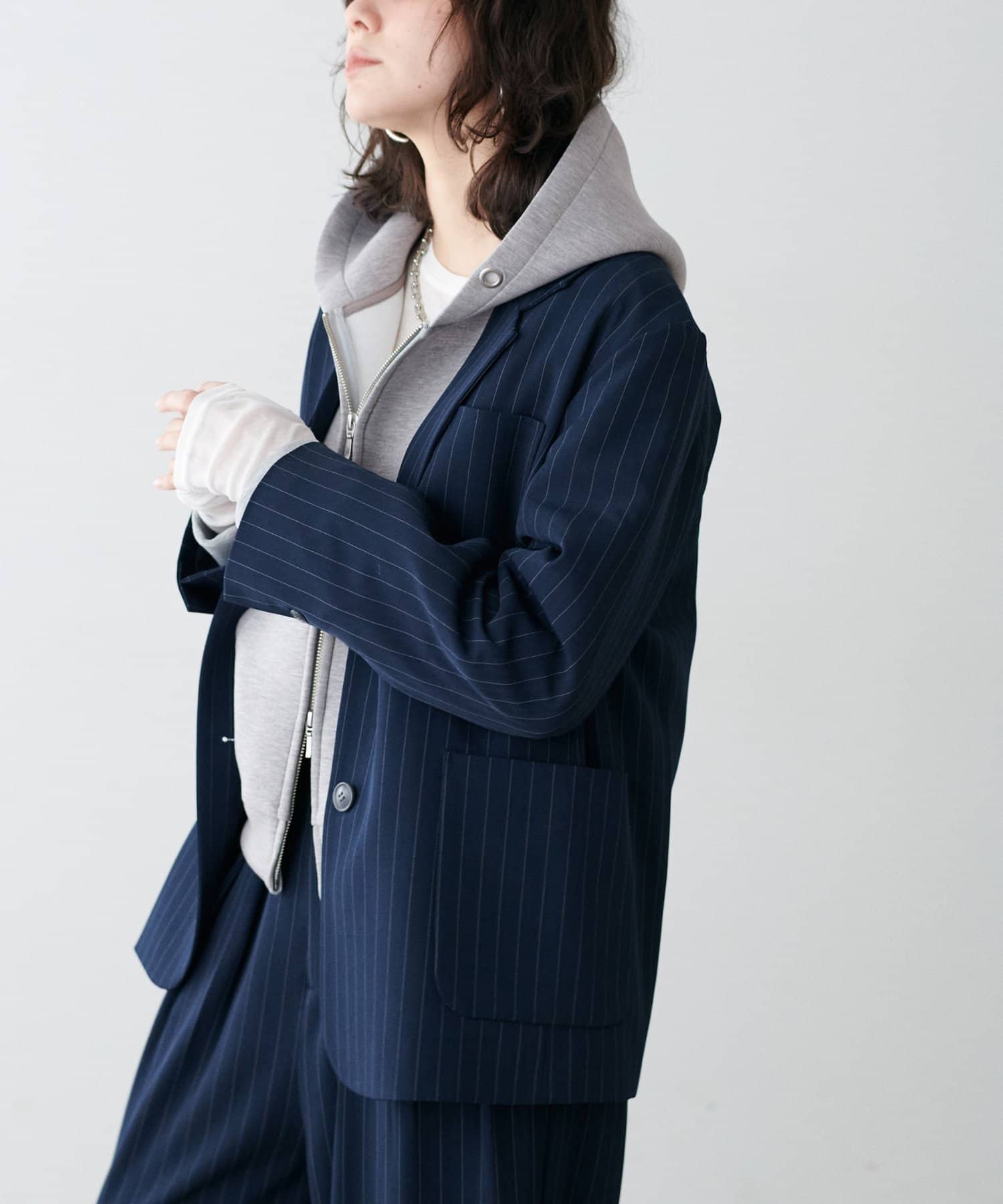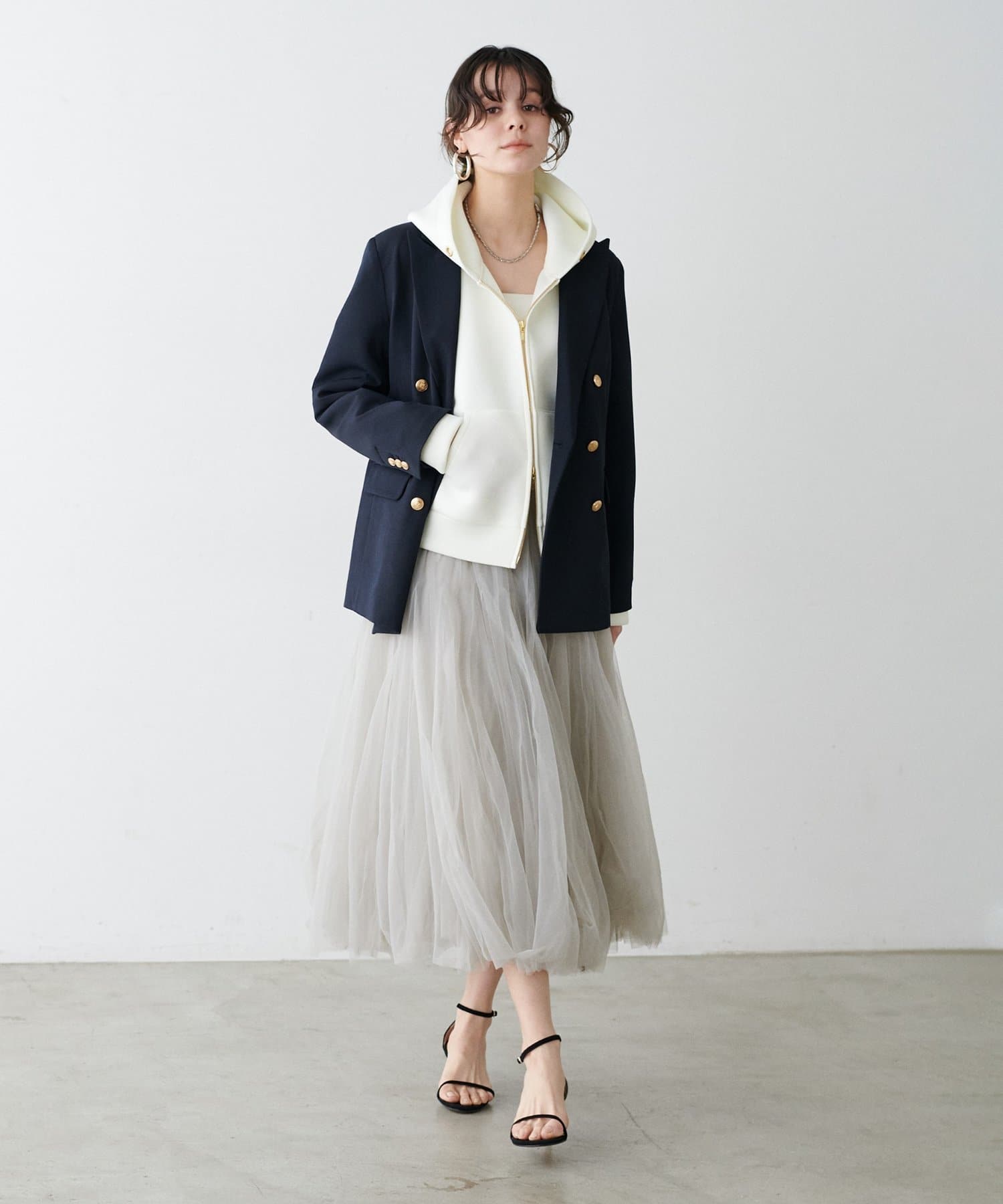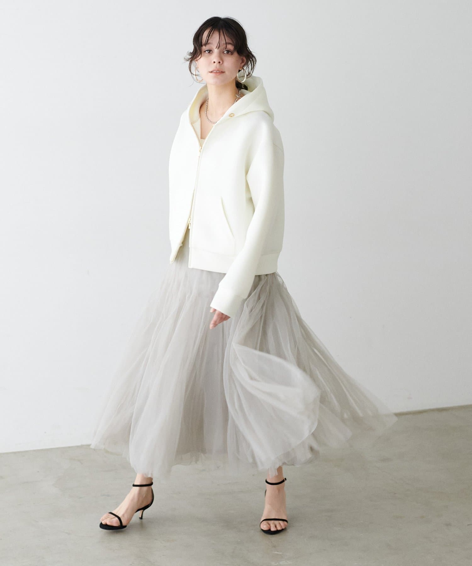 フード付きのデザインながら、クリーンな表情で大人のスタイリングにも取り入れやすいアイテムです。