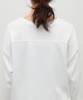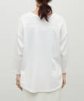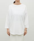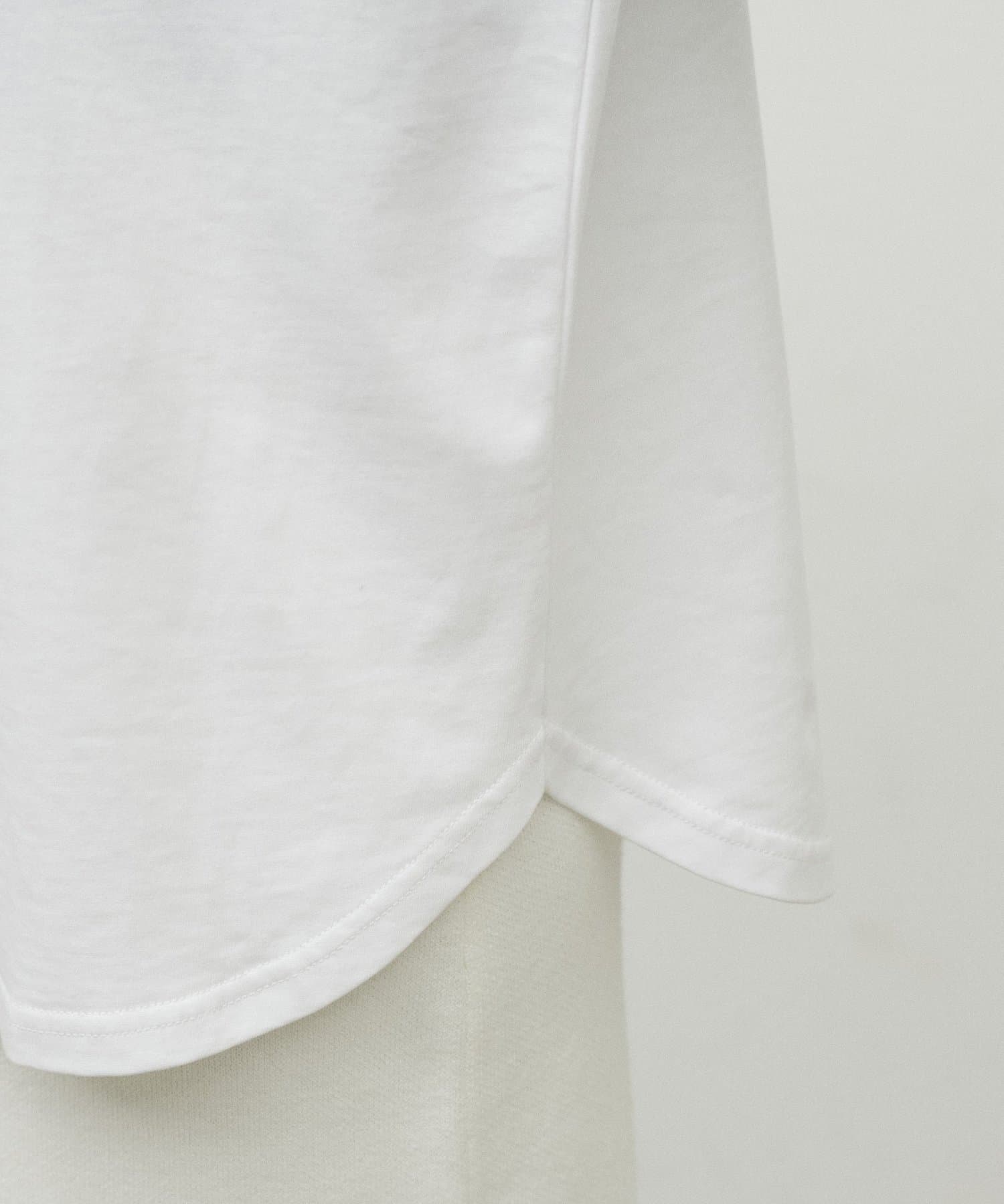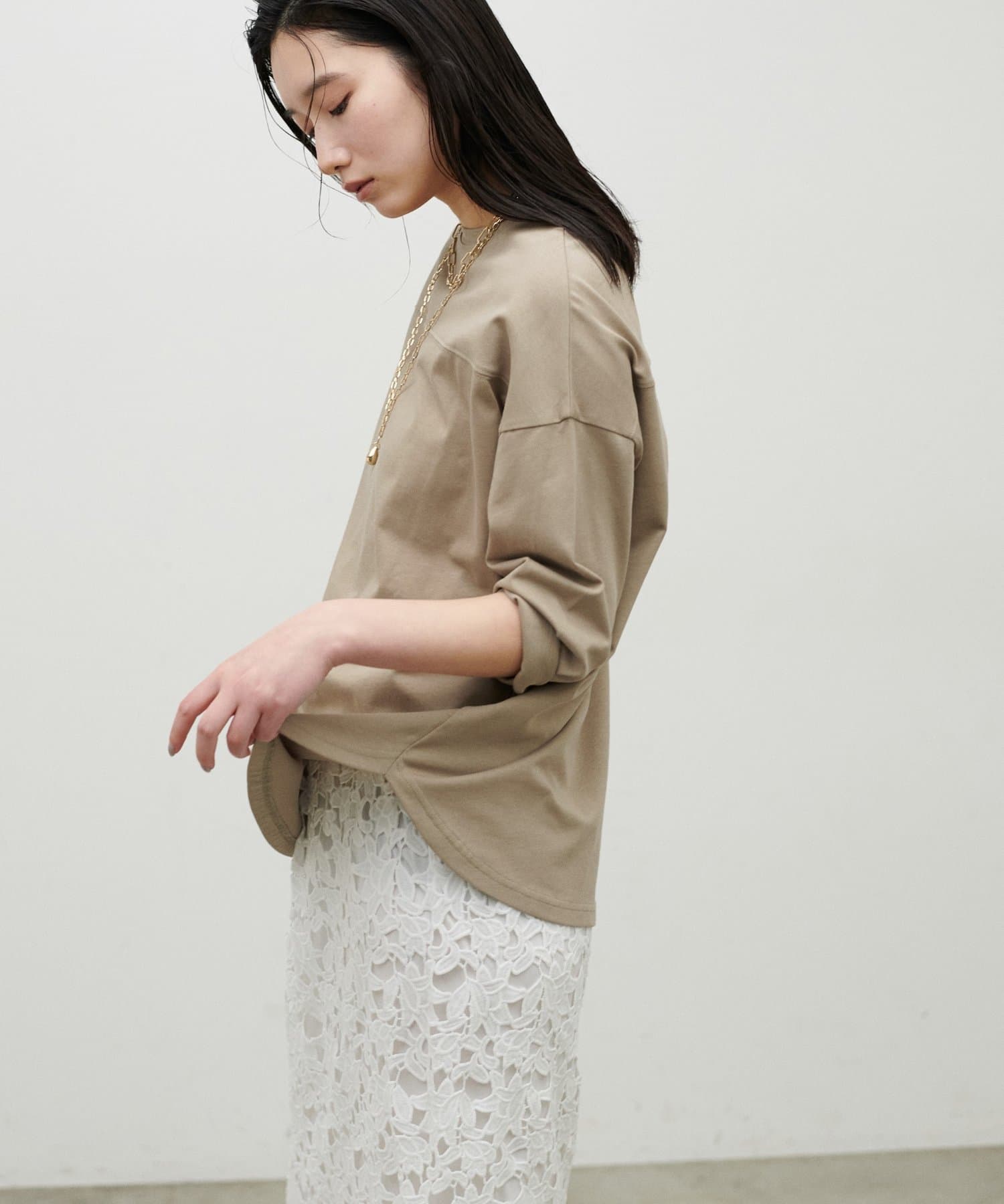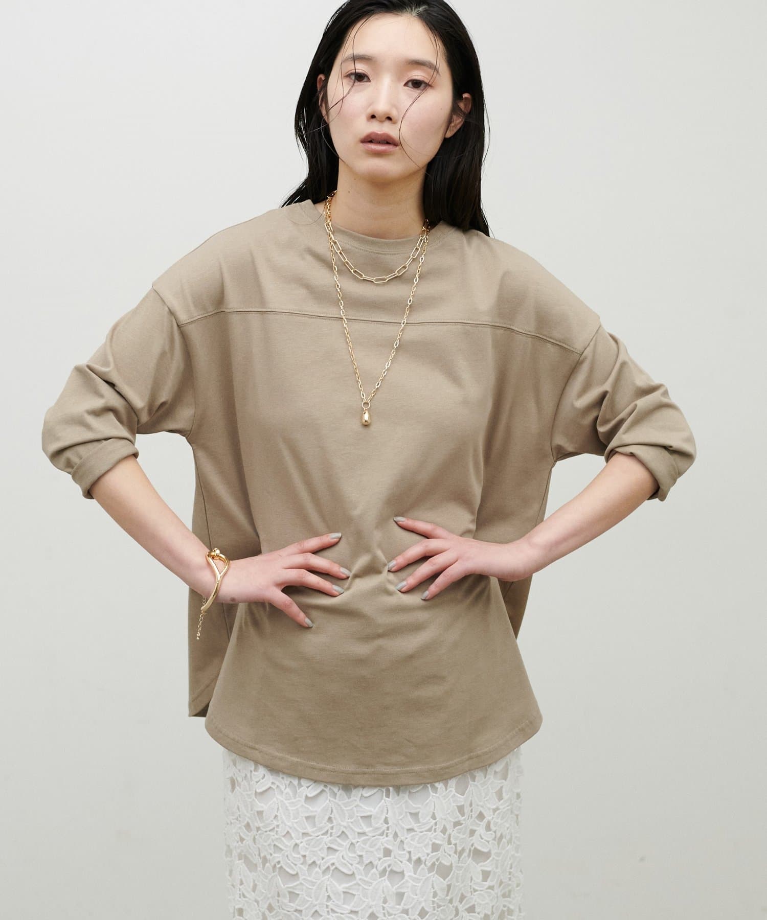 ゆったりとした身幅でボディラインを拾わず、ボトムスを選ばない絶妙な丈感がポイント。