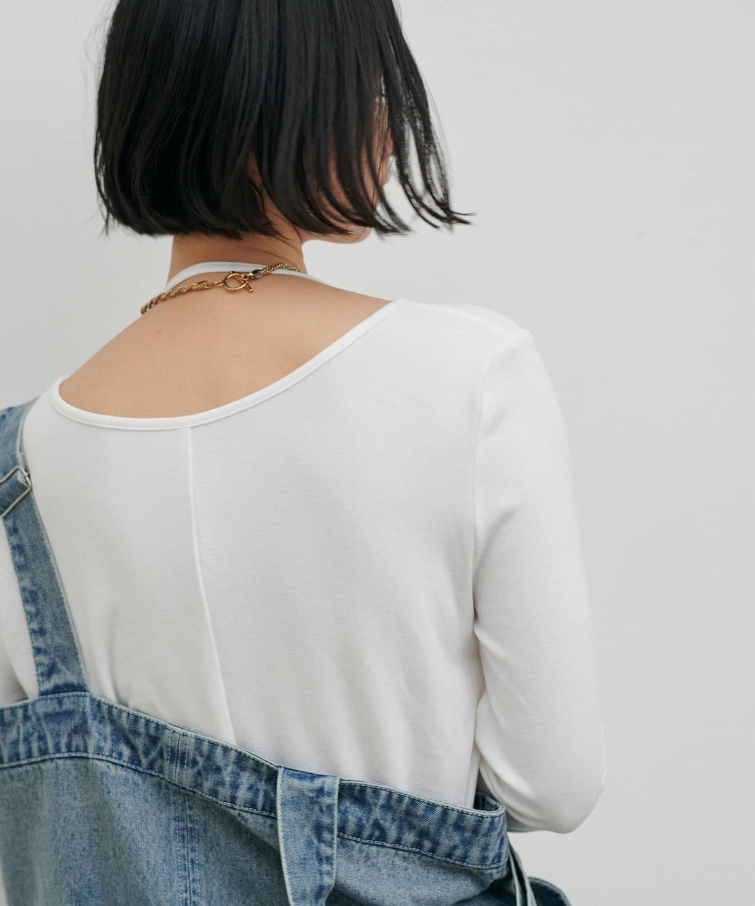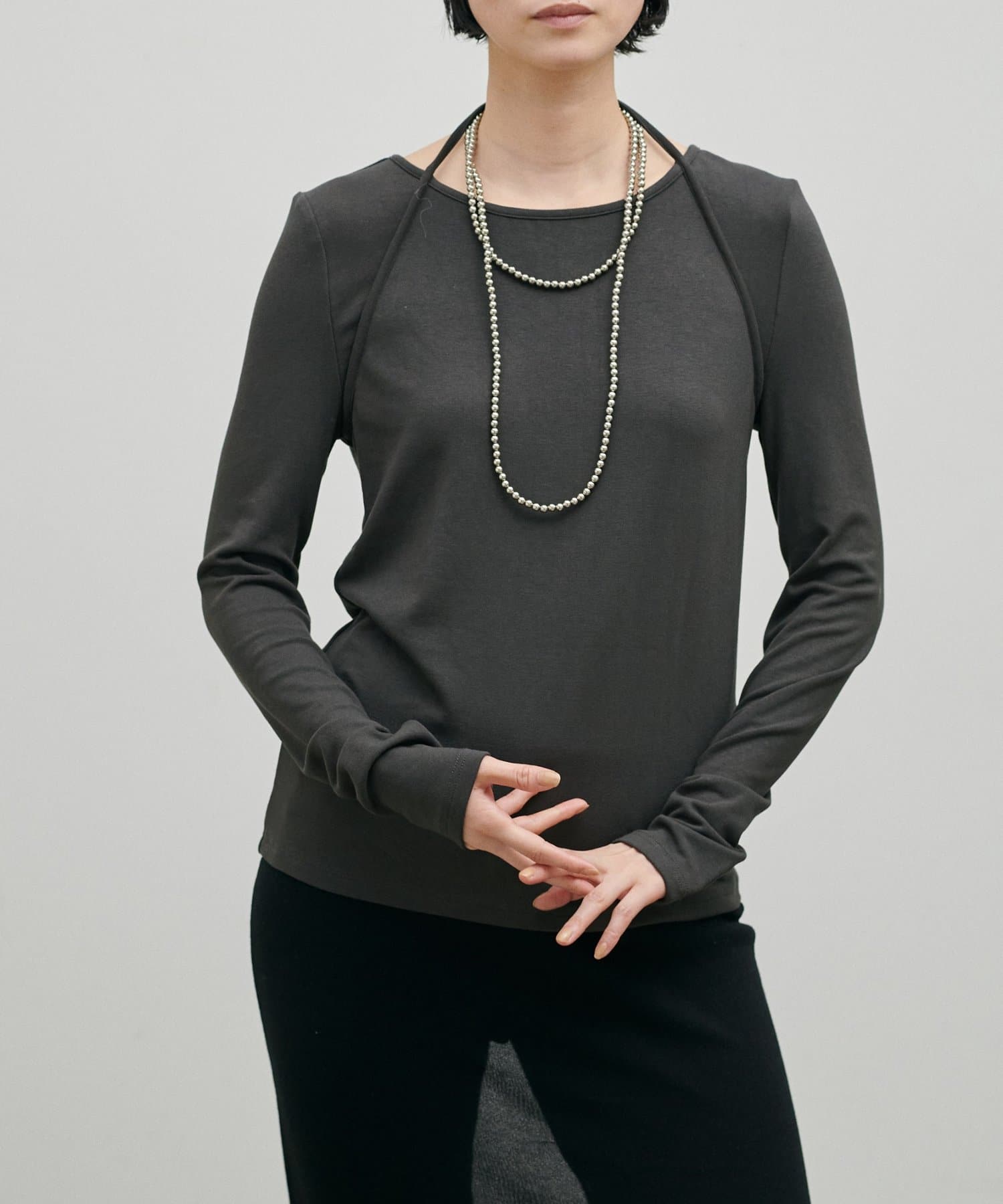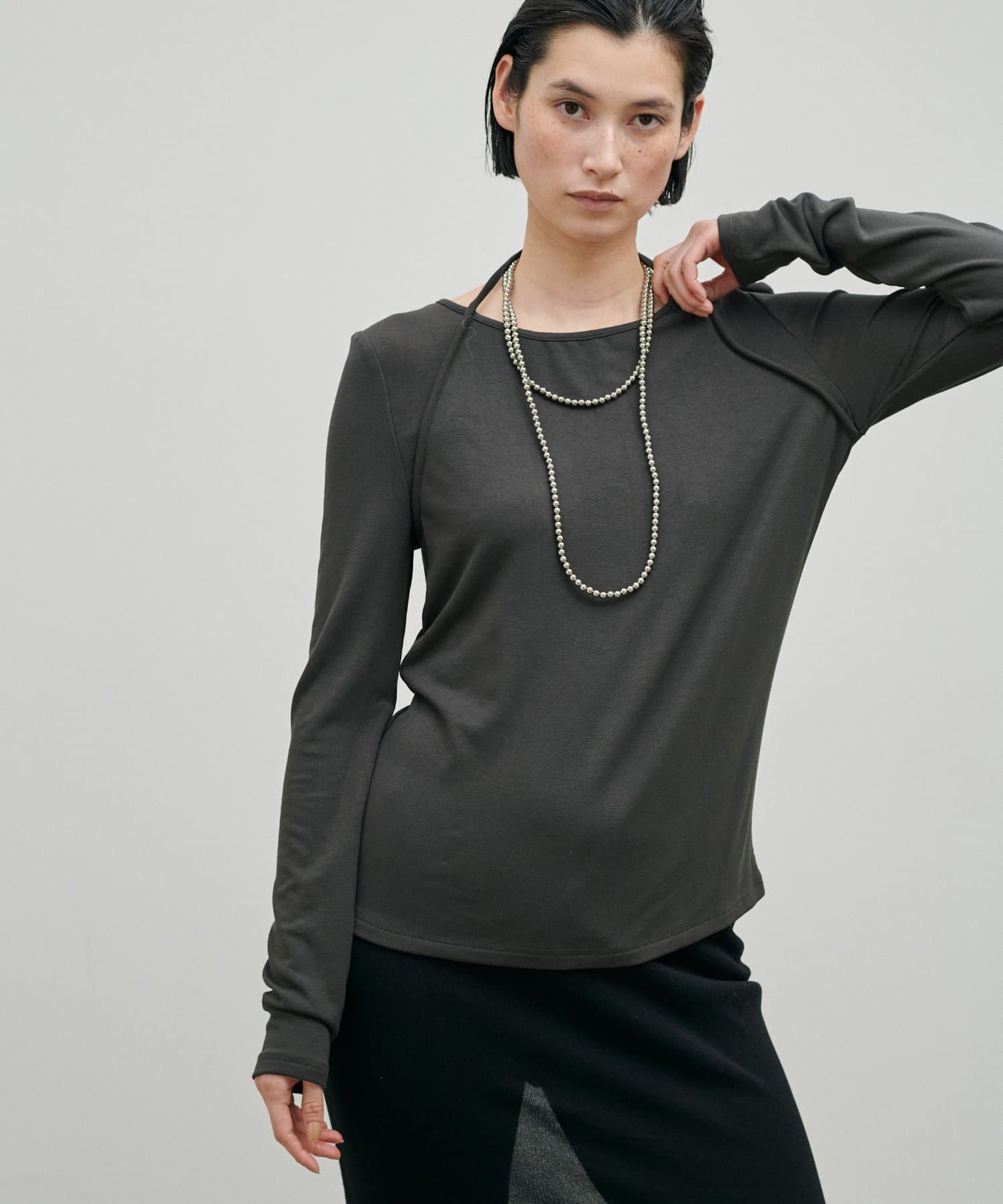 首元にさりげないデザイン性があり、シンプルながらも