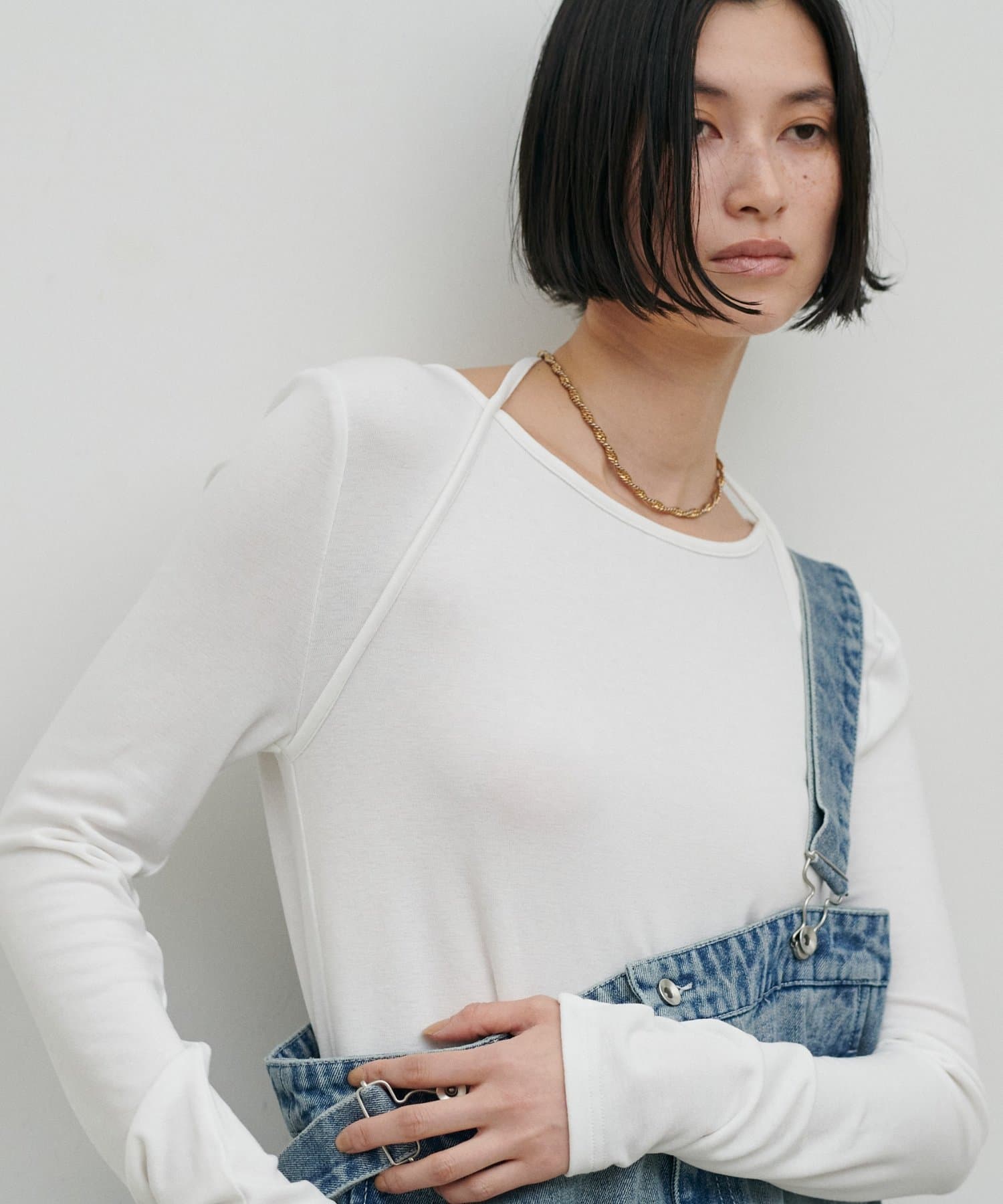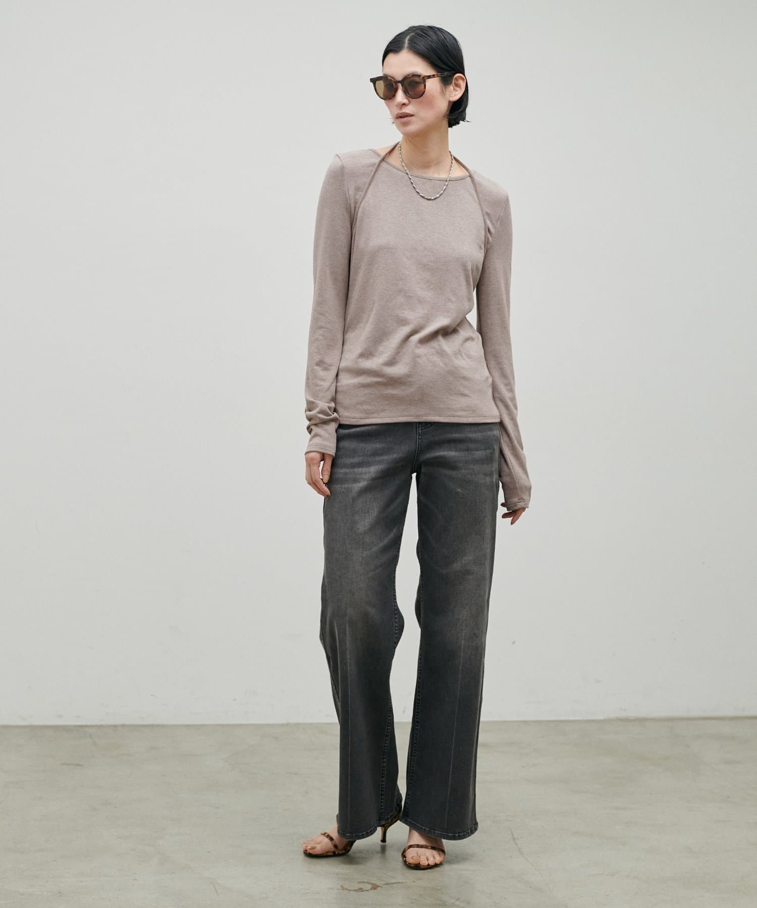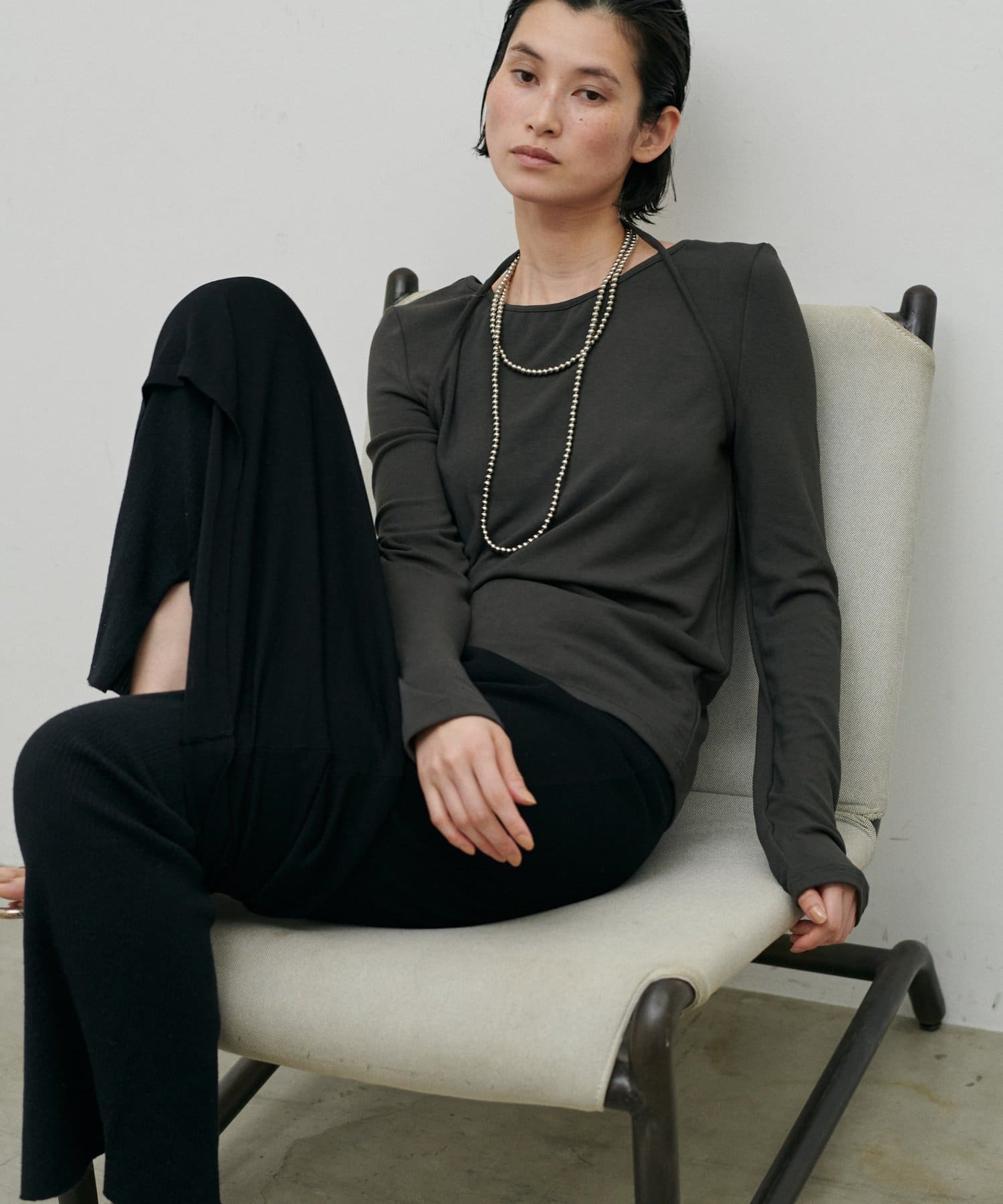 首元にさりげないデザイン性があり、シンプルながらも