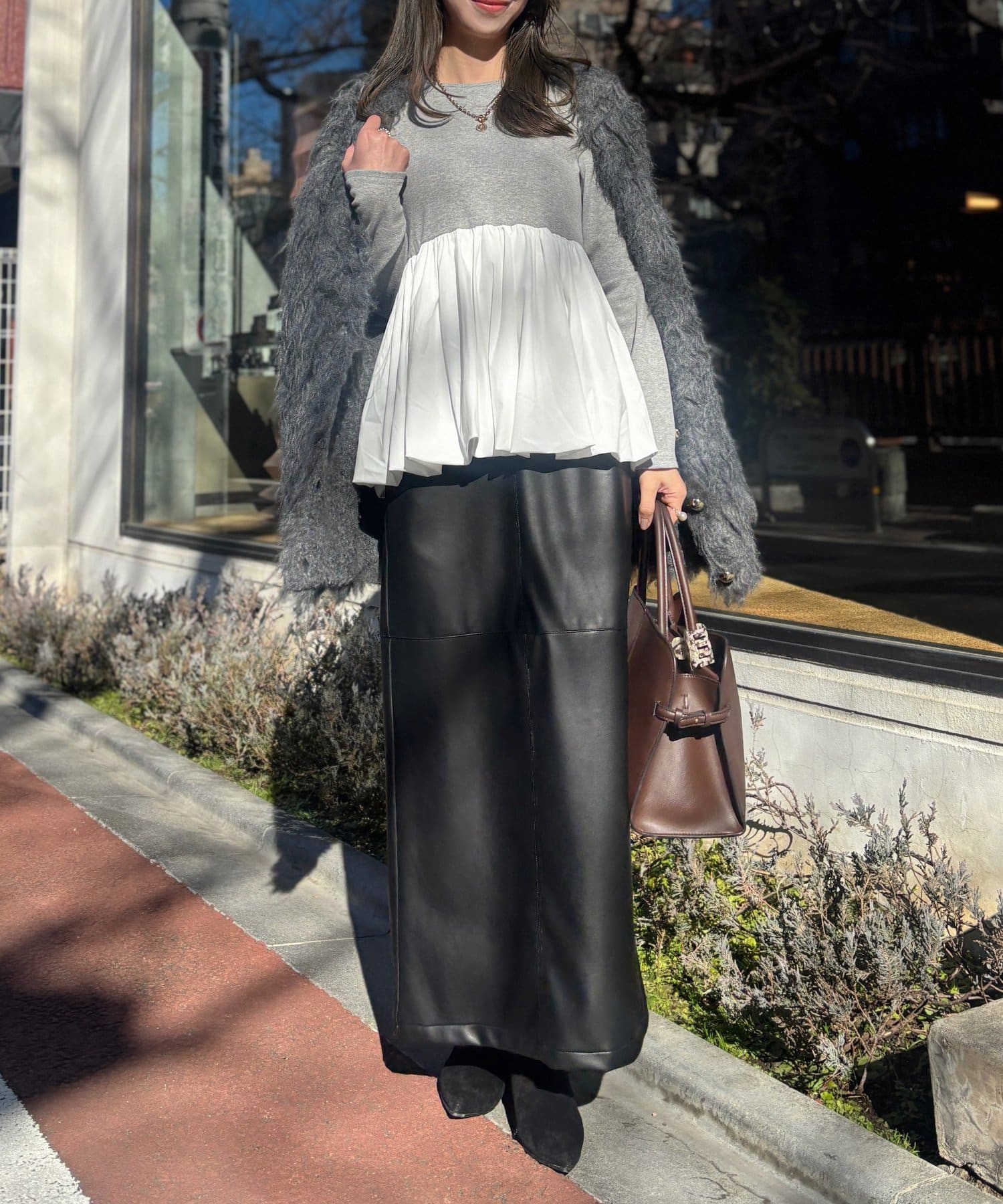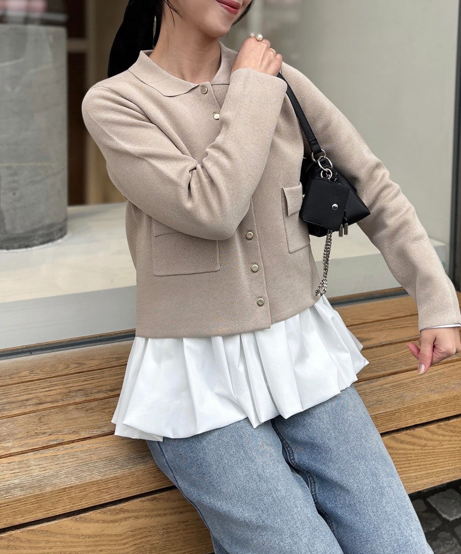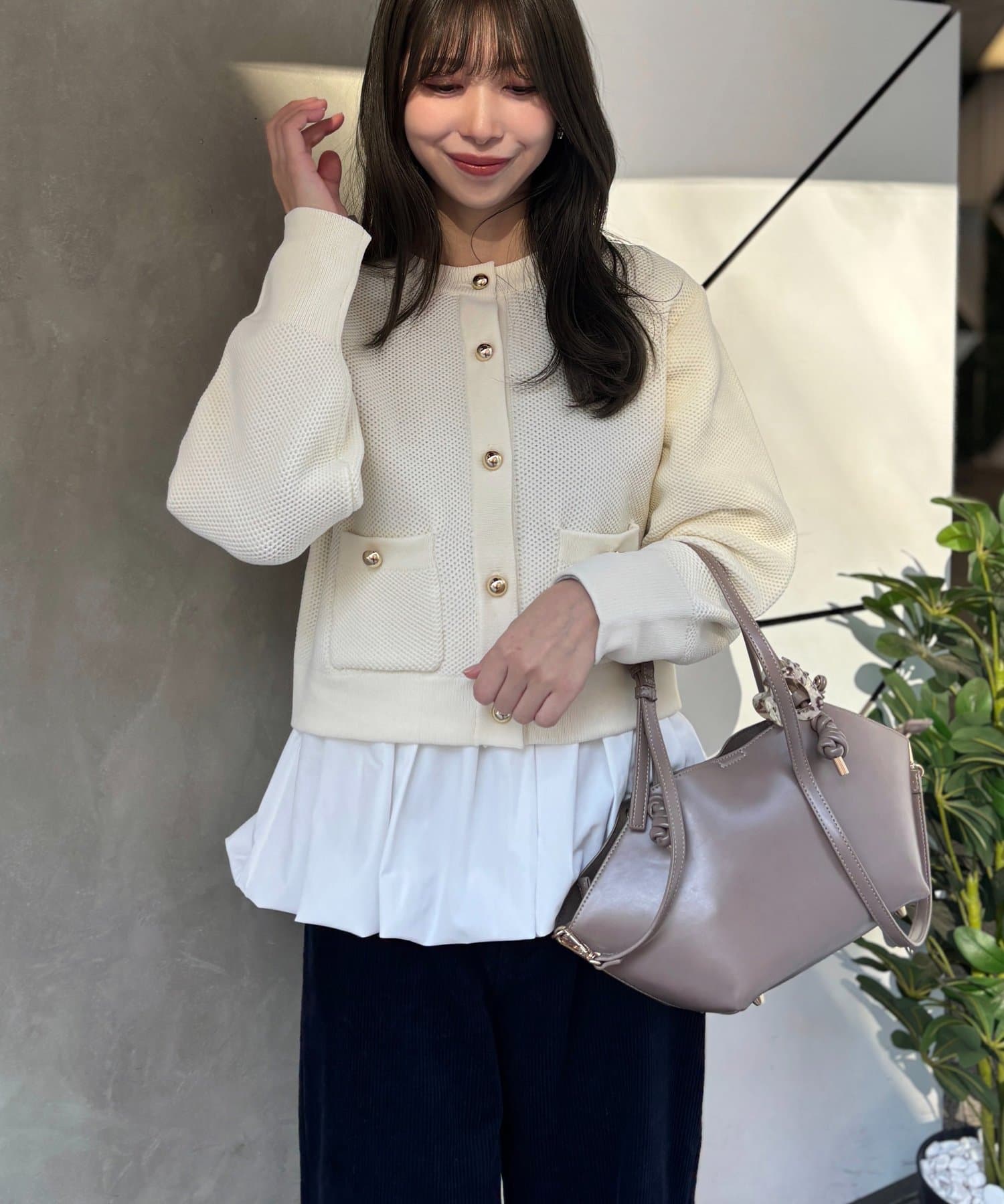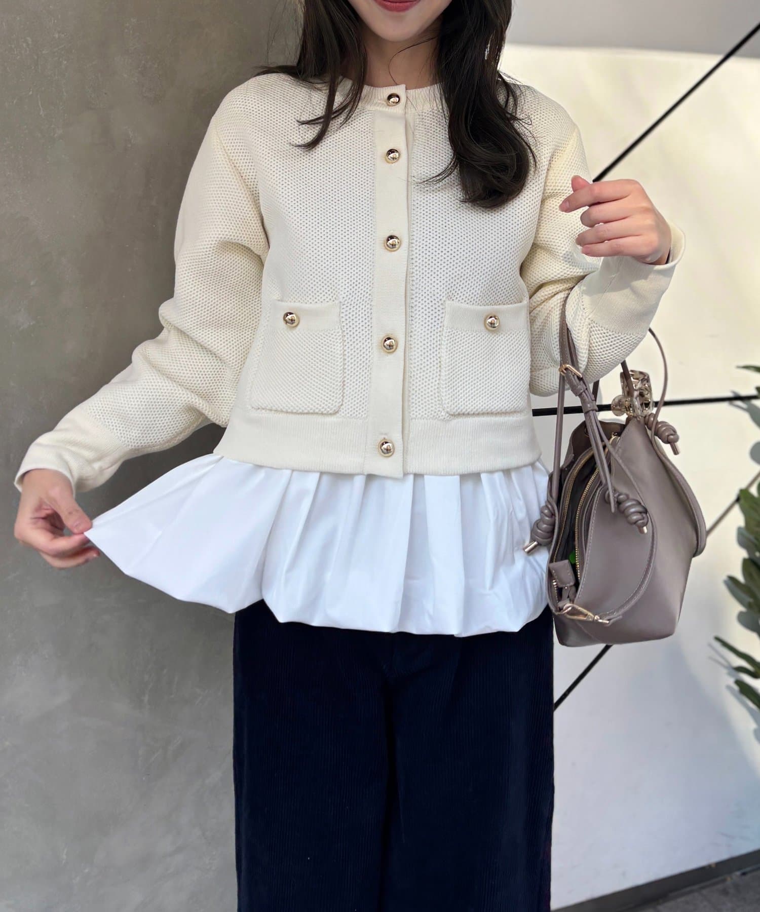 Iラインシルエットと合わせていただくとメリハリのついたスタイルに。