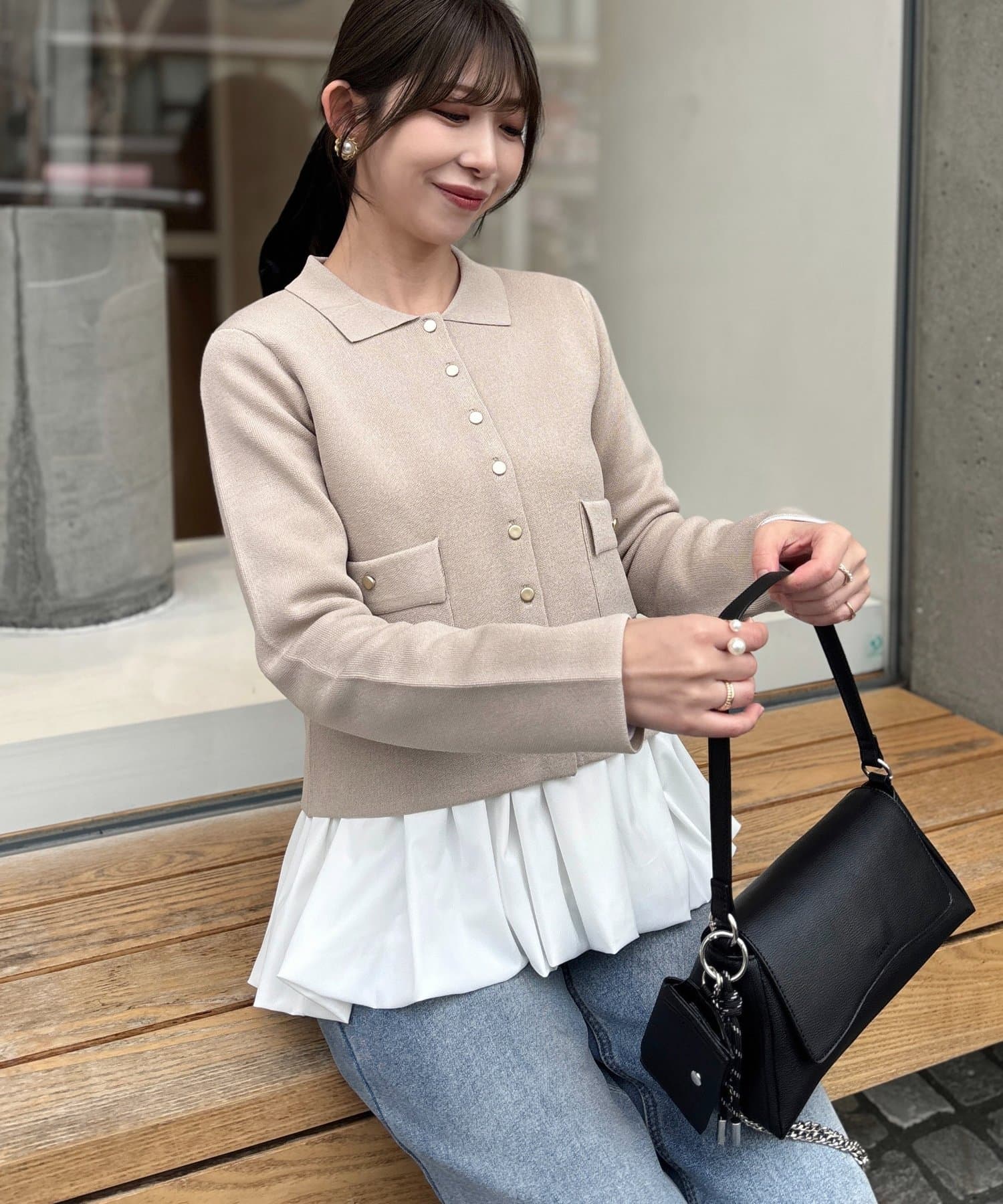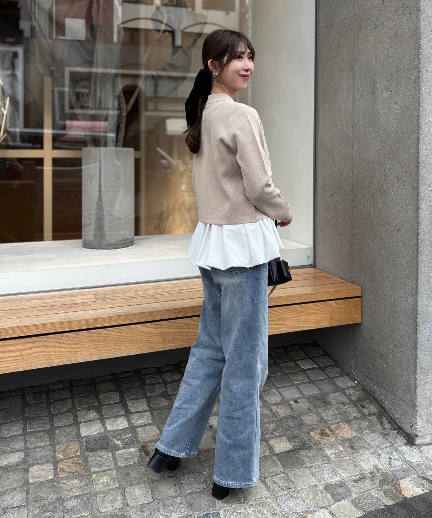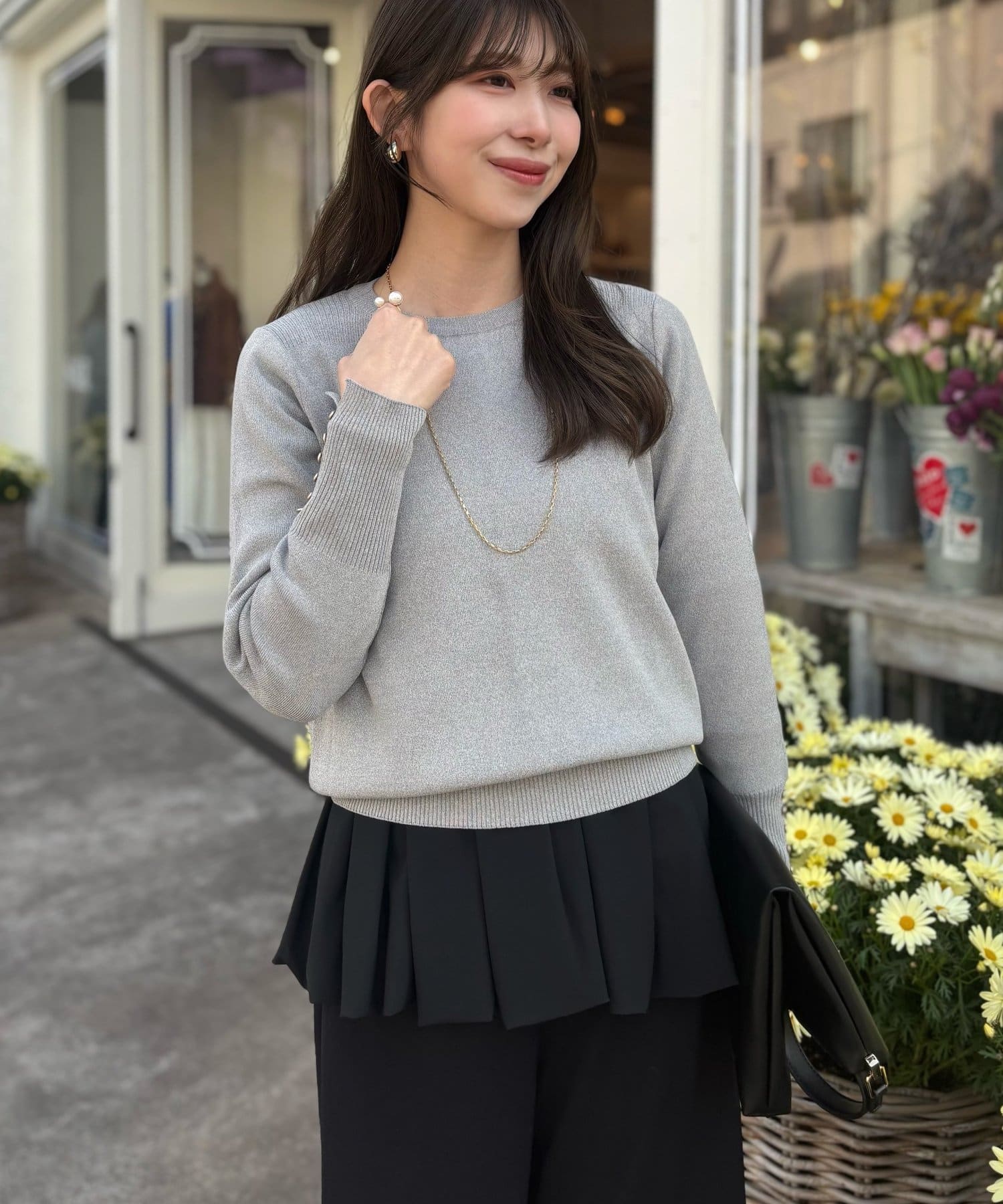 Iラインシルエットと合わせていただくとメリハリのついたスタイルに。