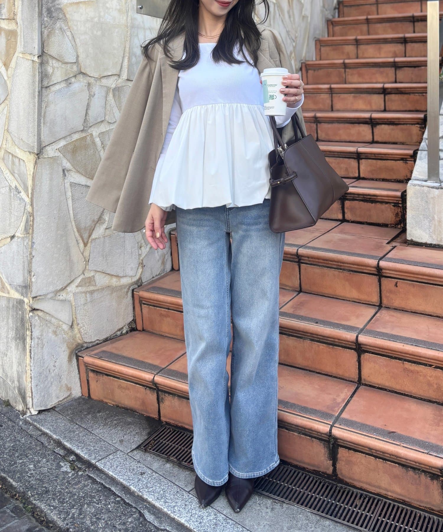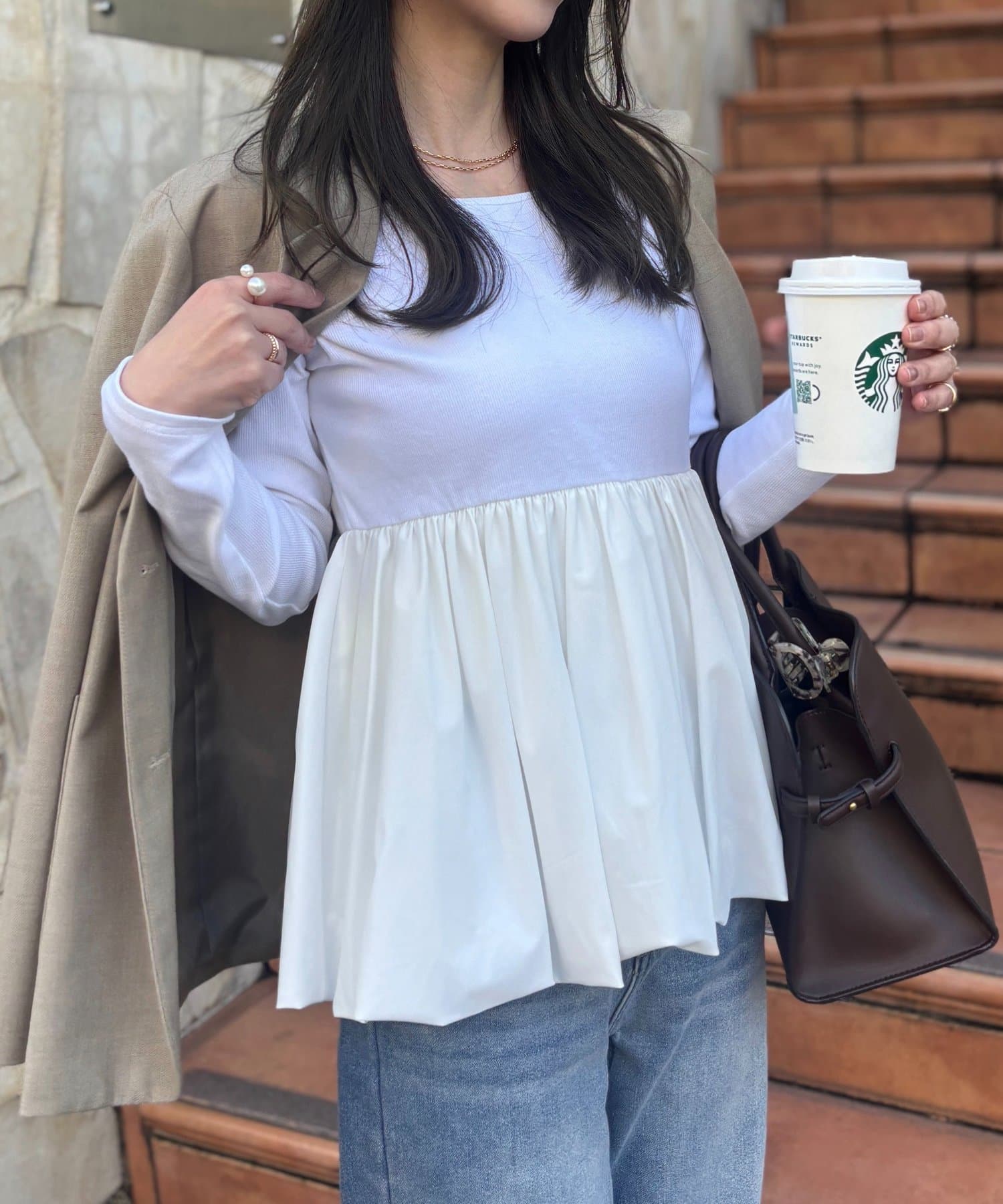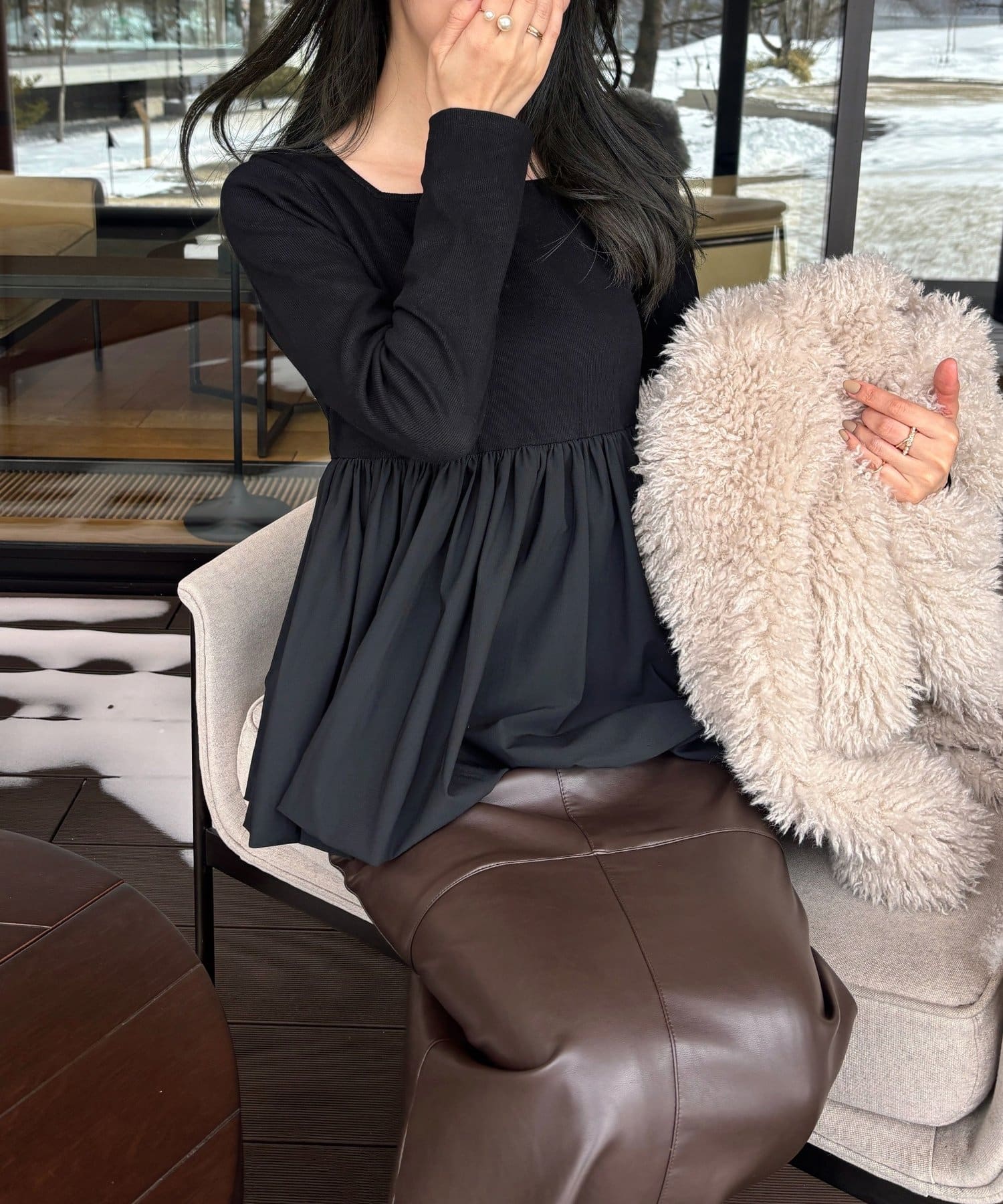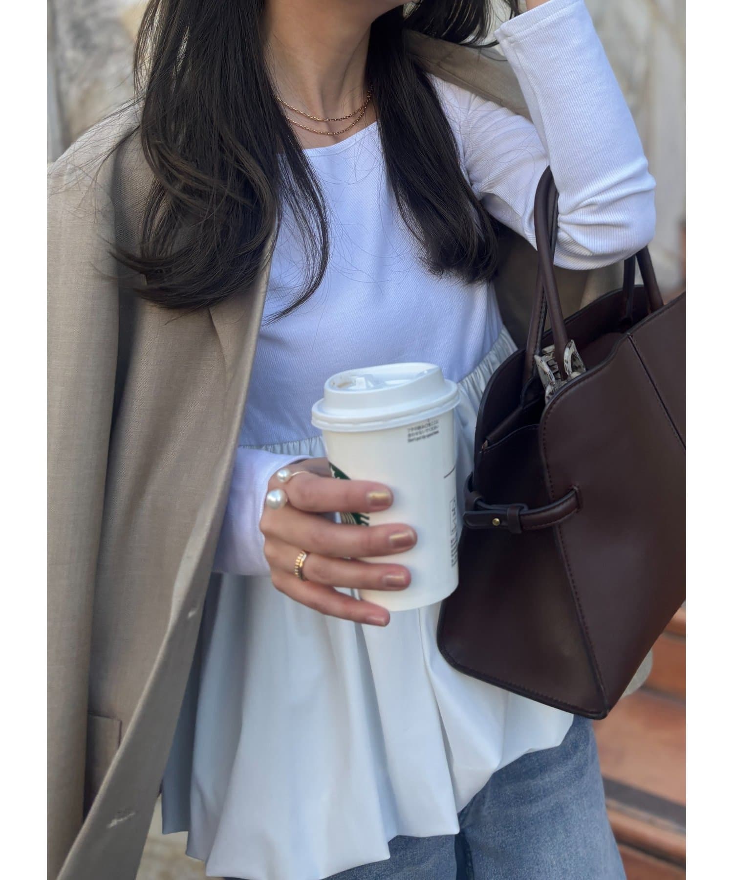 Iラインシルエットと合わせていただくとメリハリのついたスタイルに。
