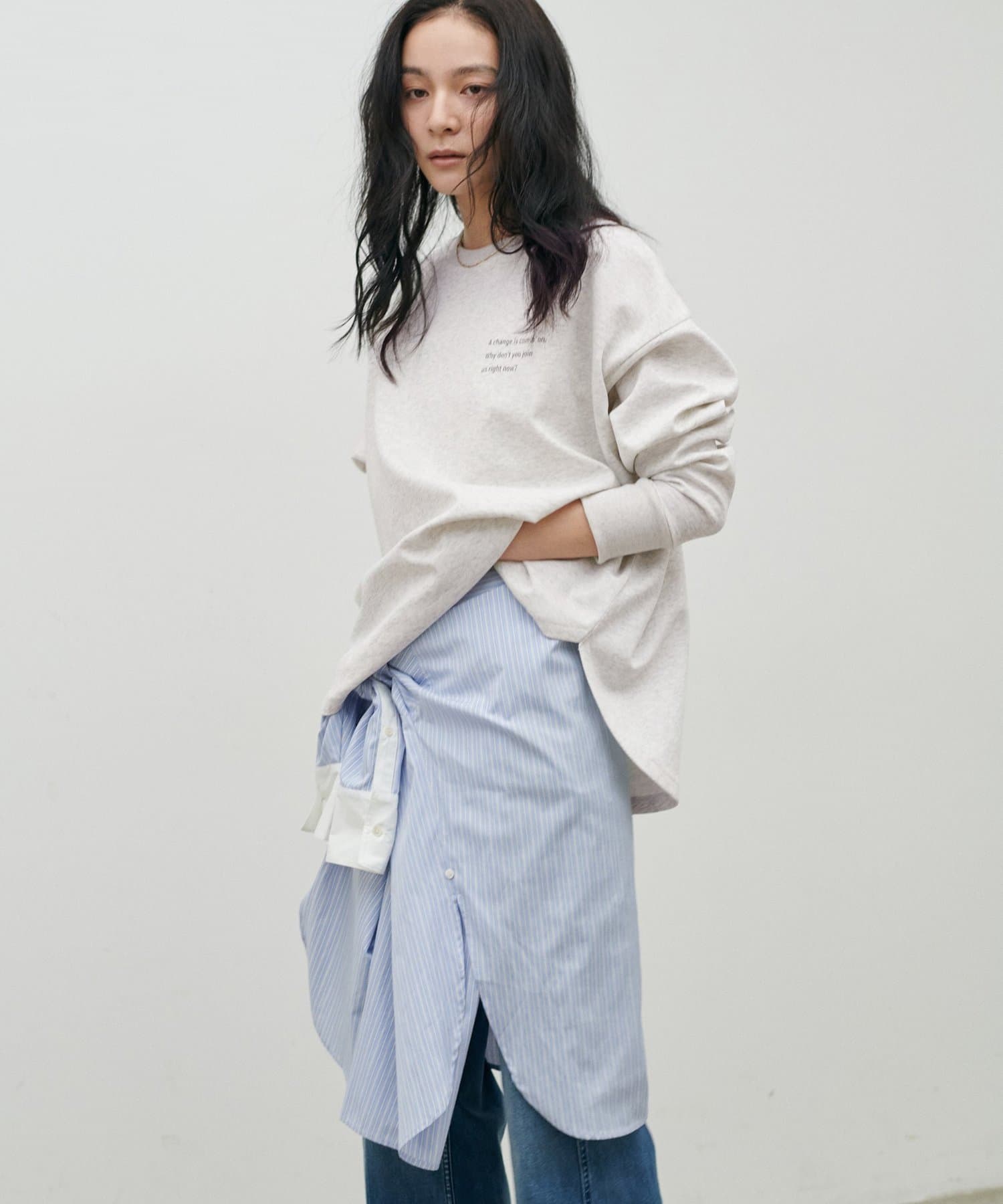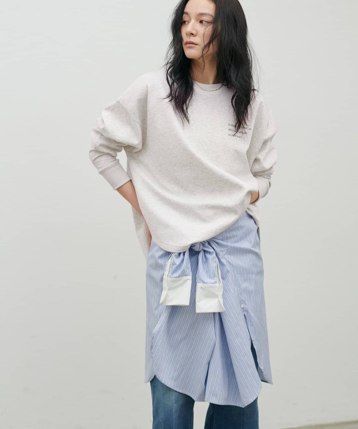 サイドスリット入りで、レイヤードもしやすいバランスにこだわりました。