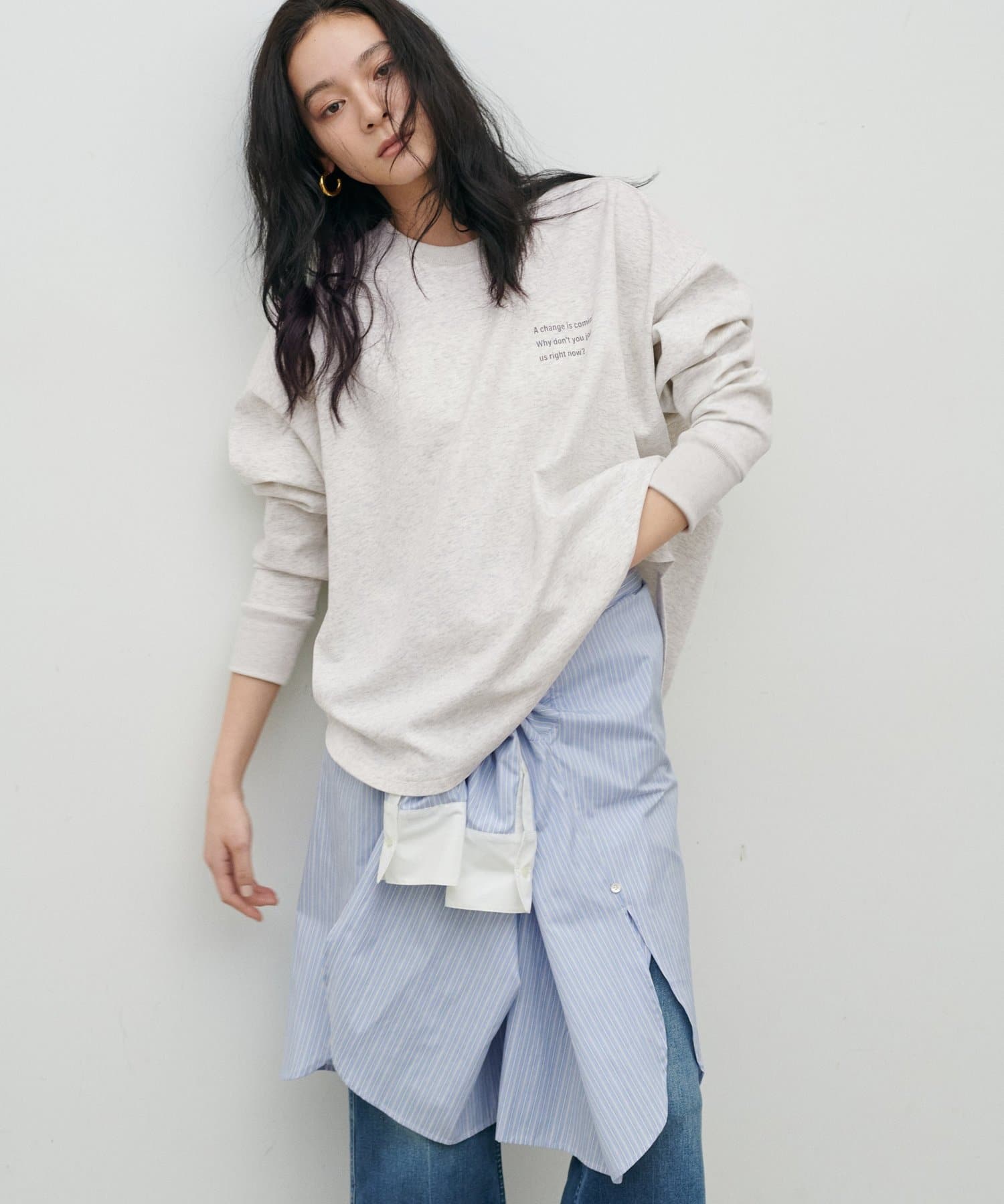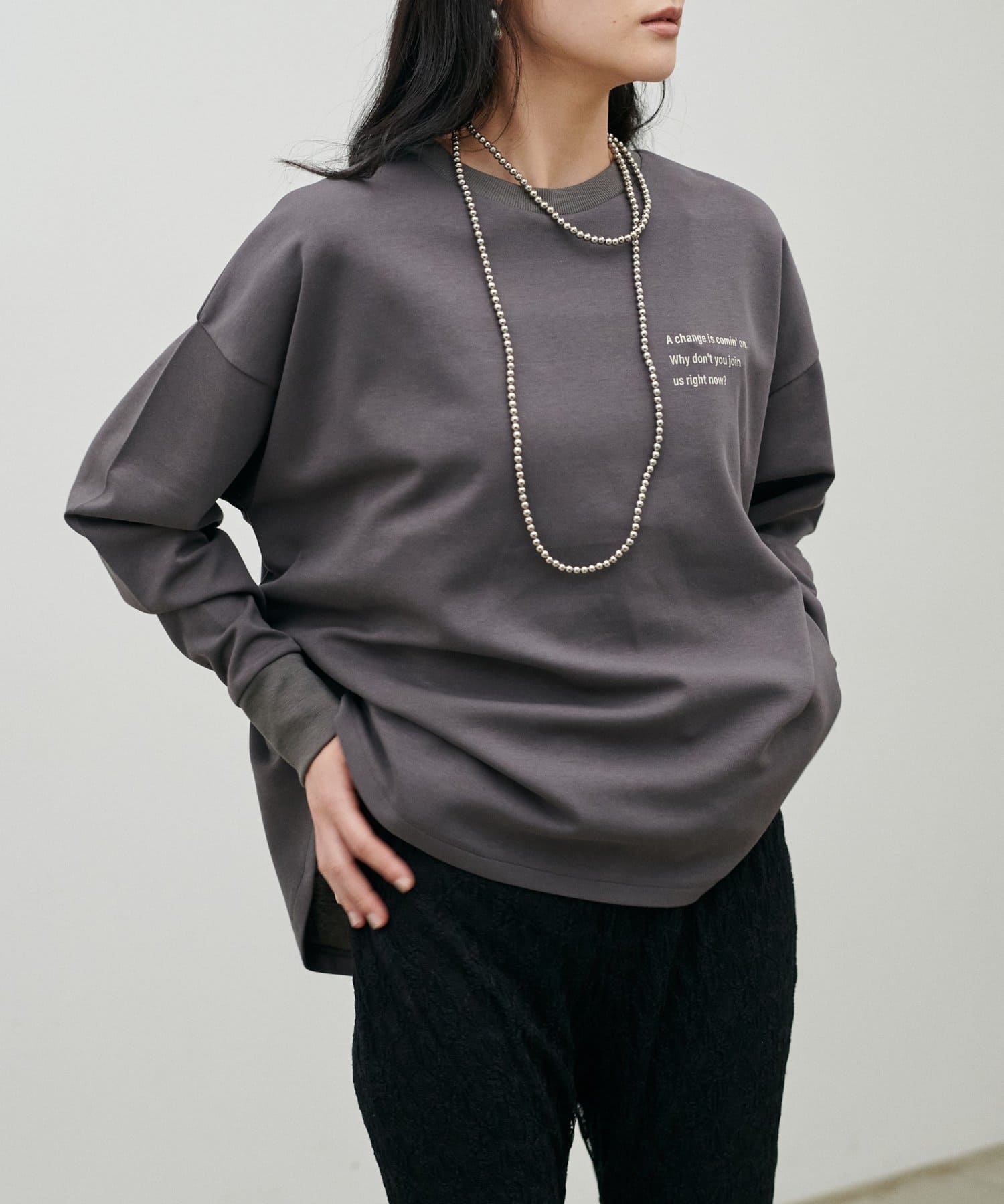 ゆったりとしたBIGシルエットで、体のラインを拾わず、さらっと着るだけでこなれた印象に仕上がります。