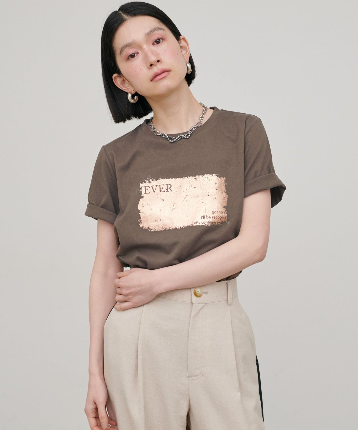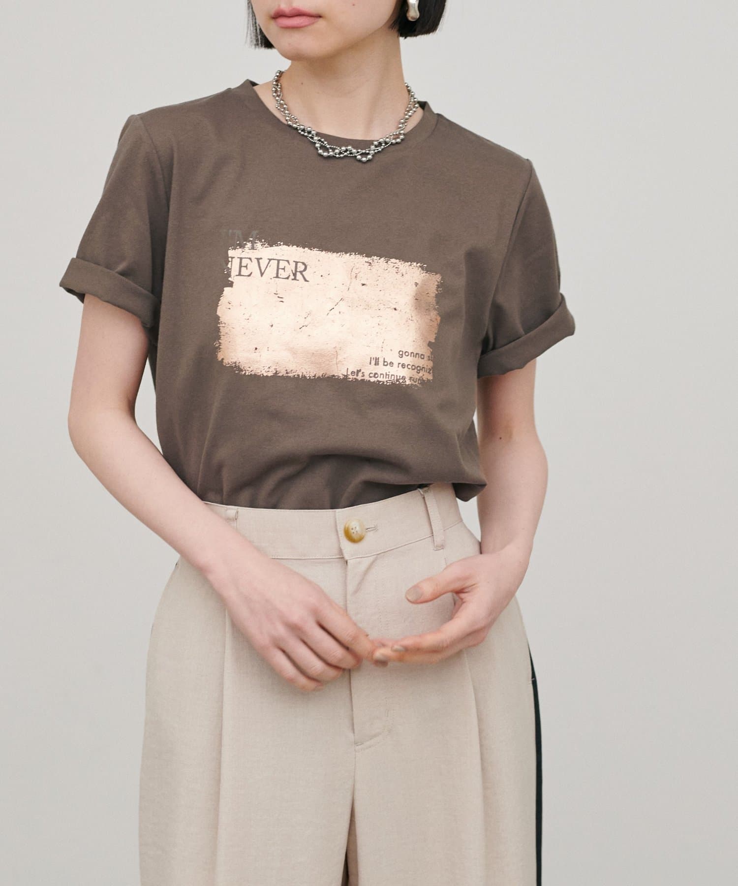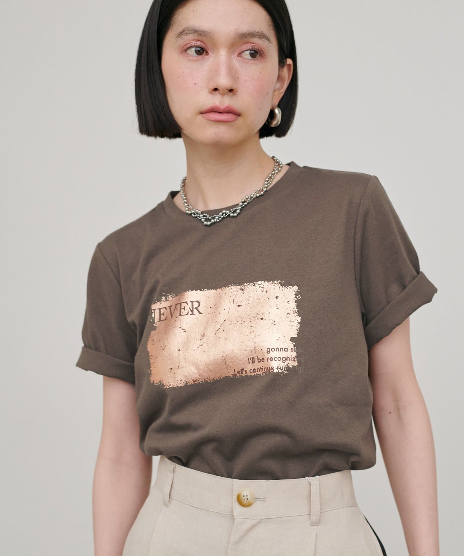 印象を与える箔プリントが特徴。