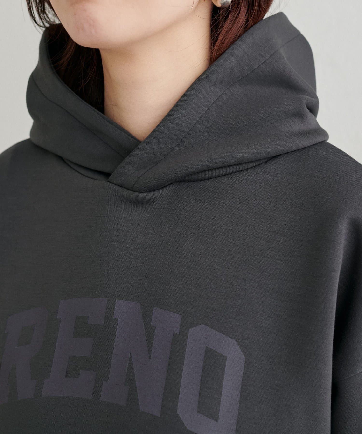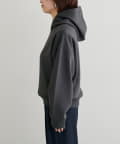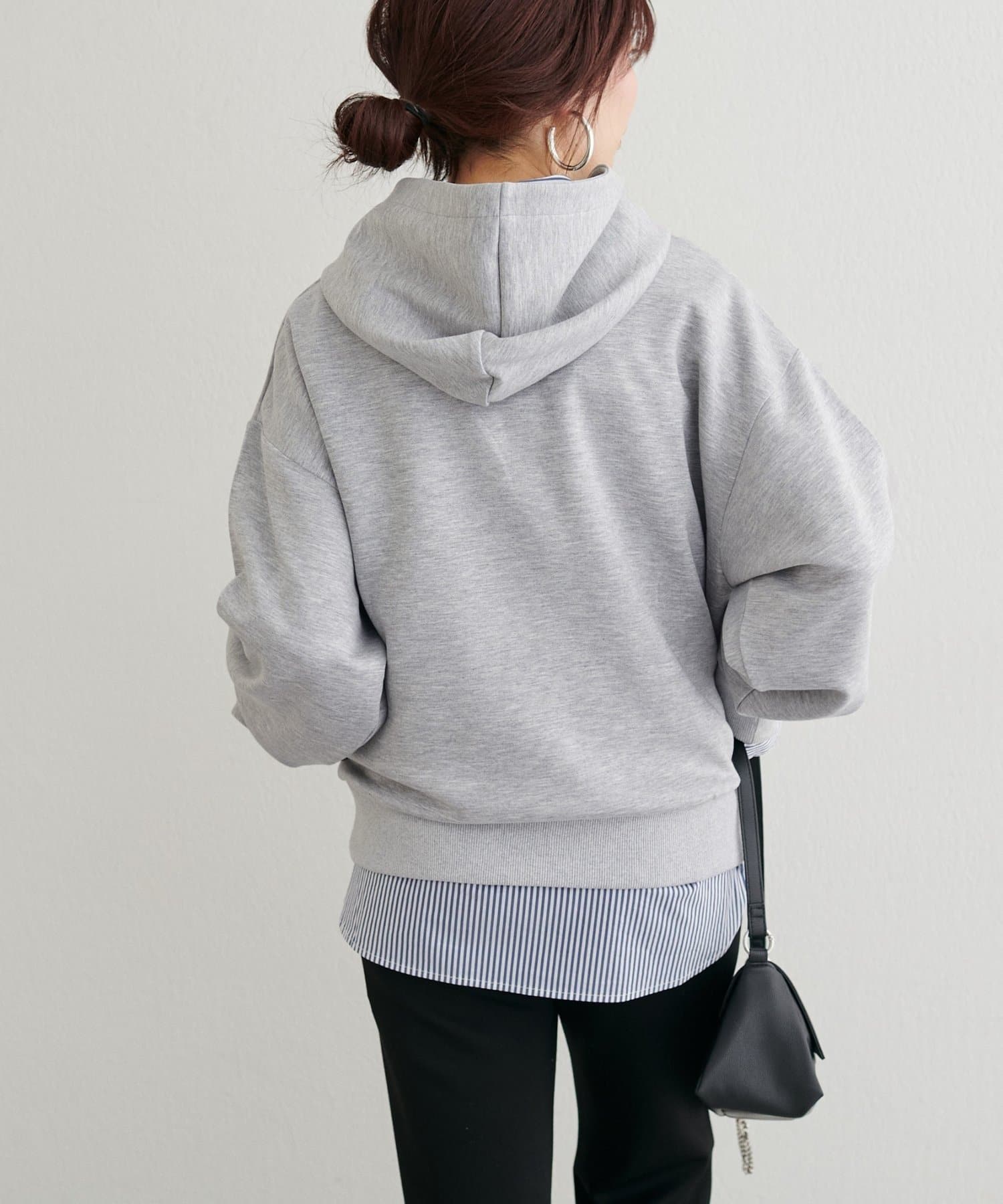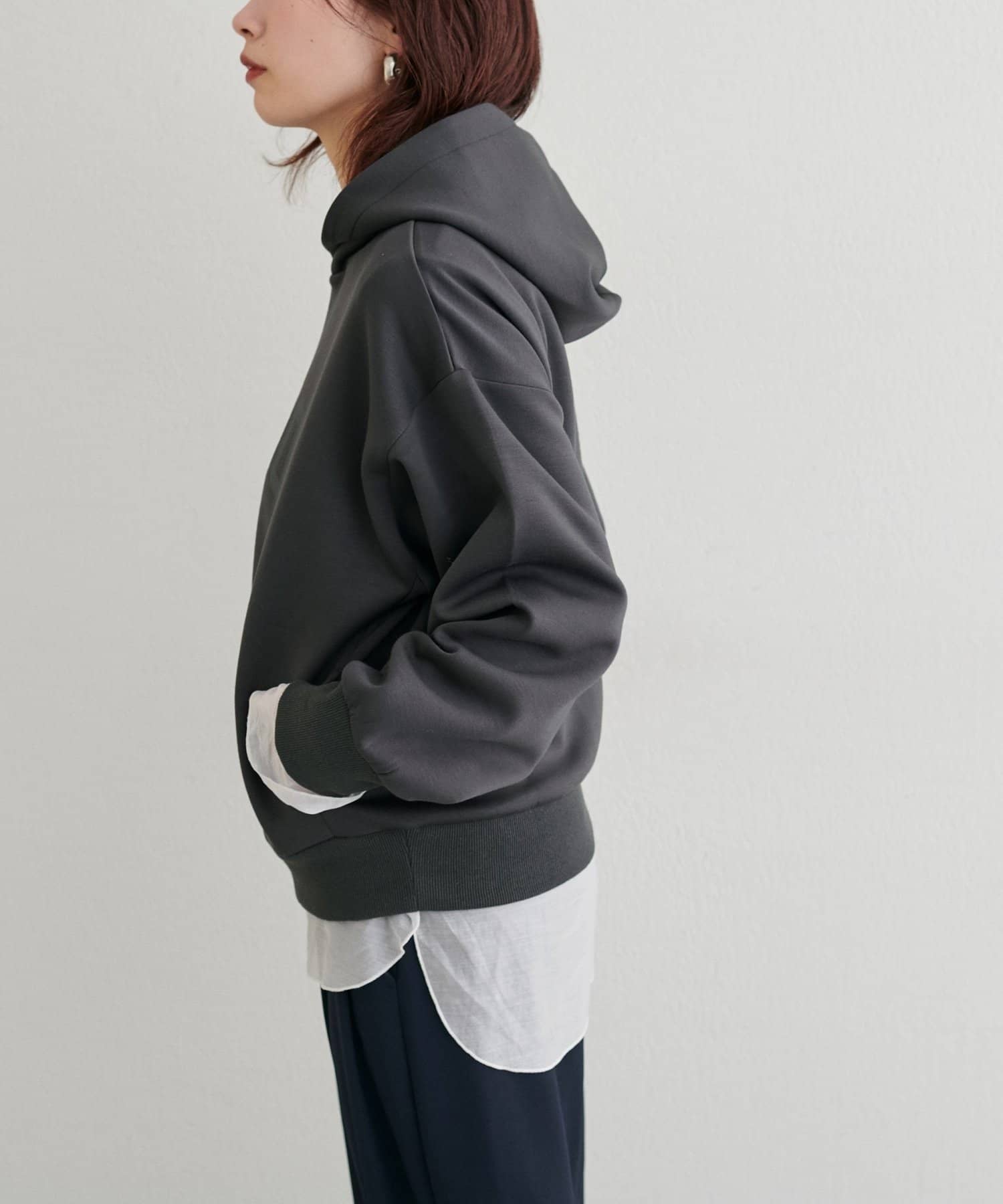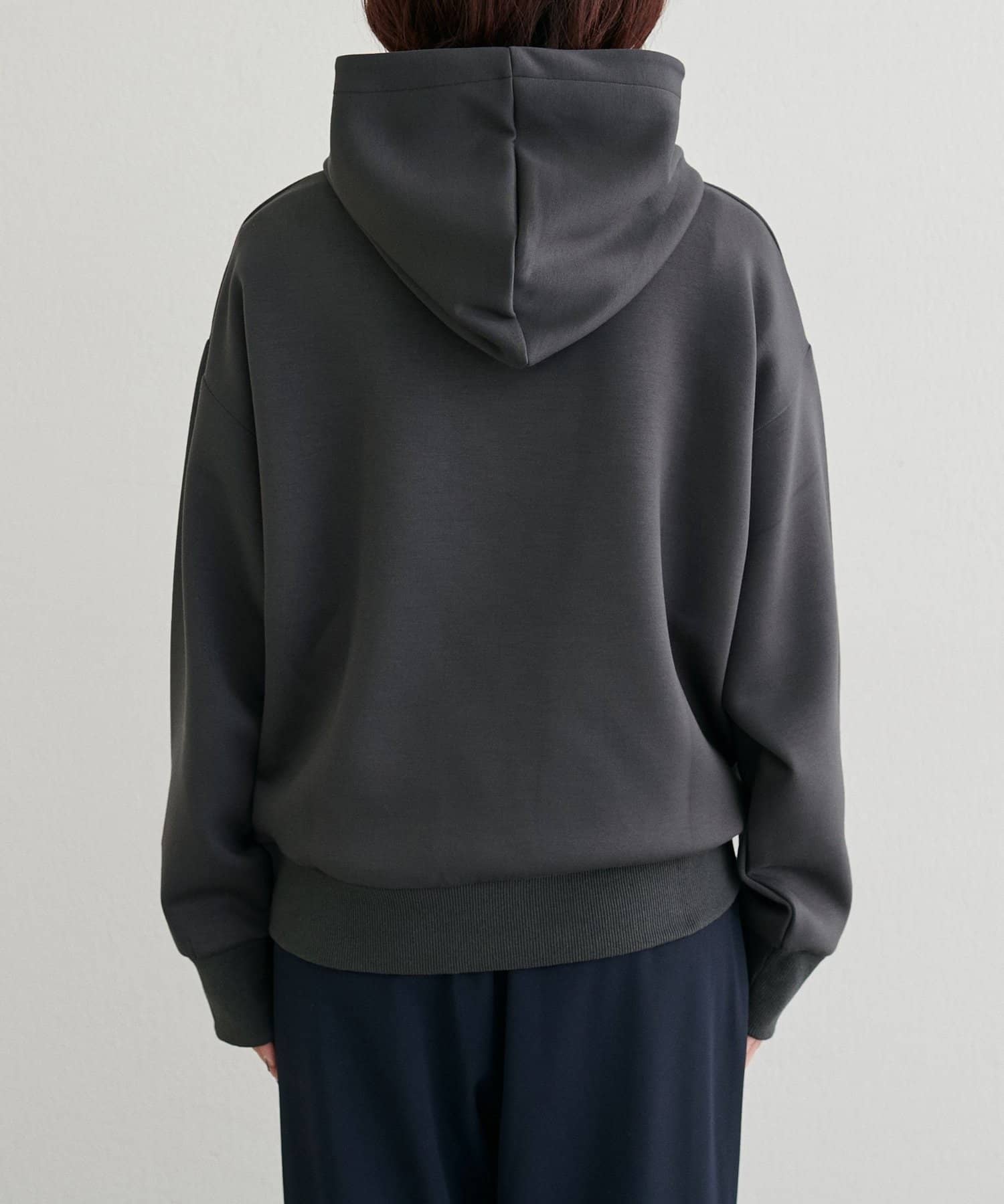 立体的に立ち上がるフードと、すっきりとした身頃のバランスがポイントで、カジュアルながらもどこか洗練された印象に仕上げました。