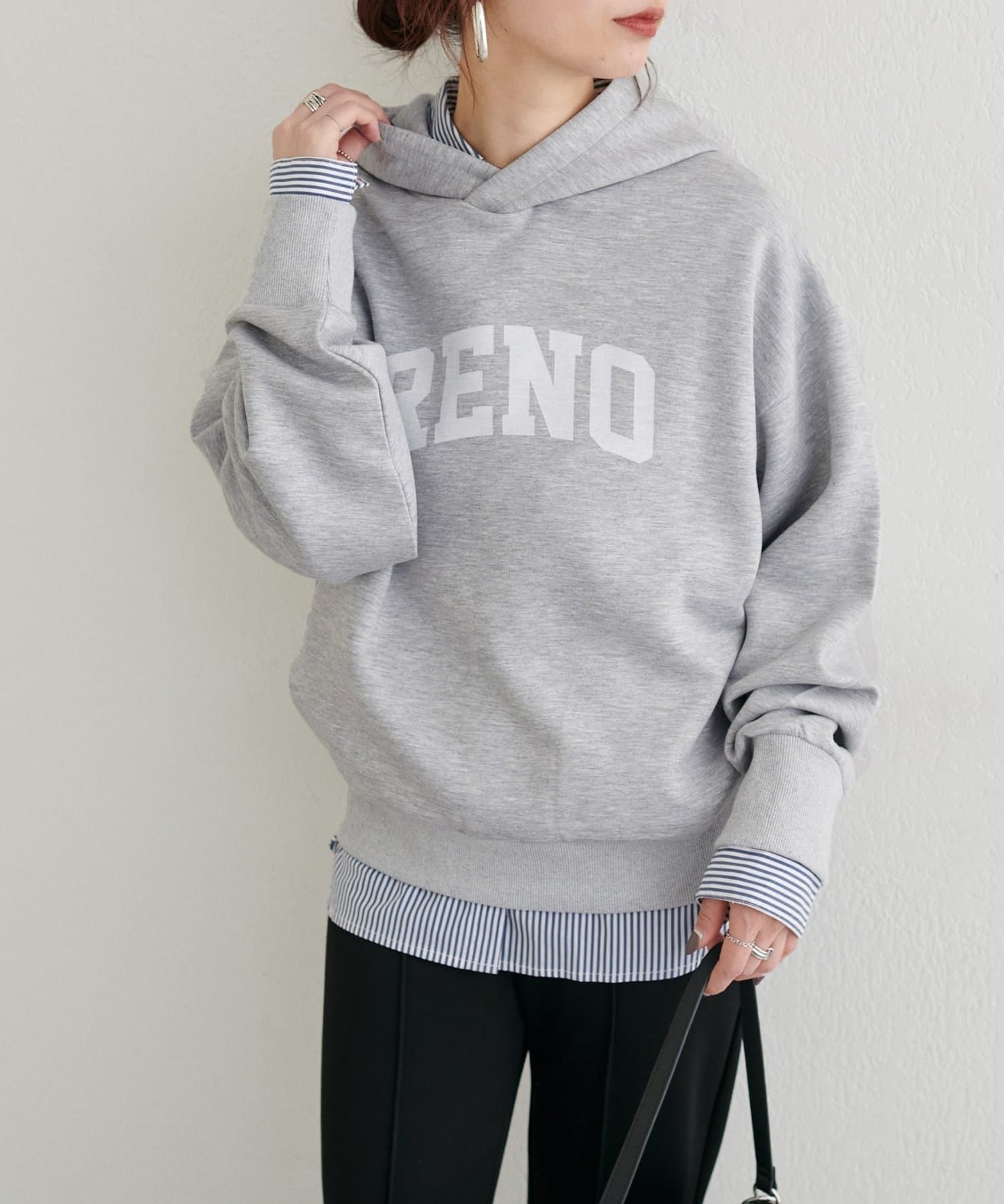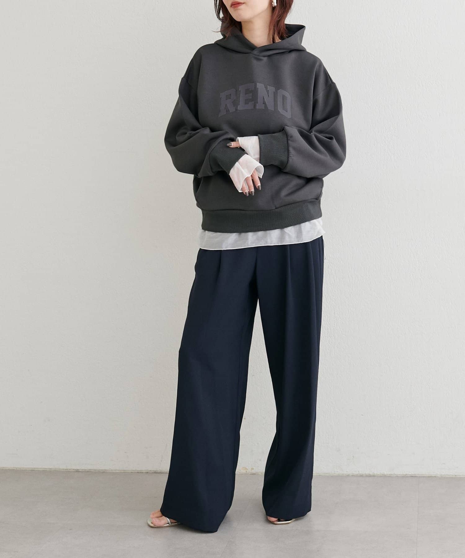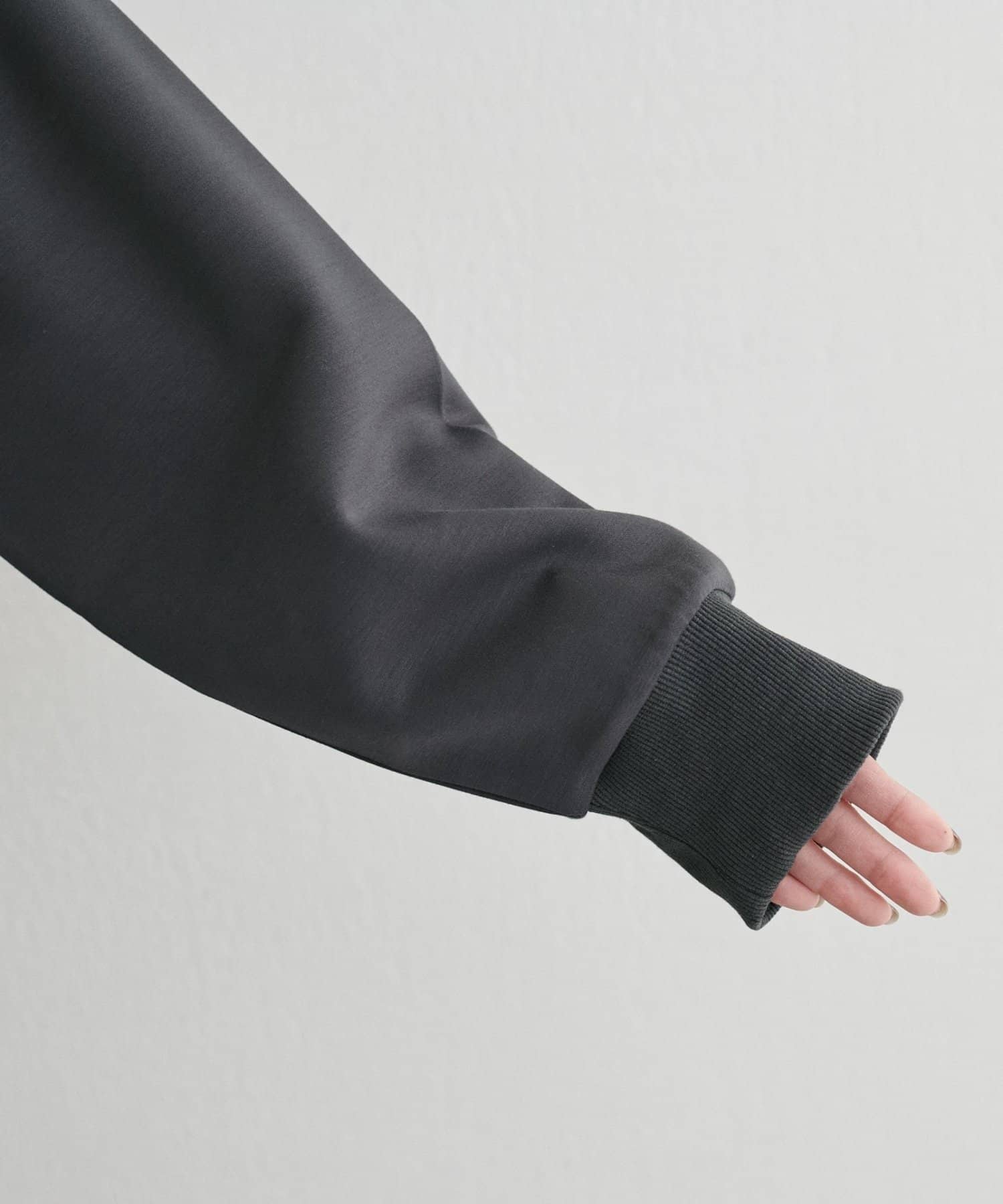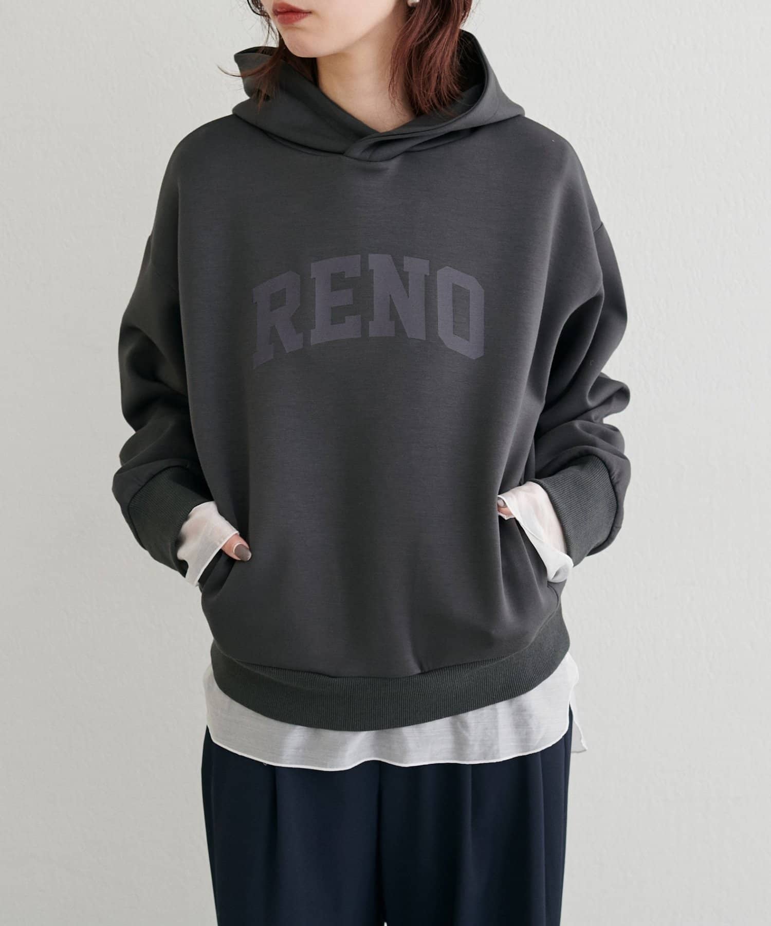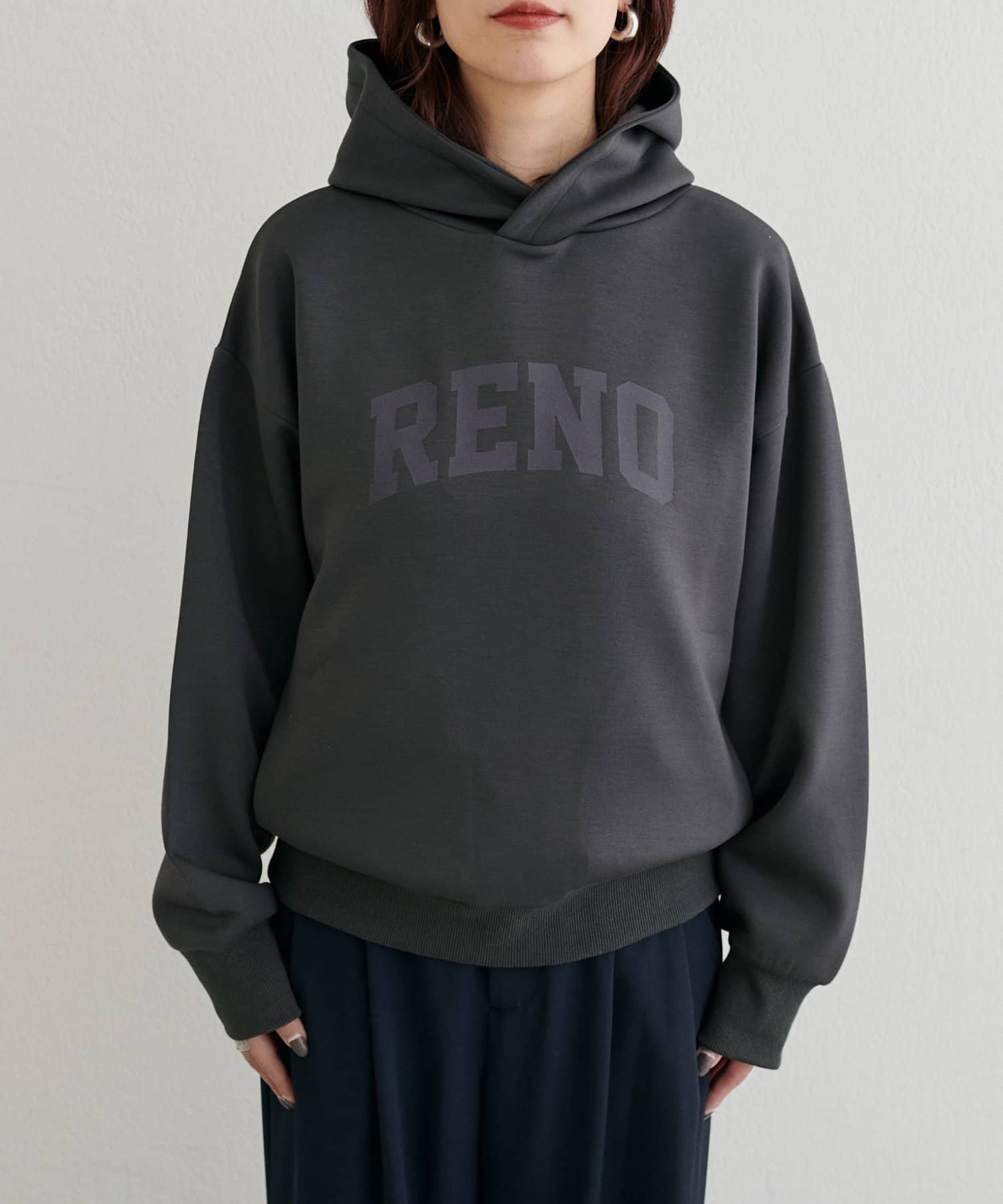 立体的に立ち上がるフードと、すっきりとした身頃のバランスがポイントで、カジュアルながらもどこか洗練された印象に仕上げました。