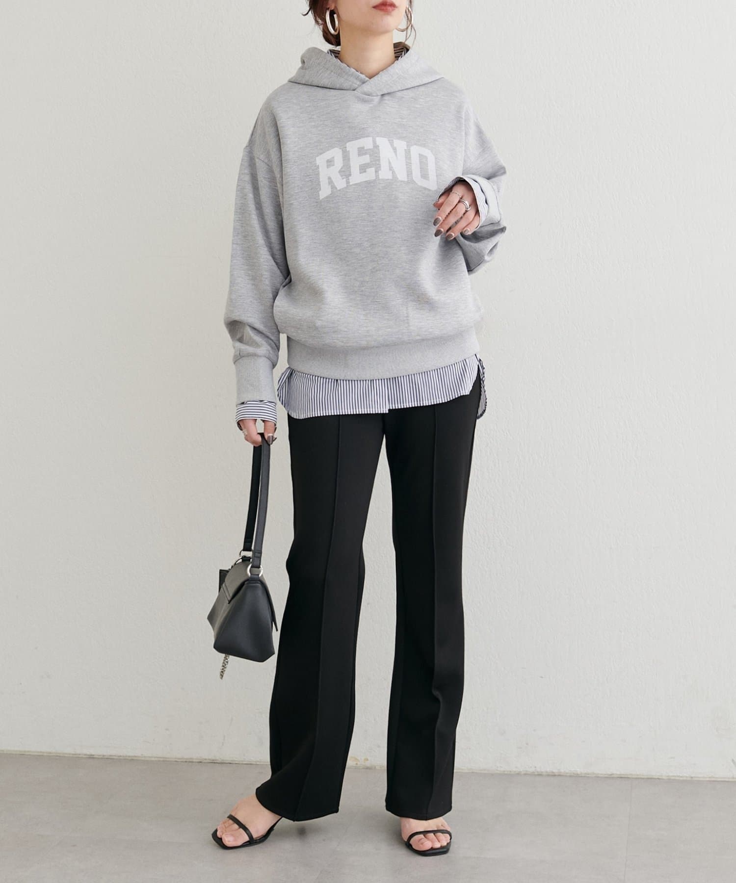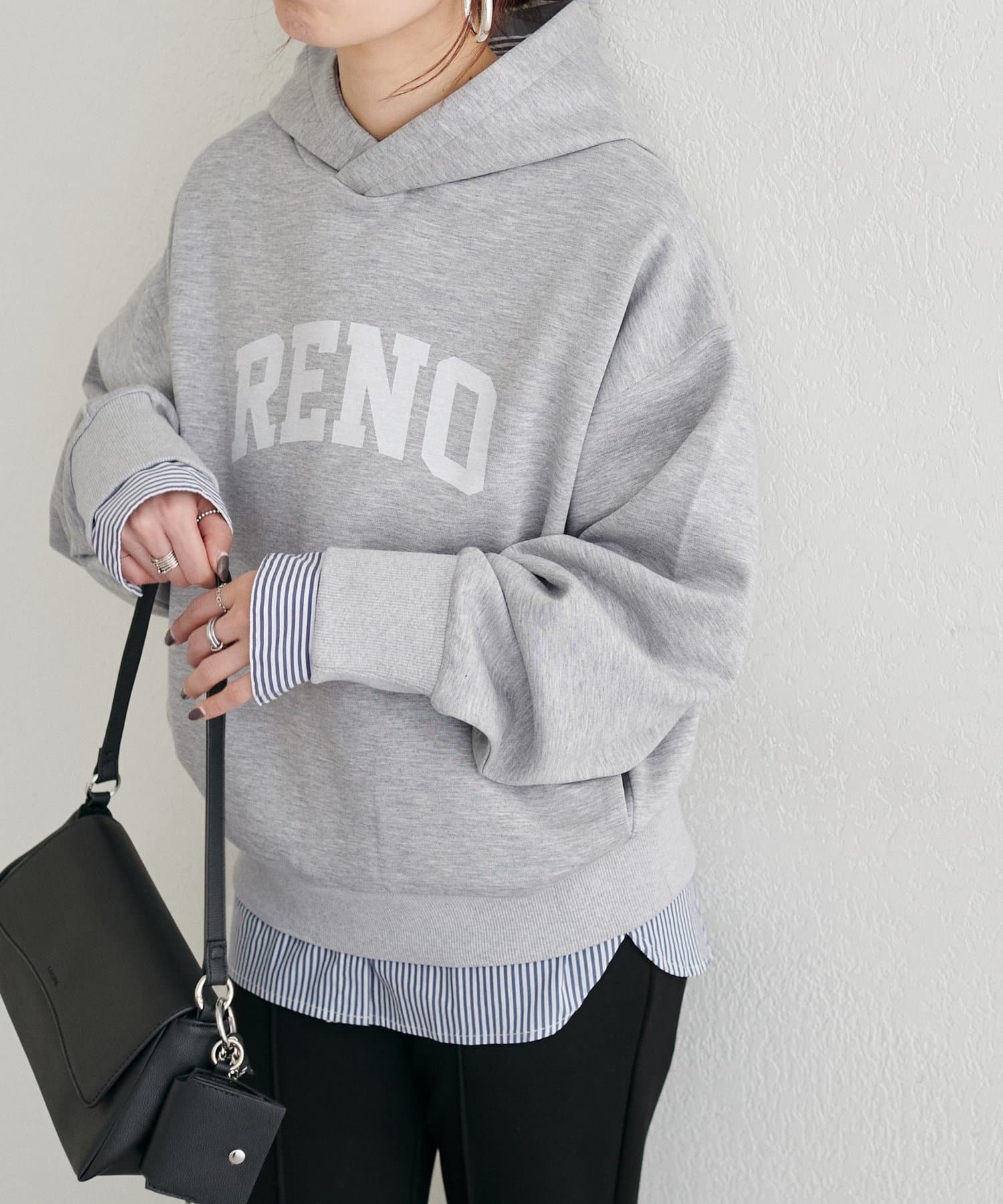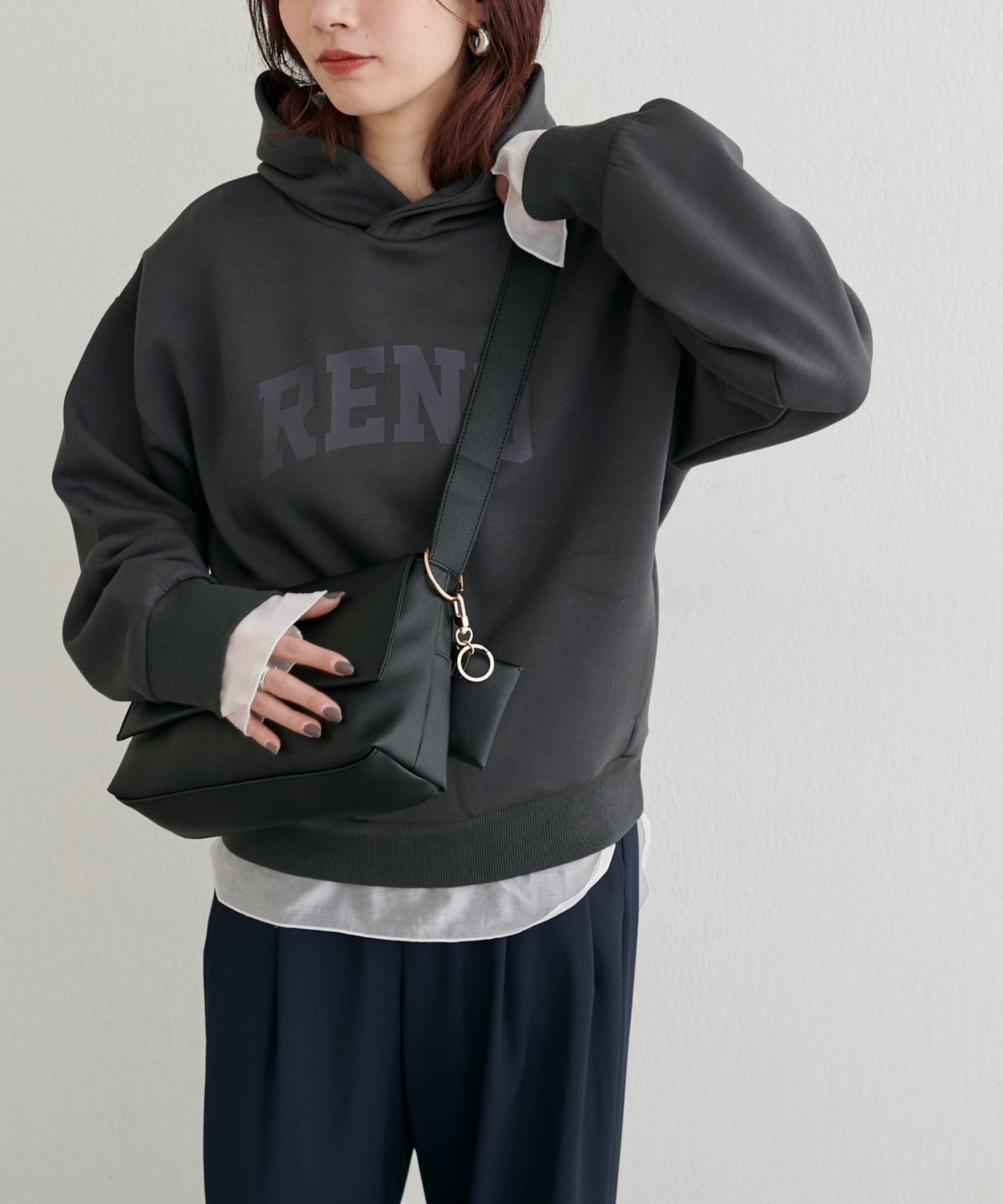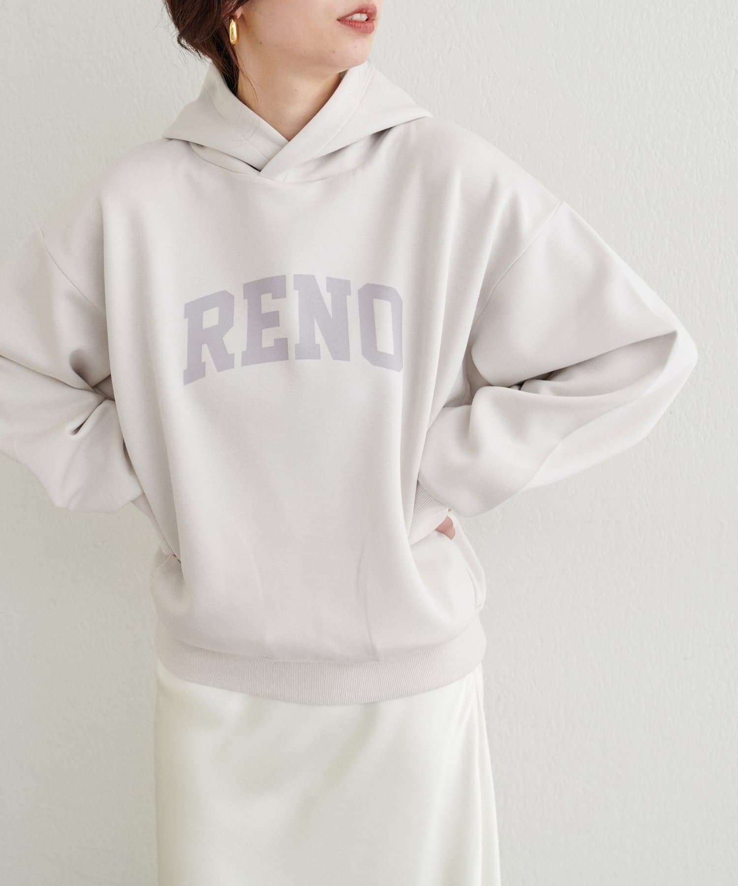 立体的に立ち上がるフードと、すっきりとした身頃のバランスがポイントで、カジュアルながらもどこか洗練された印象に仕上げました。