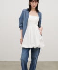 ふんわりとしたフォルムが女性らしさを引き立てつつ、カップ付き仕様でインナーいらずでさらに