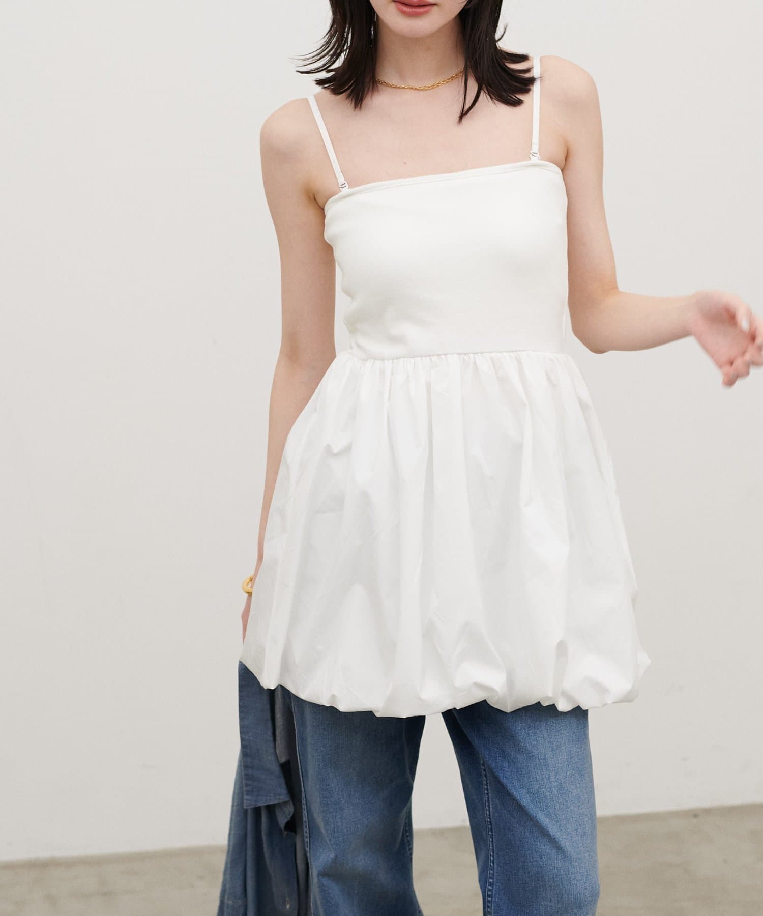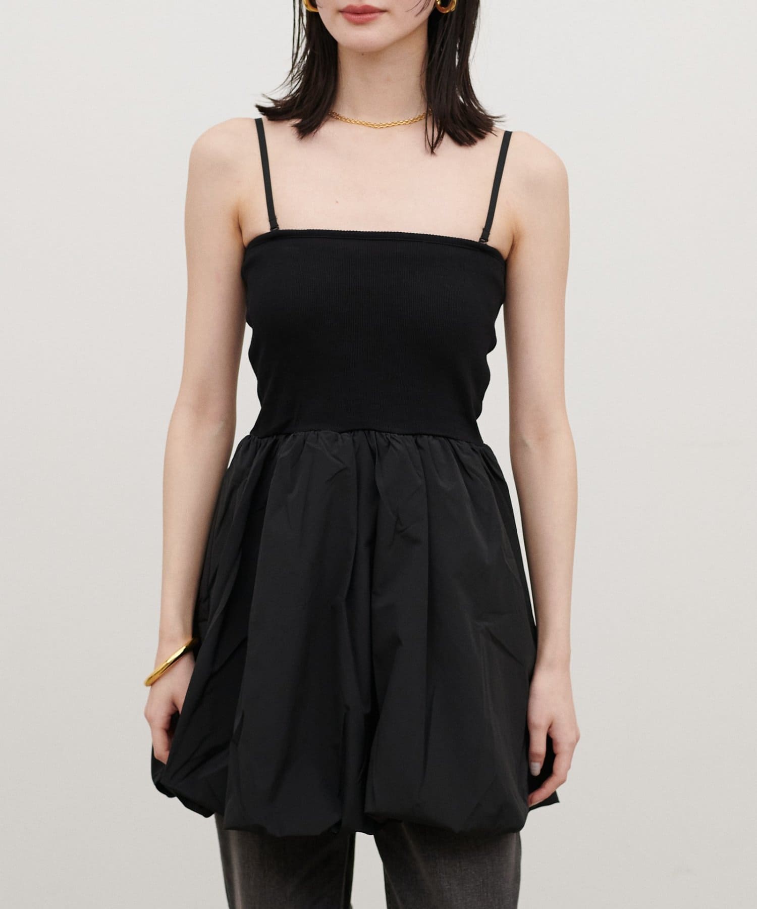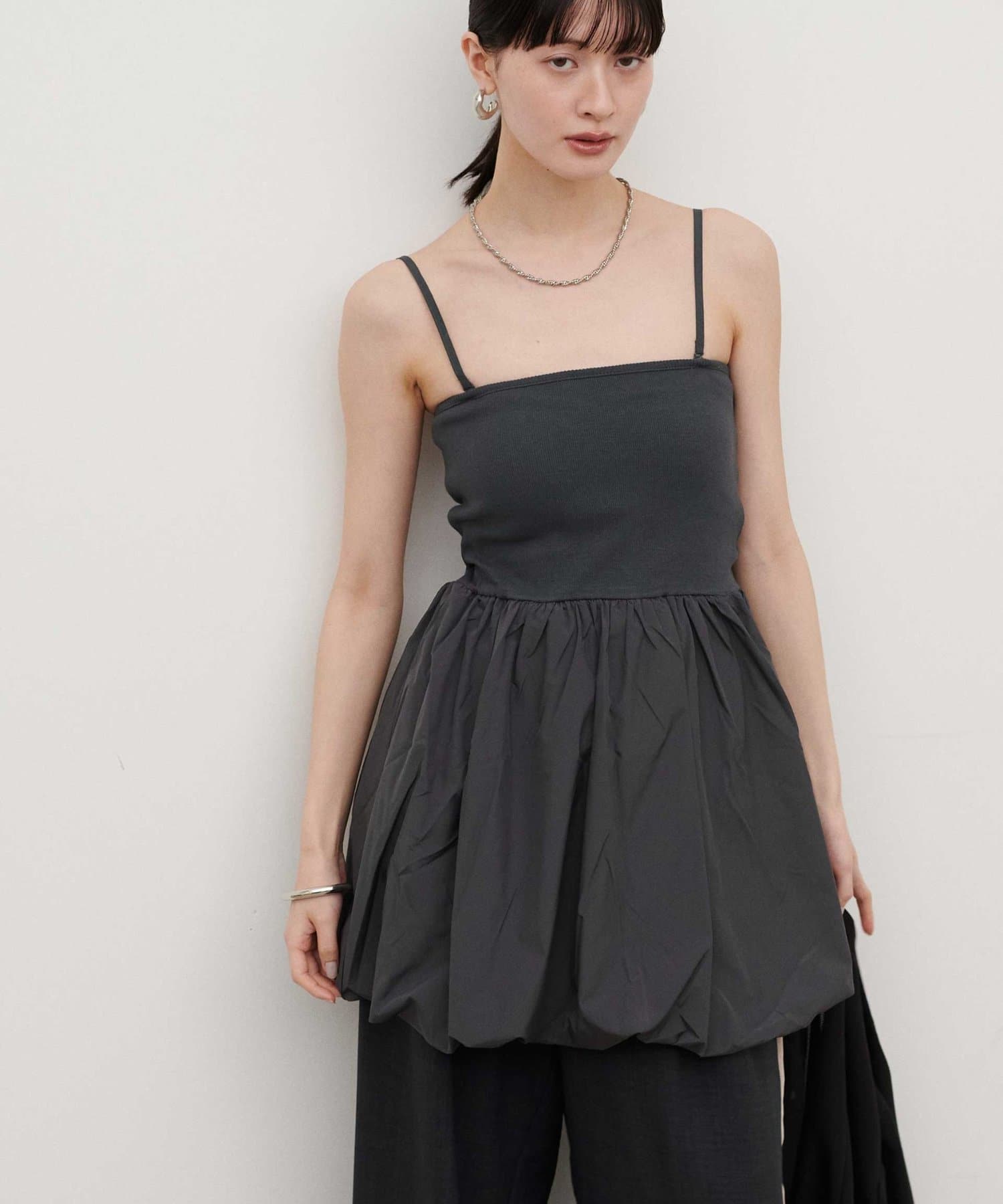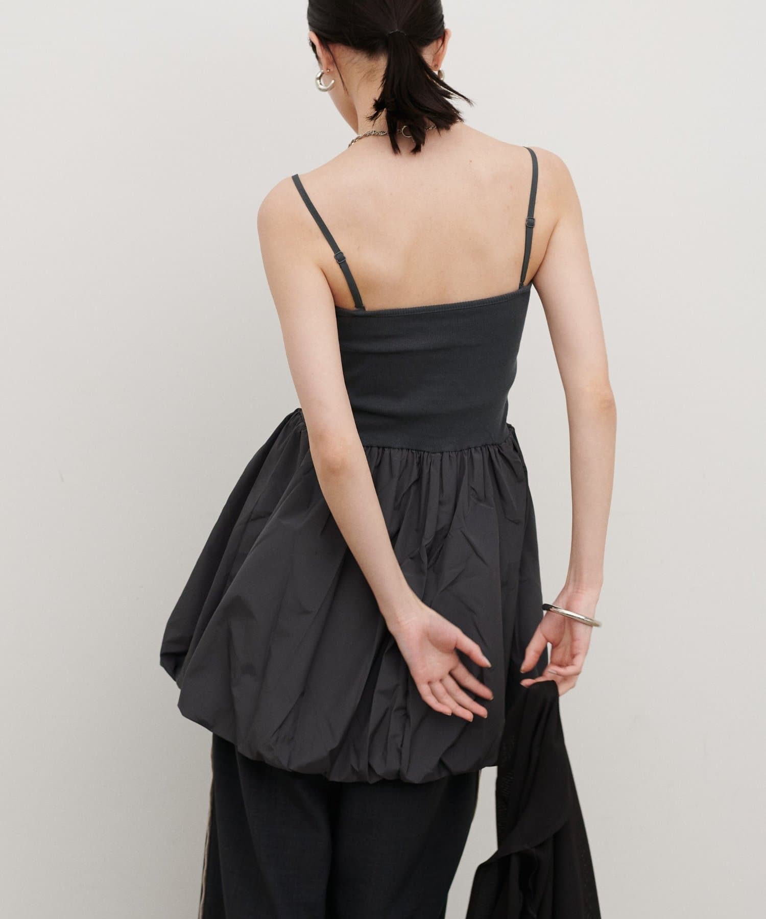 異素材の組み合わせで立体的に仕上げたバルーンシルエットのキャミソール。