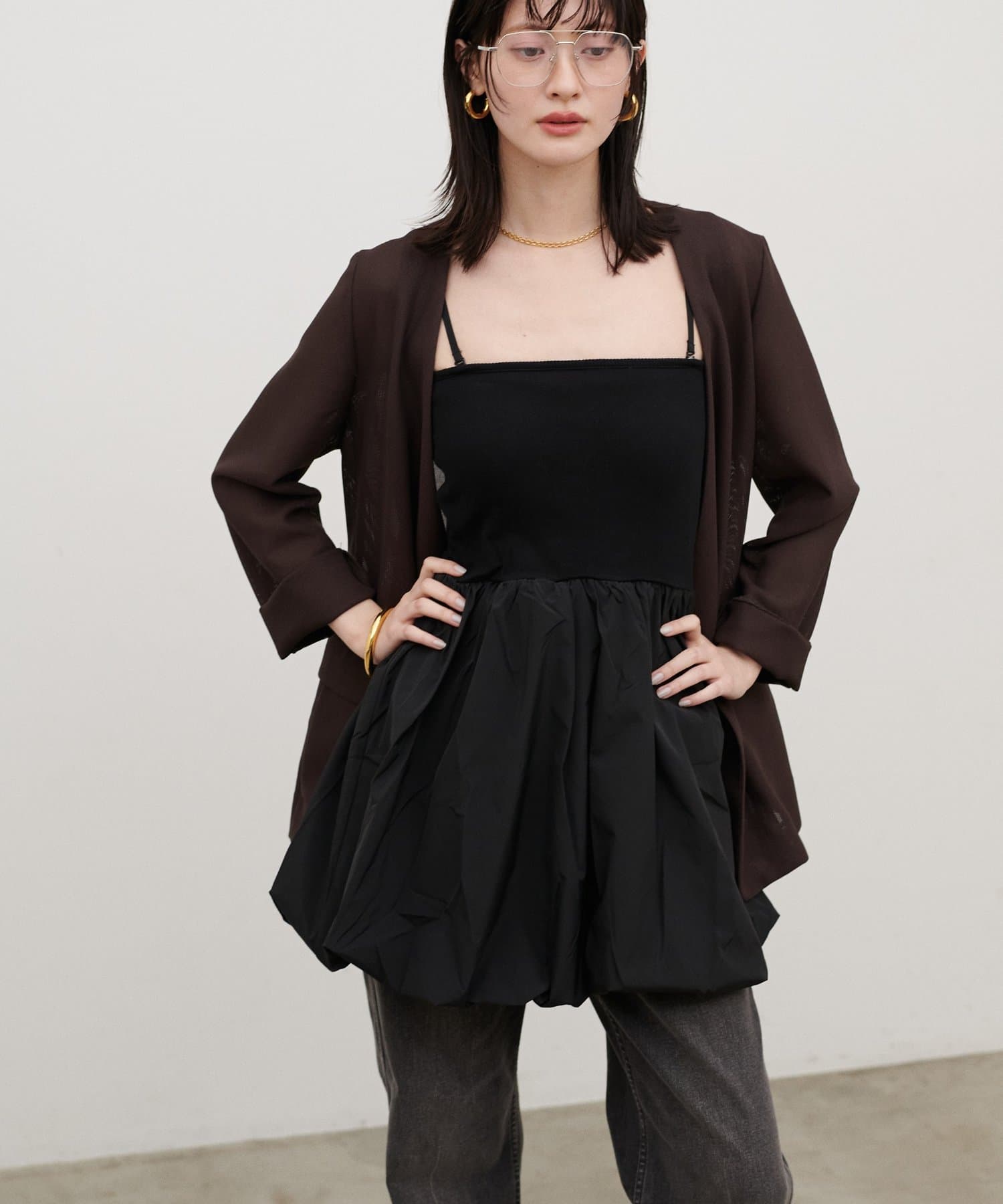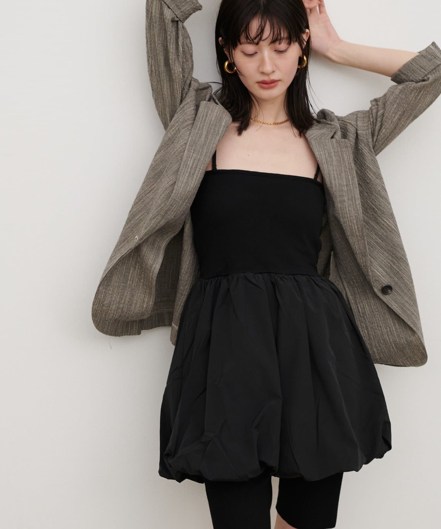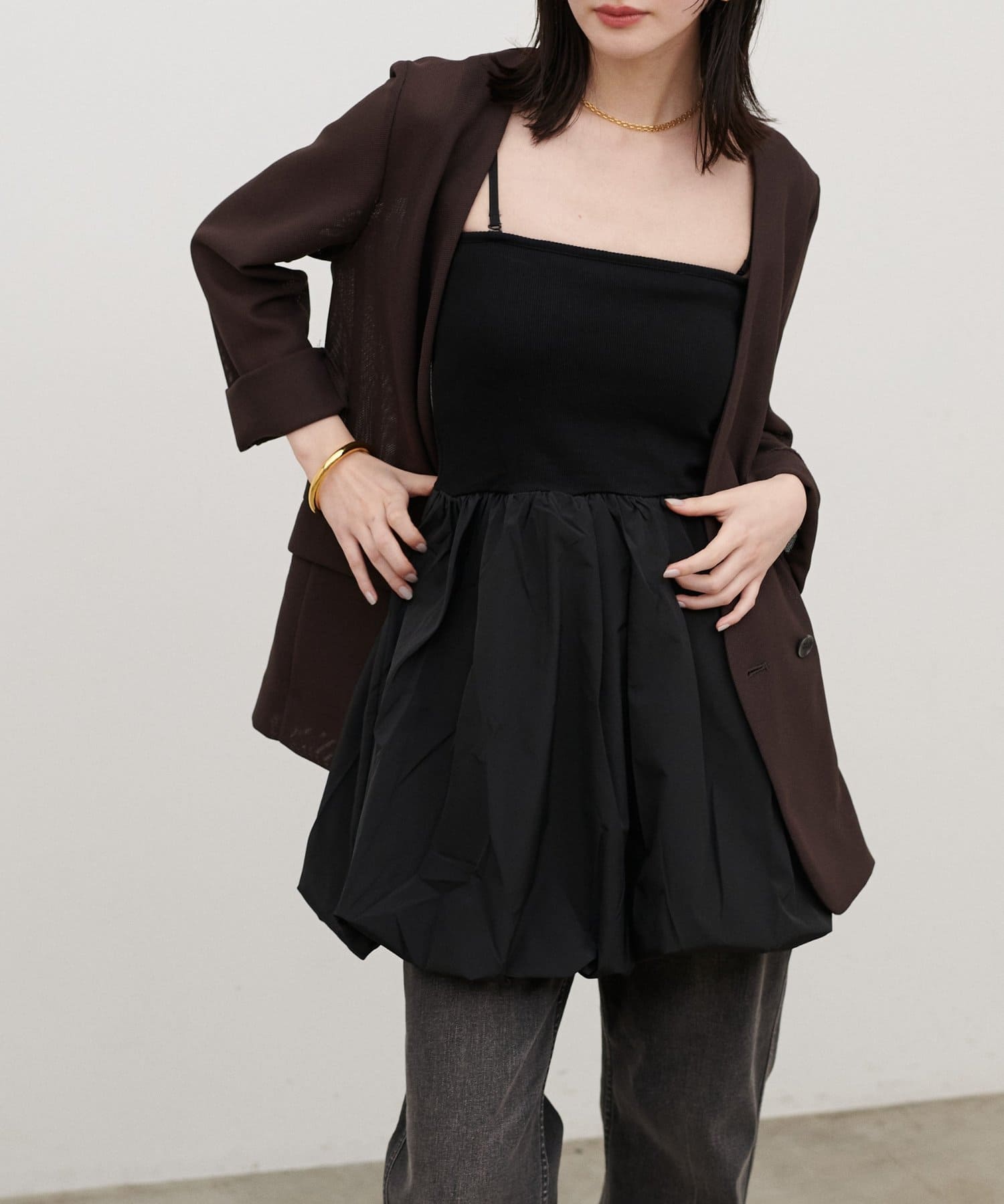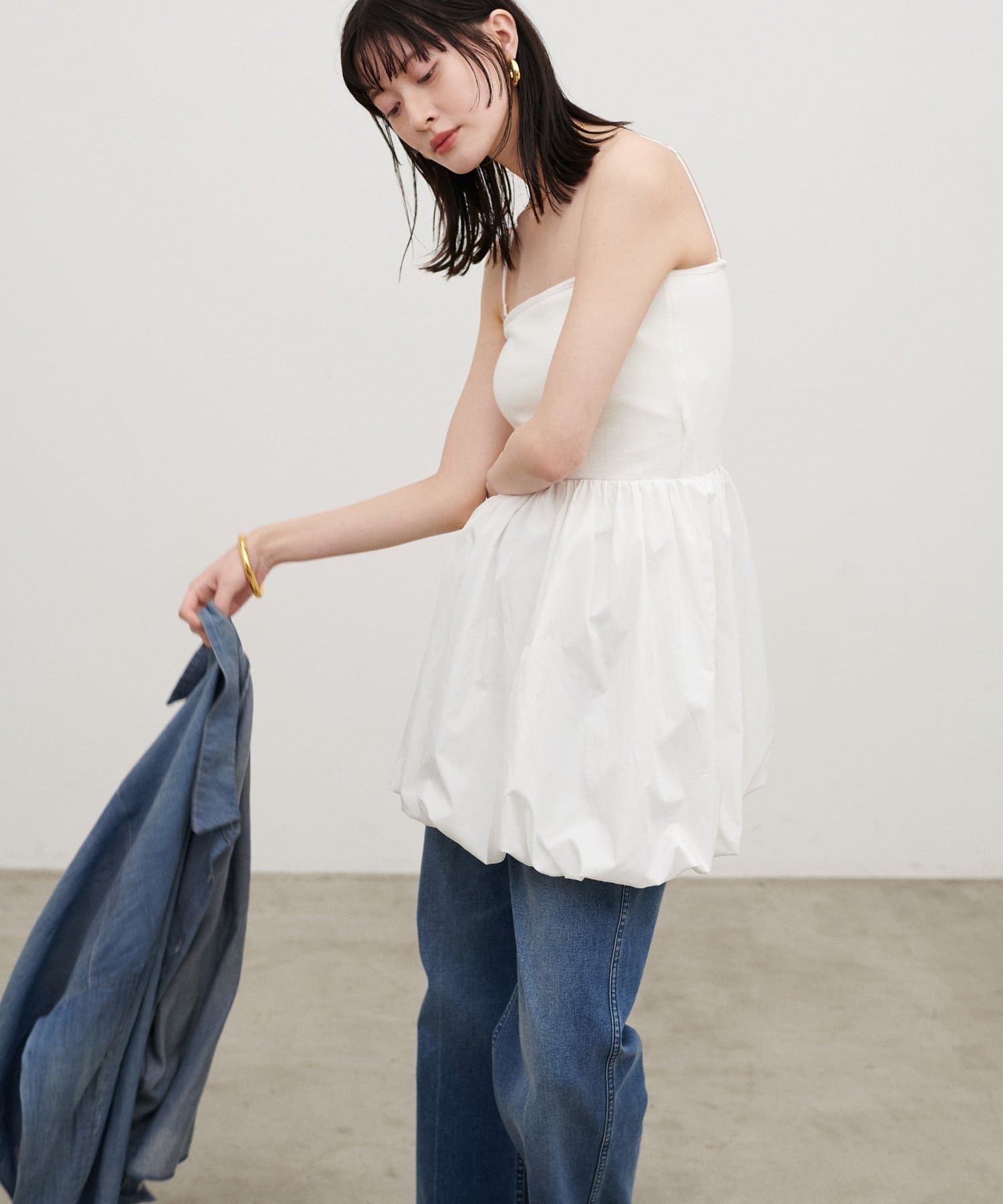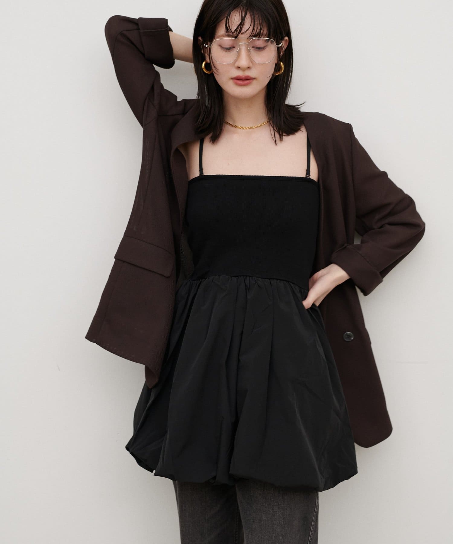 異素材の組み合わせで立体的に仕上げたバルーンシルエットのキャミソール。