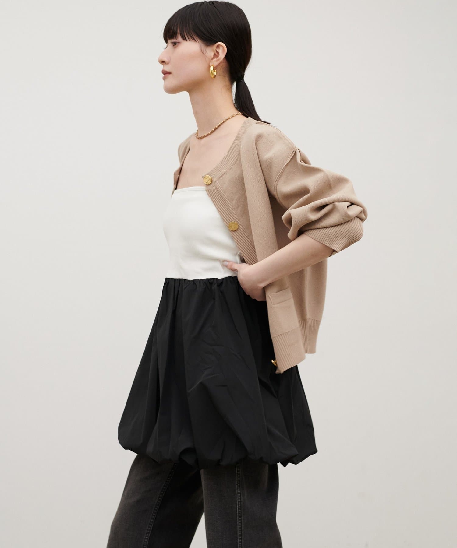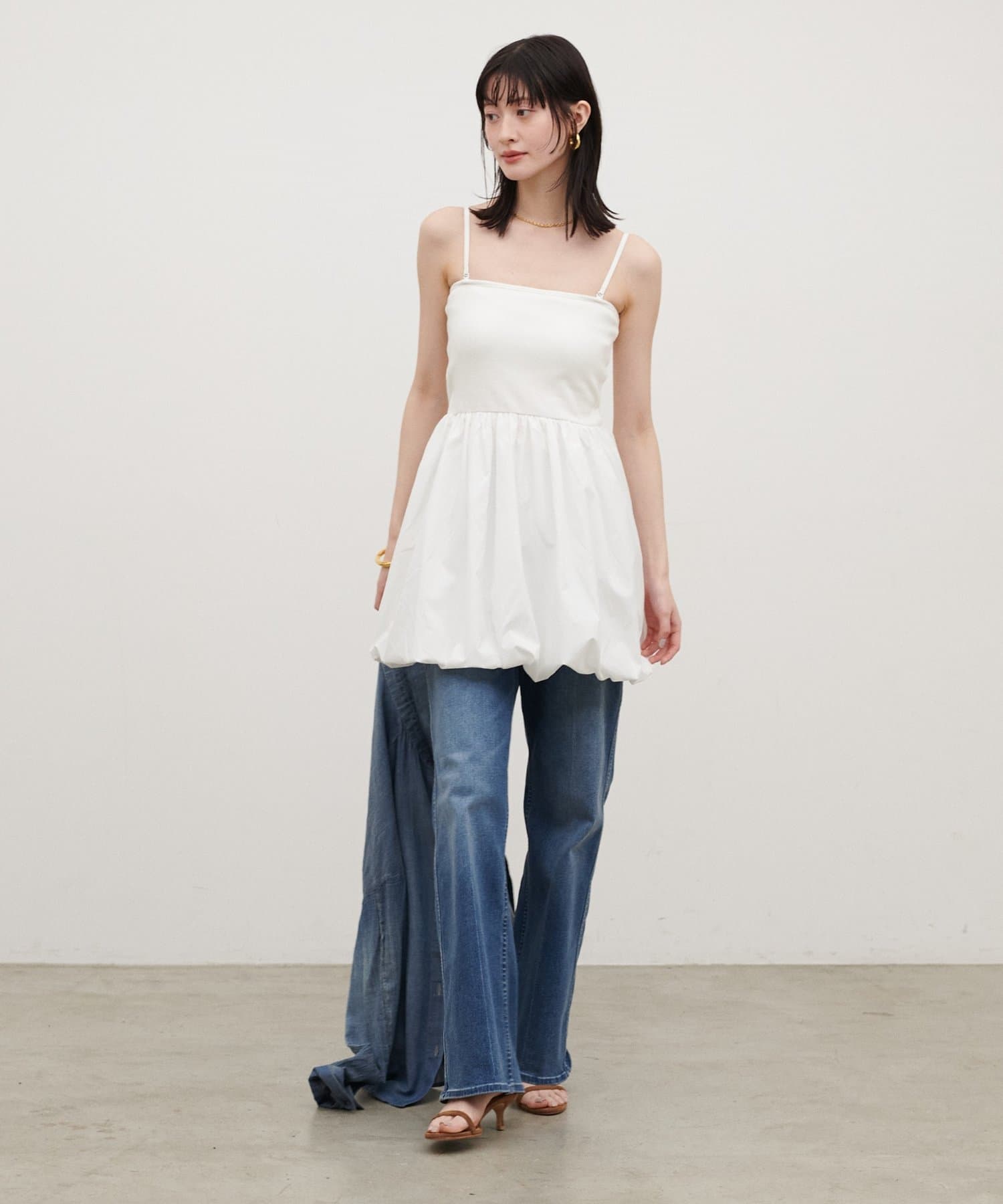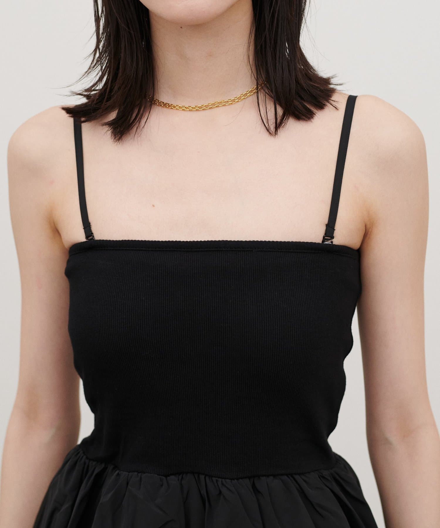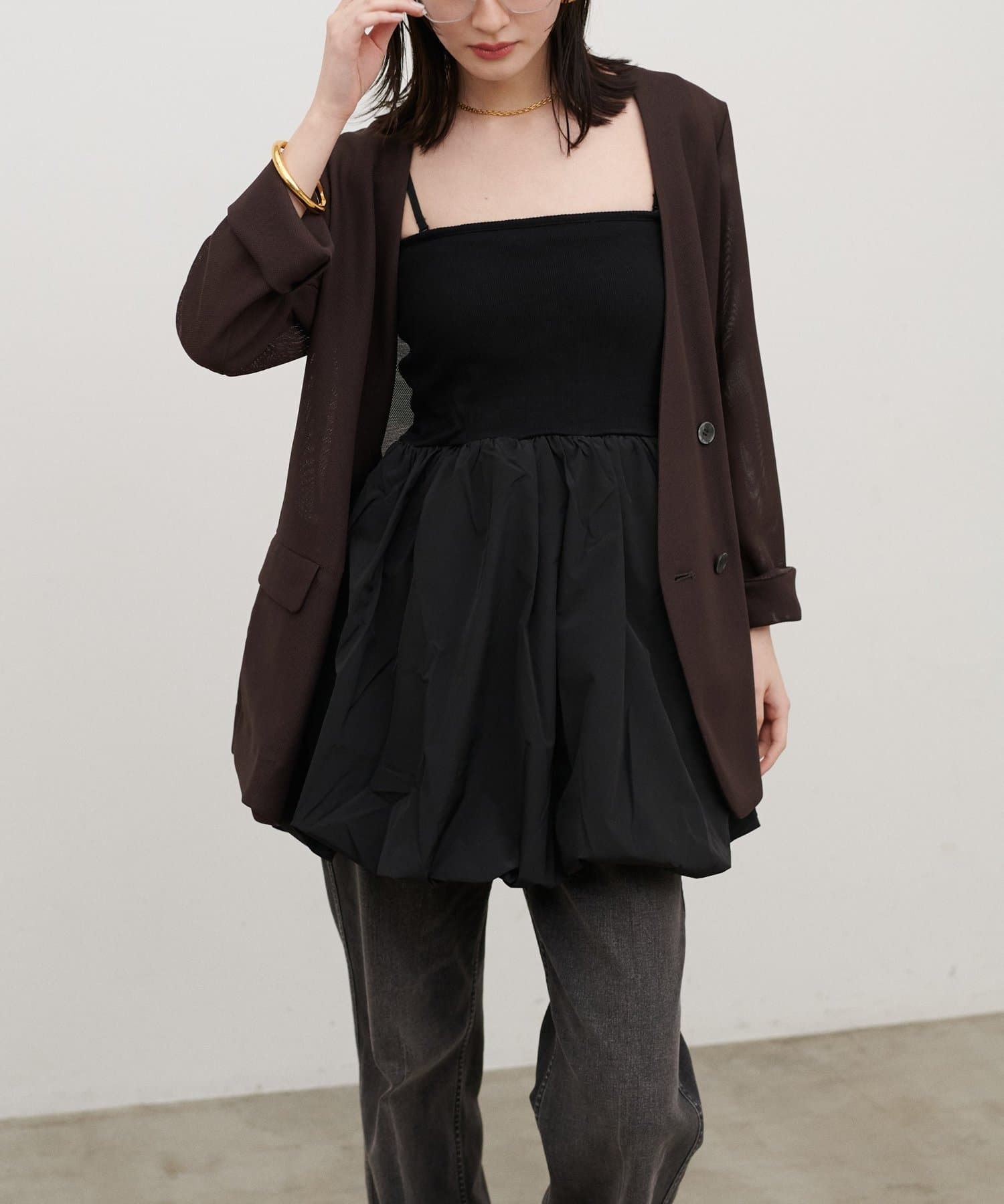 異素材の組み合わせで立体的に仕上げたバルーンシルエットのキャミソール。