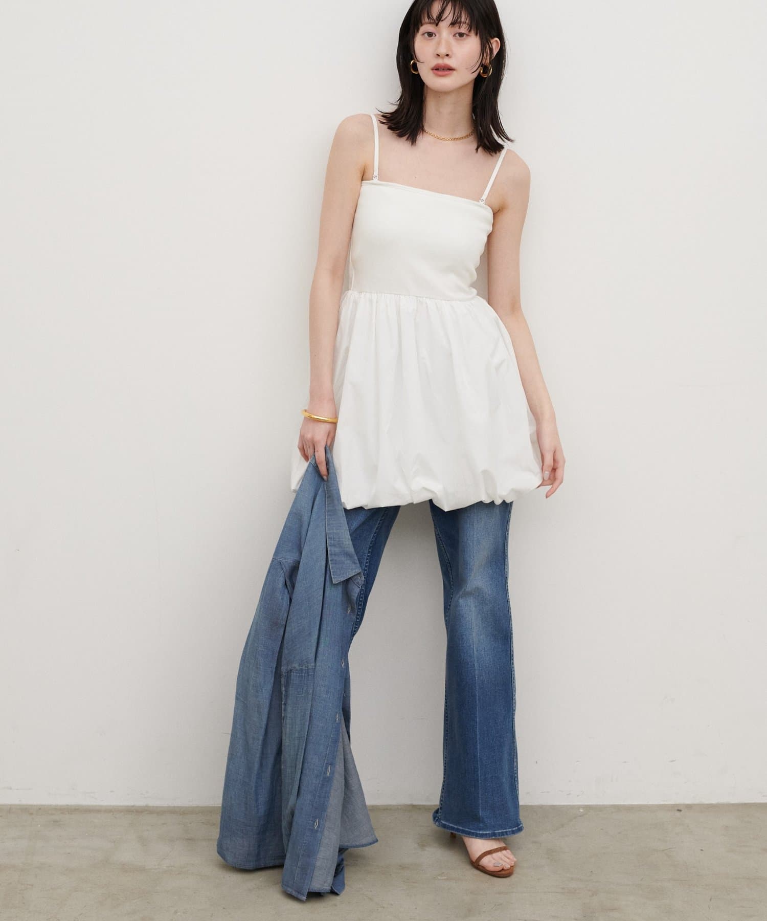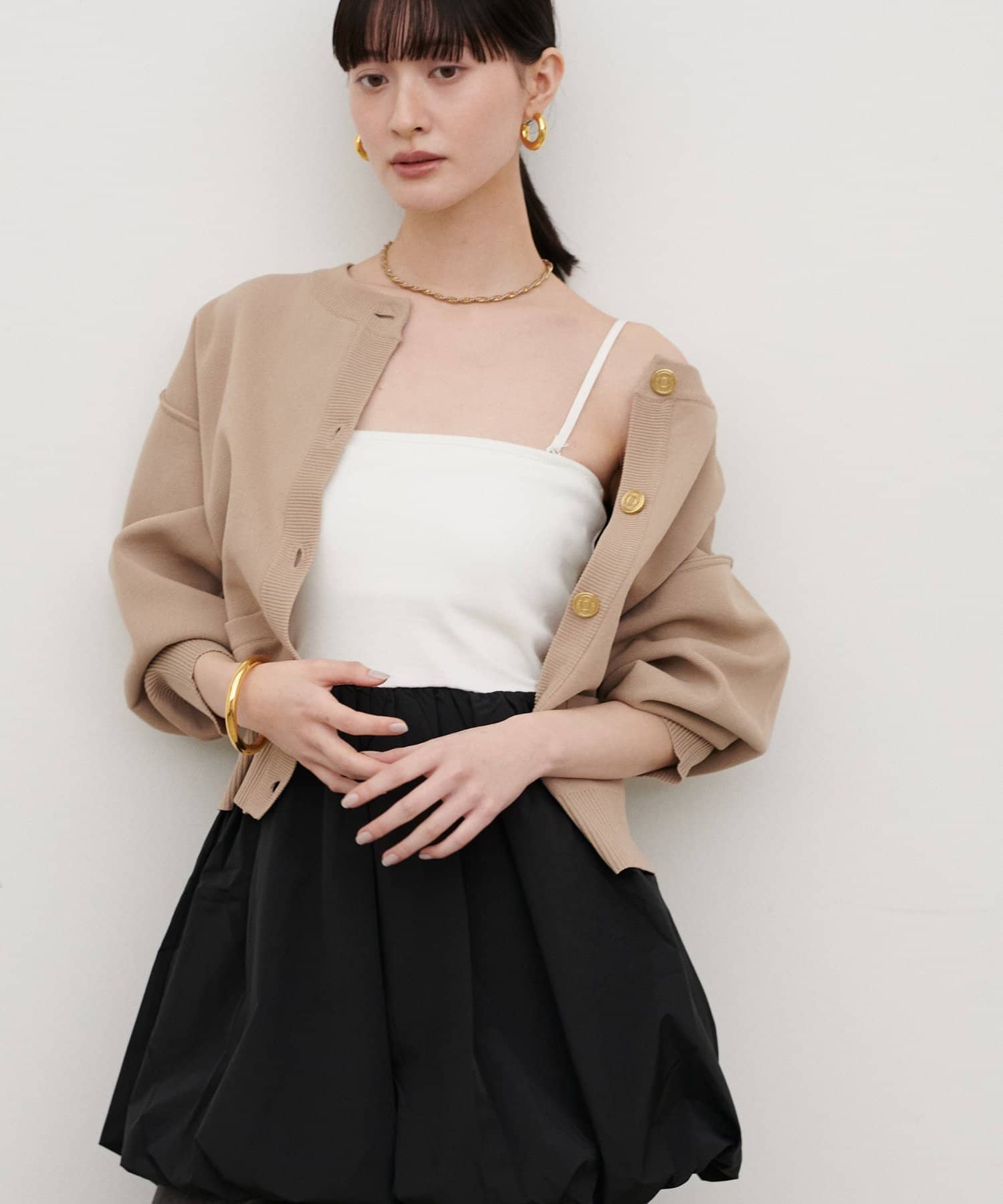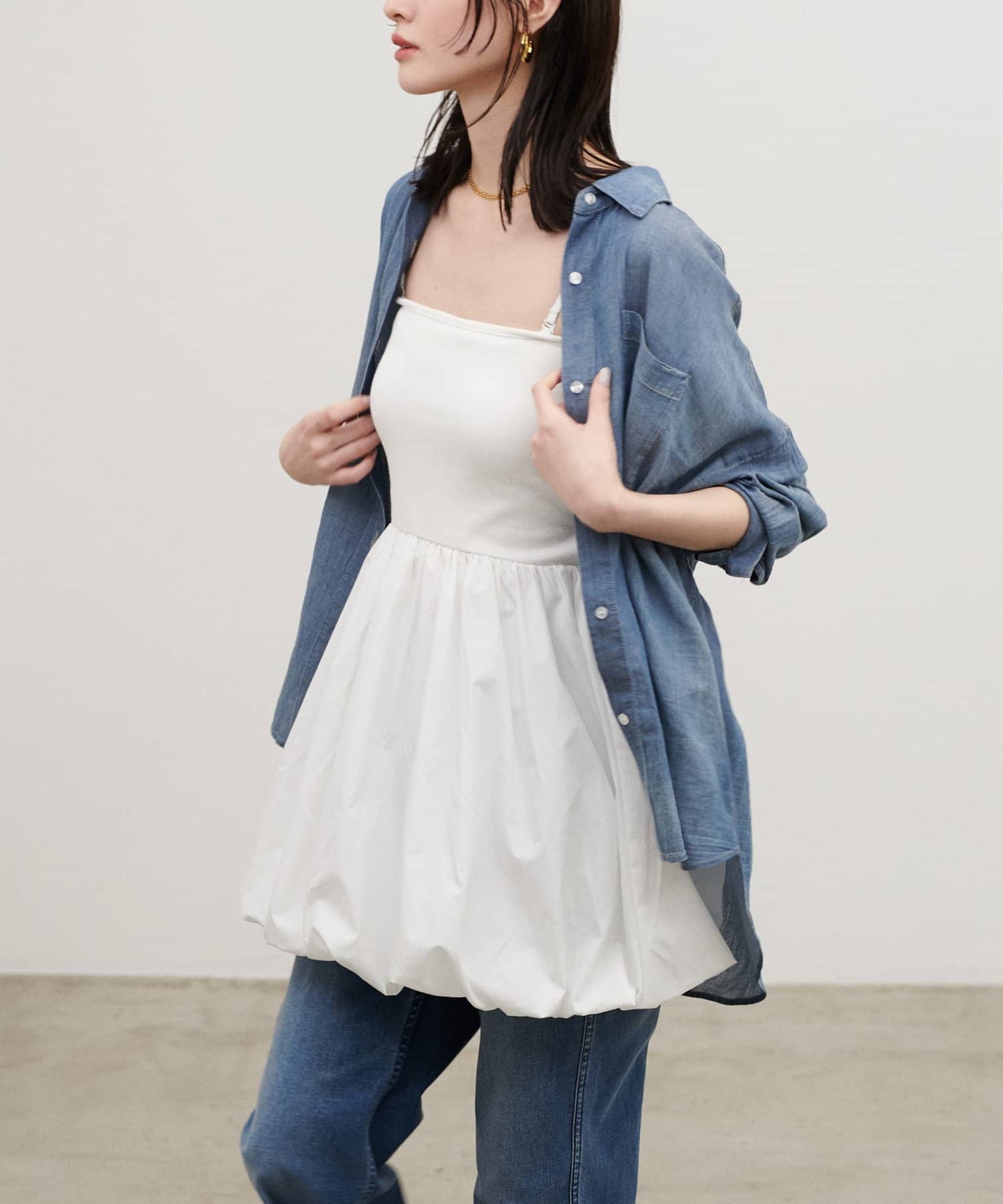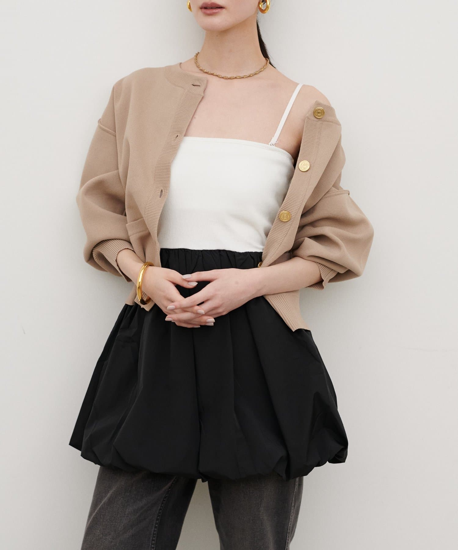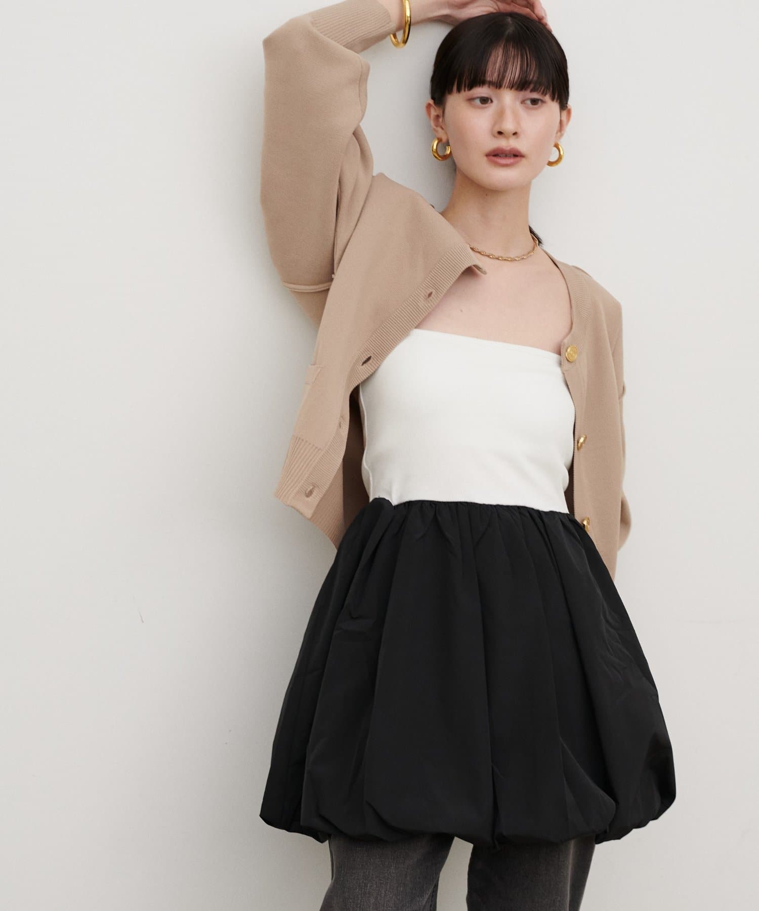異素材の組み合わせで立体的に仕上げたバルーンシルエットのキャミソール。