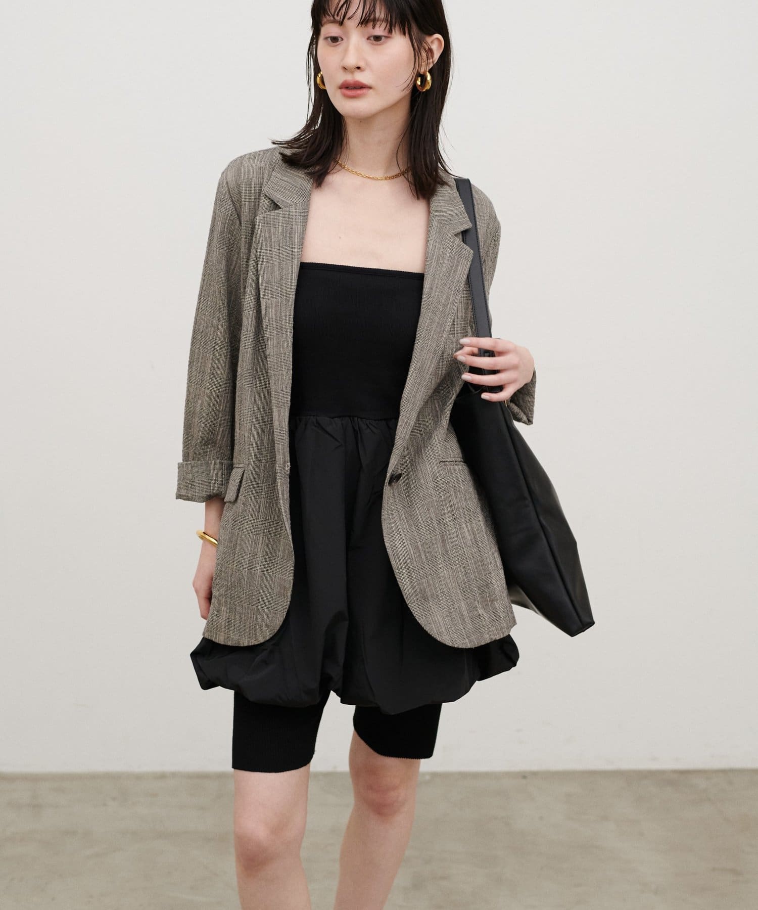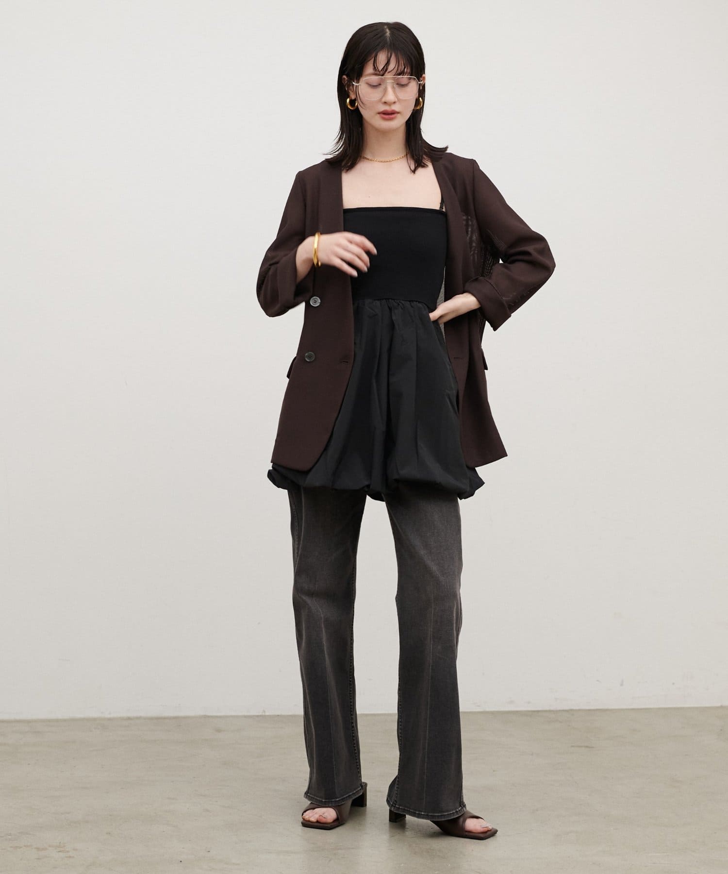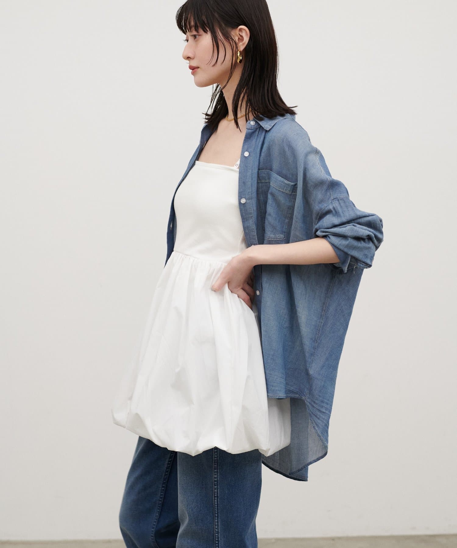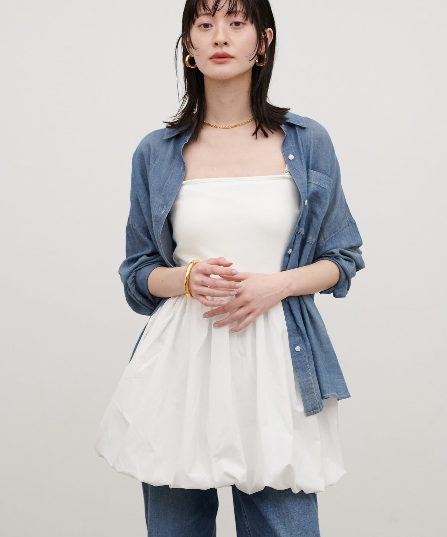 異素材の組み合わせで立体的に仕上げたバルーンシルエットのキャミソール。