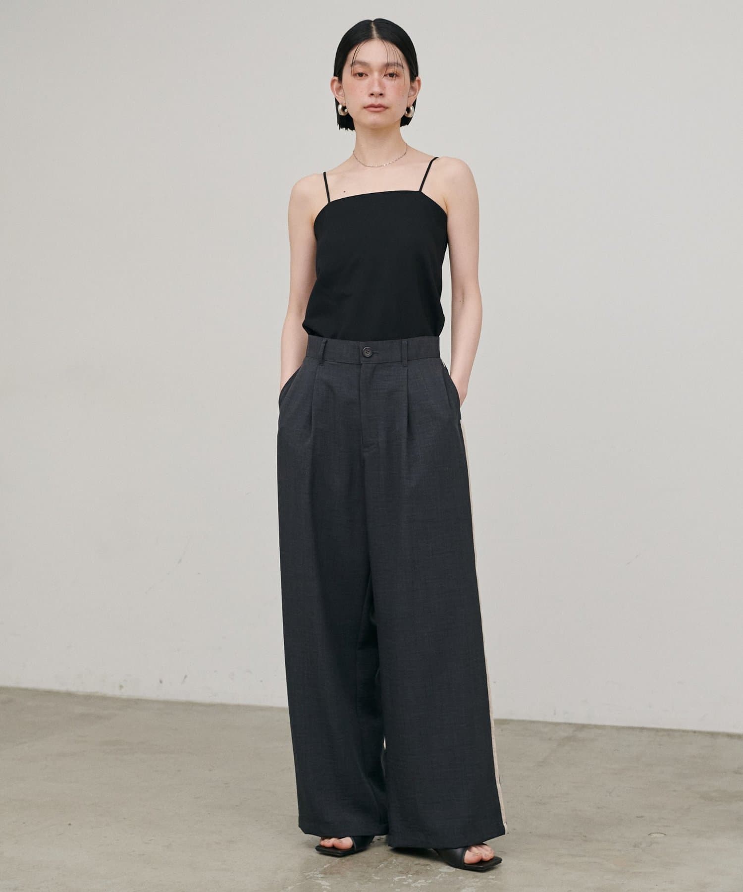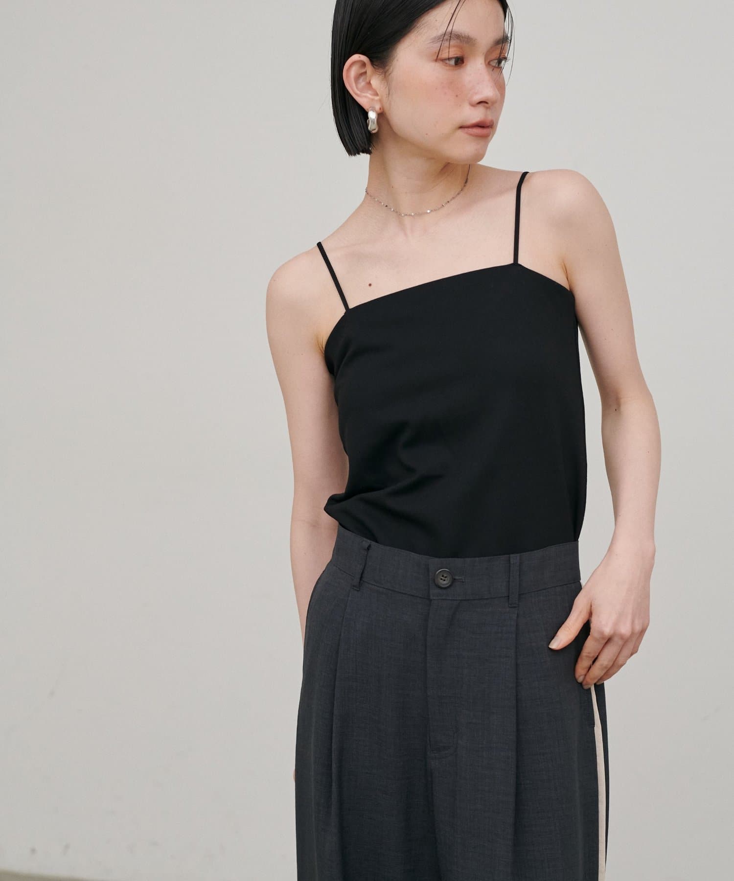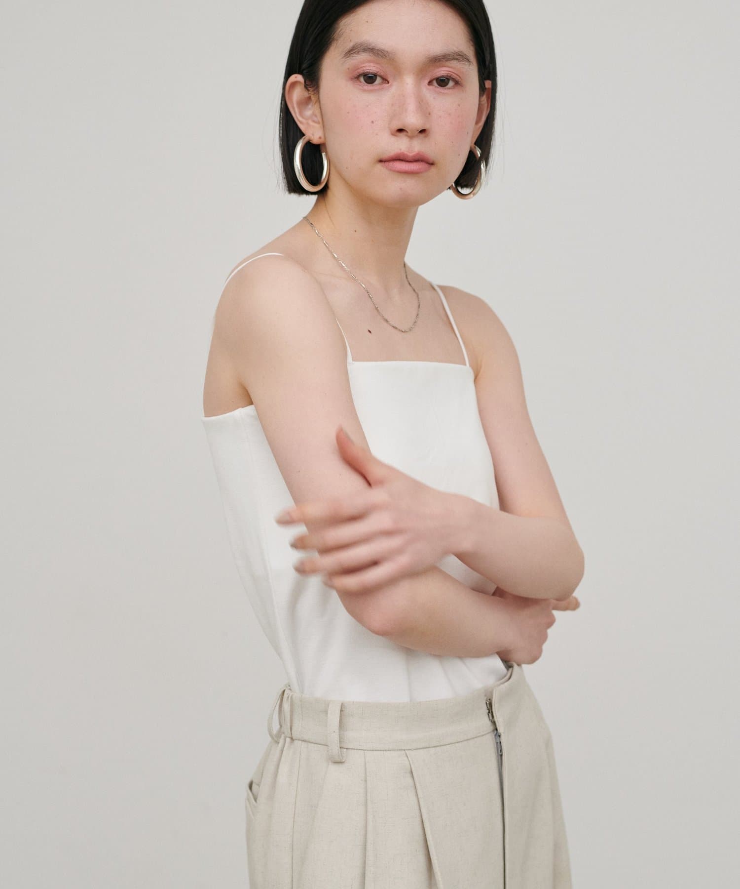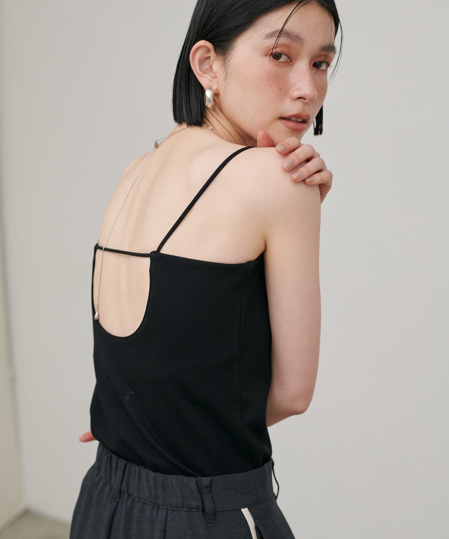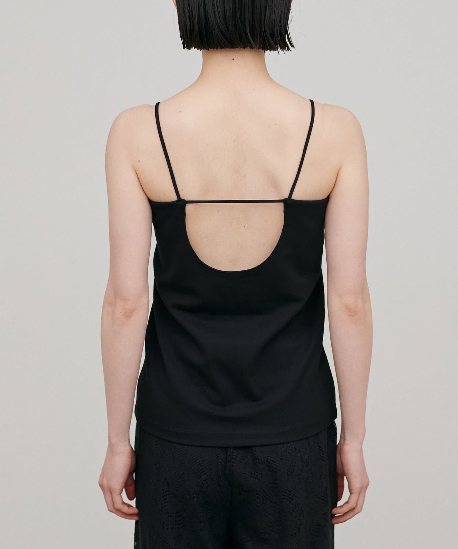 バックスタイルに抜け感をプラスしたオープンバックデザインのキャミソール。
