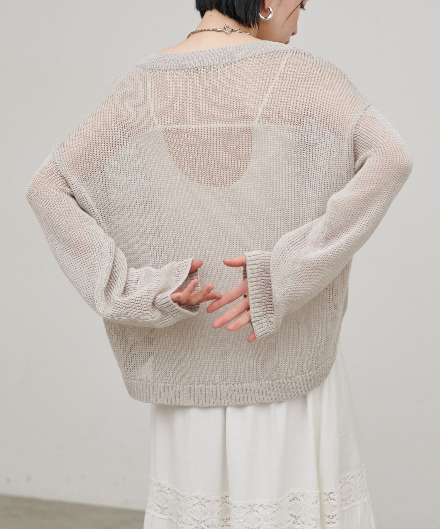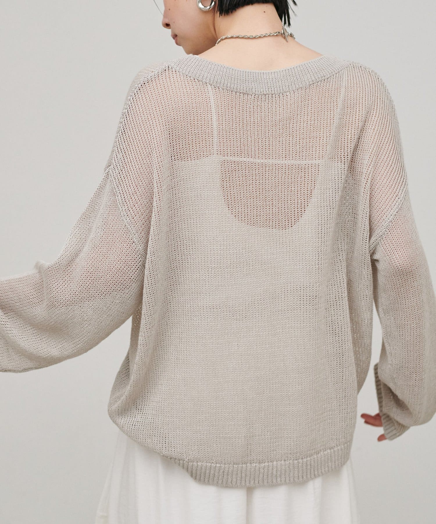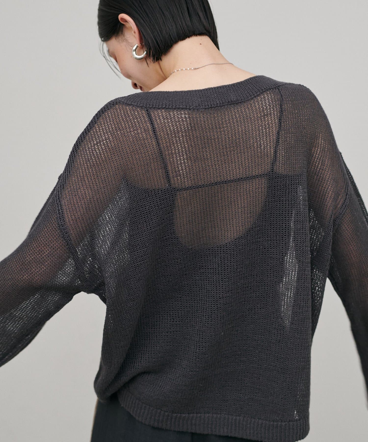バックデザインを活かして、羽織りやシアートップスを軽く重ねる着こなしも◎。