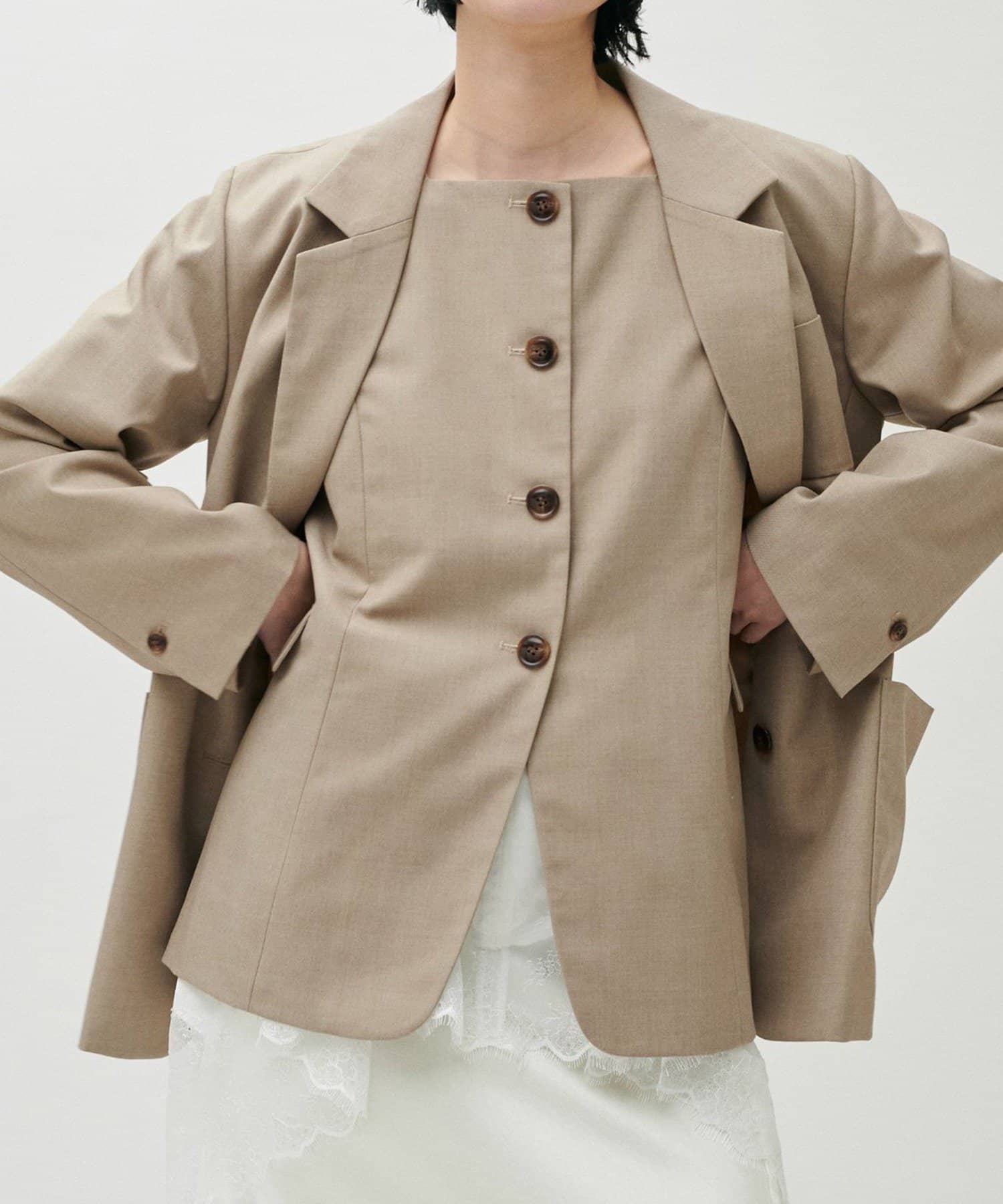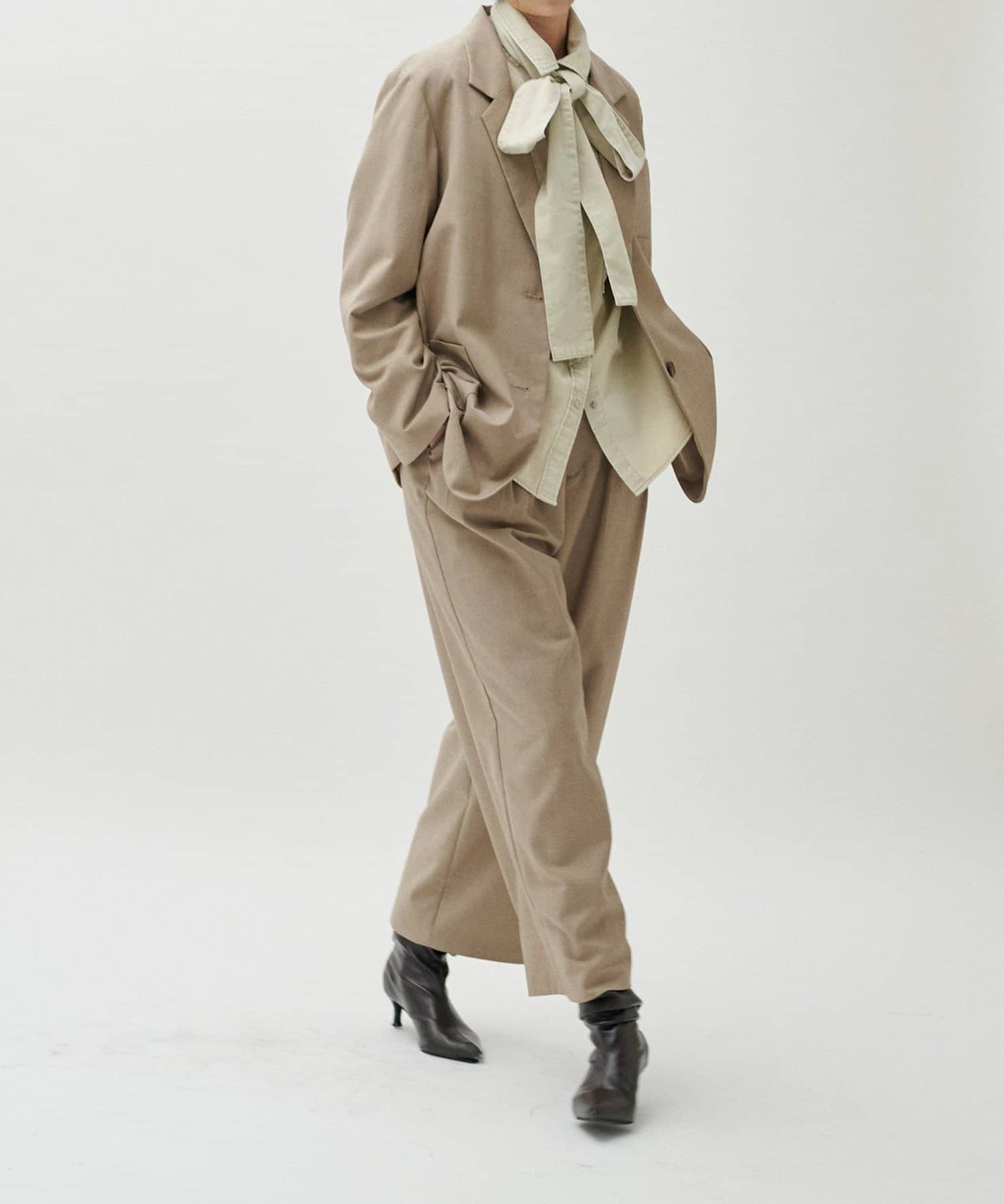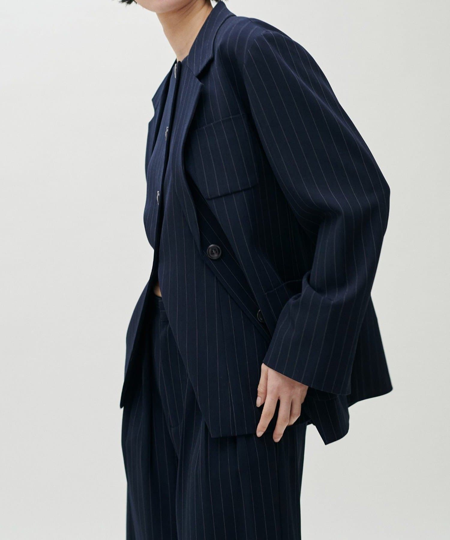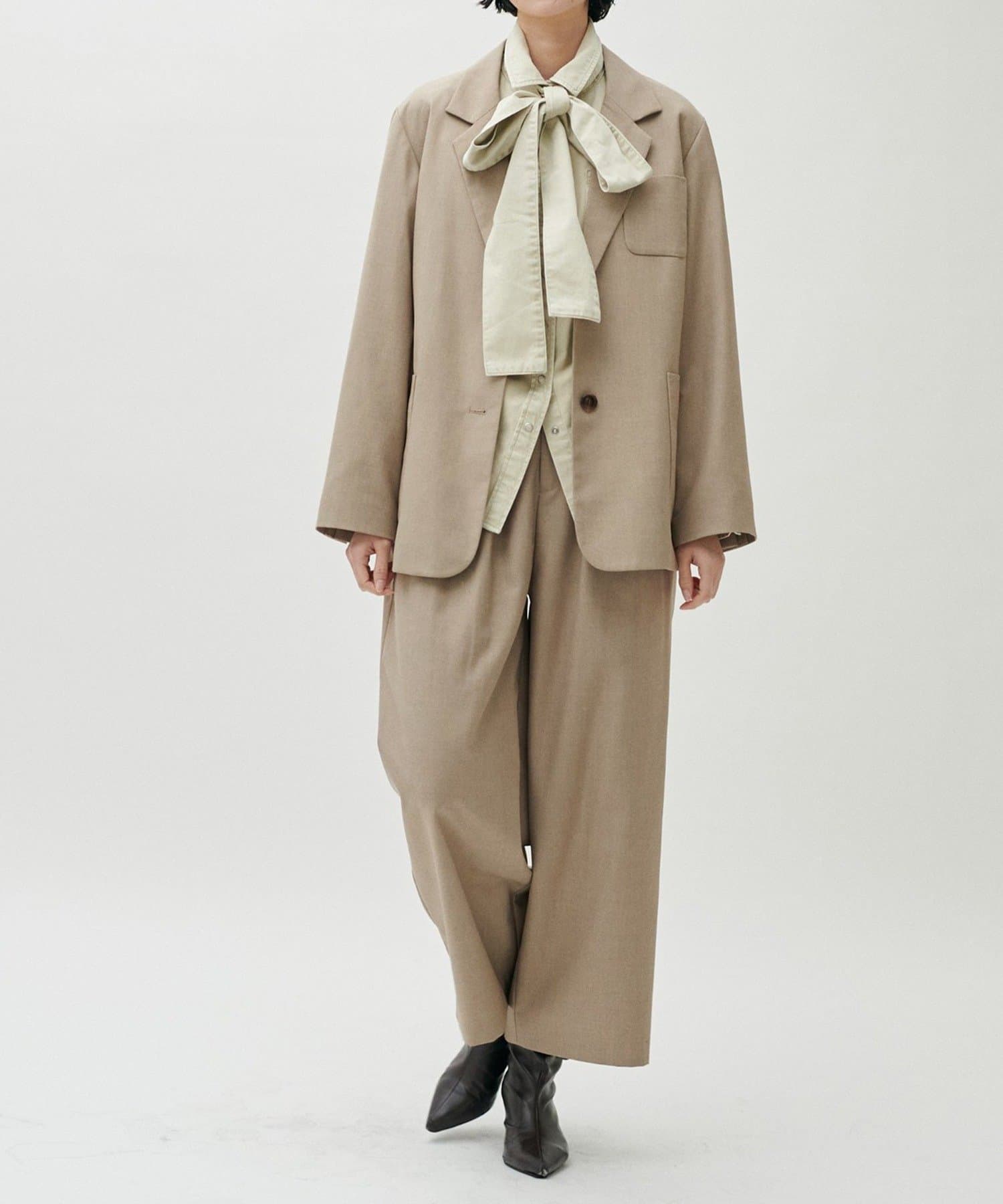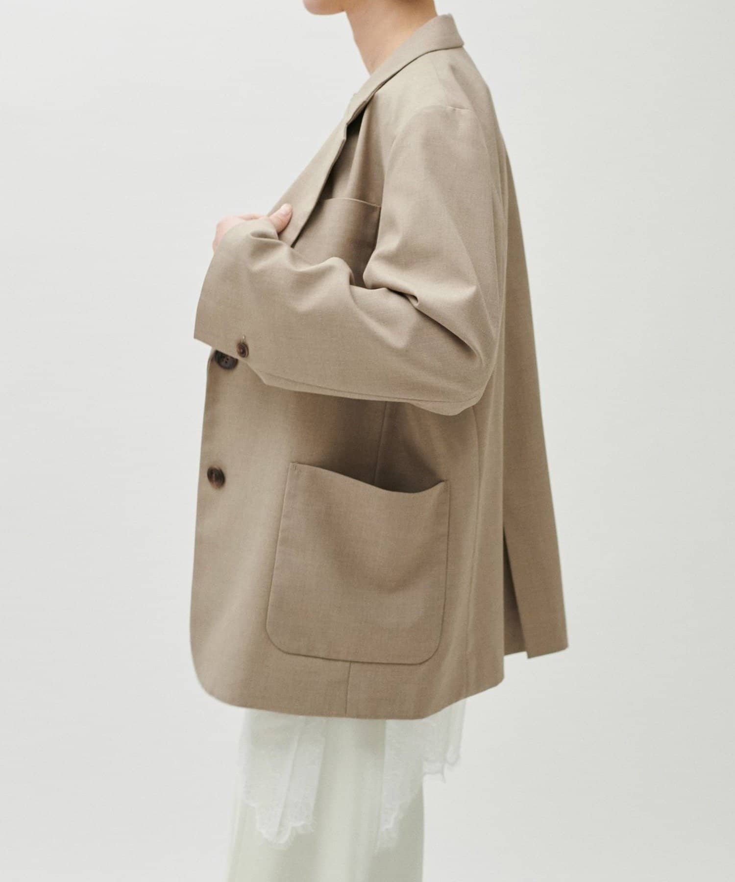 同素材のパンツやジレと合わせたセットアップ対応も可能で、シーンに応じた着こなしが楽しめる一着です。