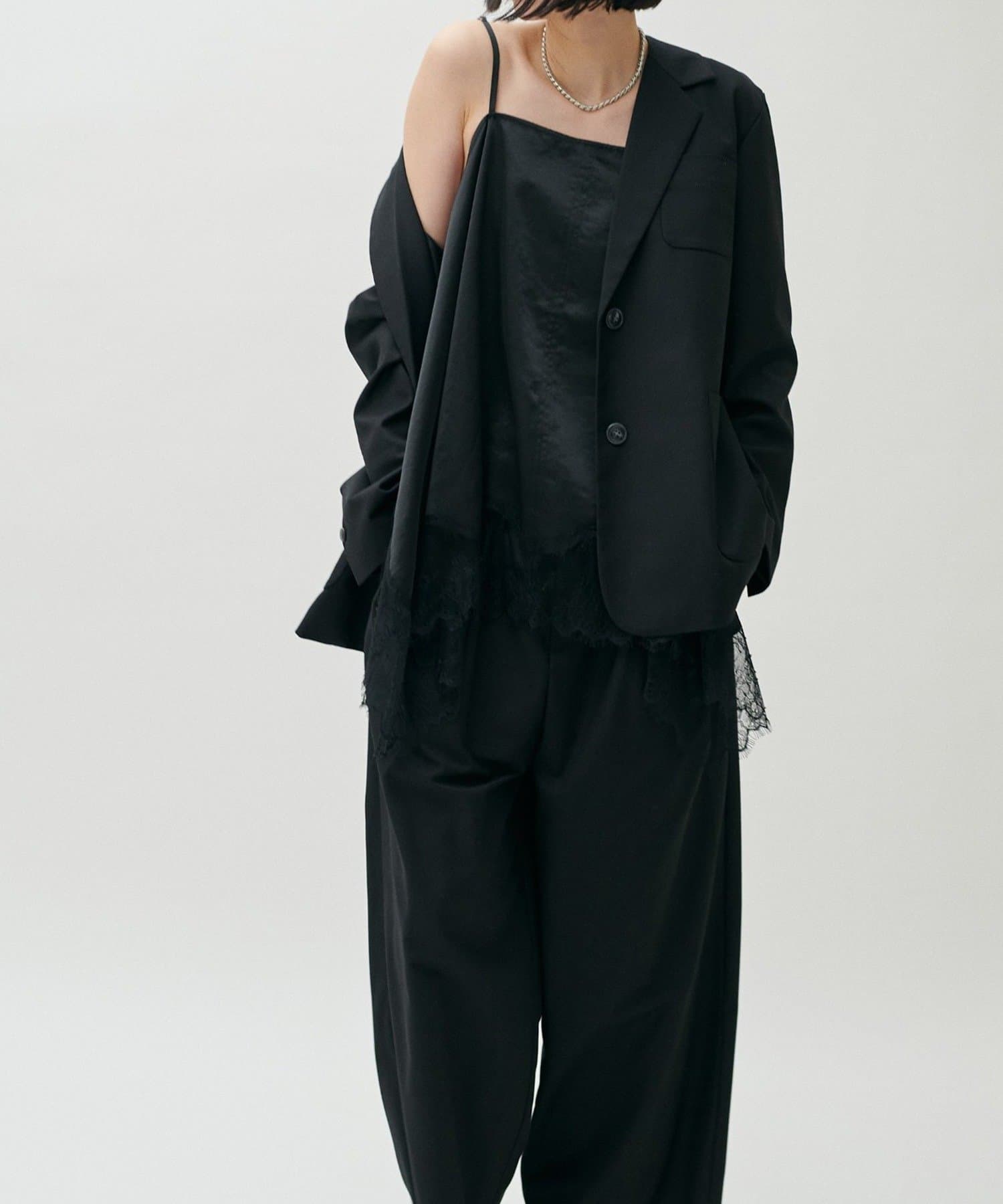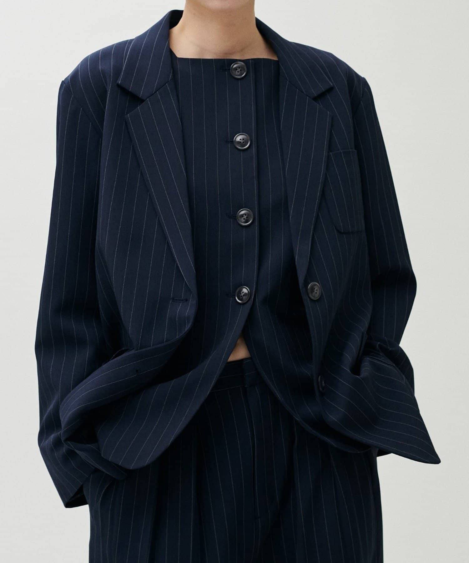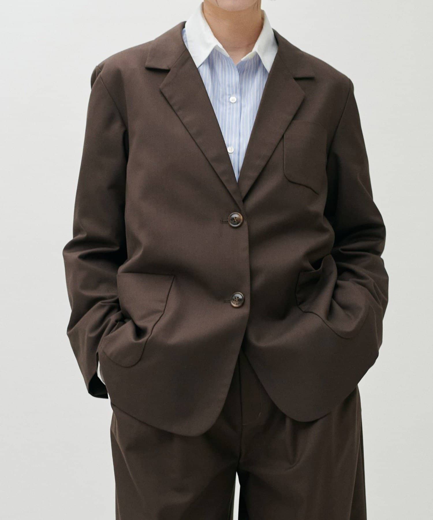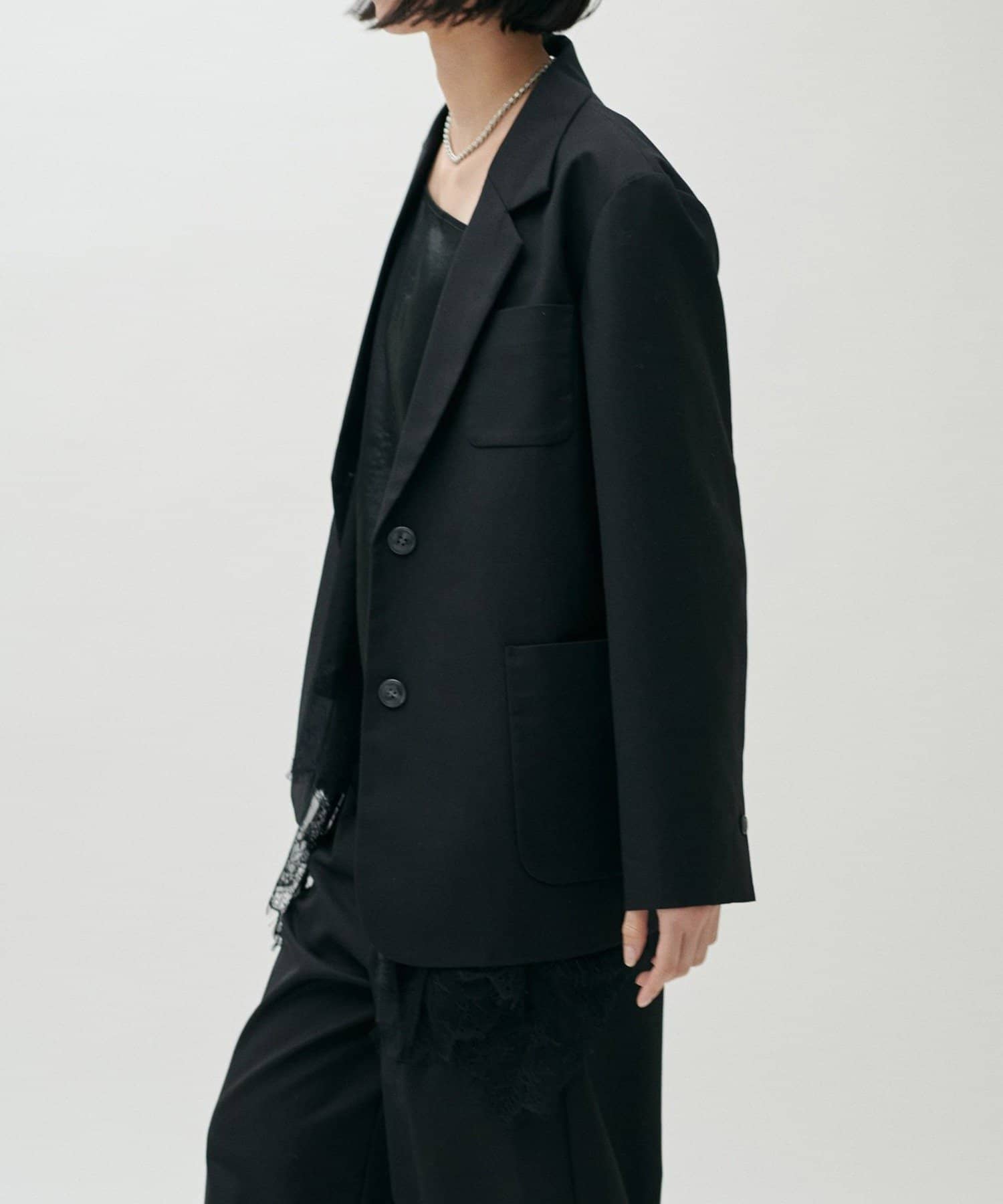 同素材のパンツやジレと合わせたセットアップ対応も可能で、シーンに応じた着こなしが楽しめる一着です。