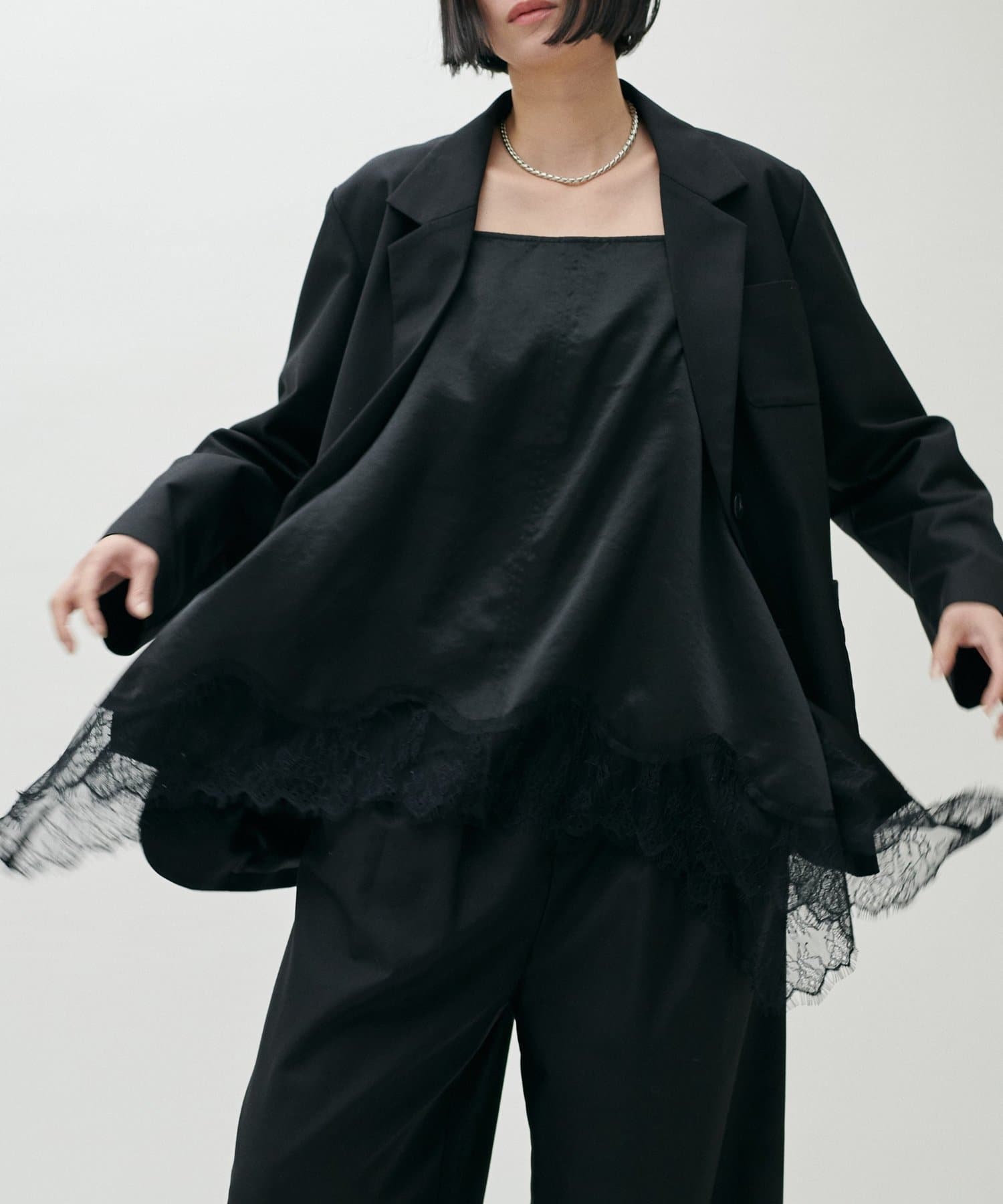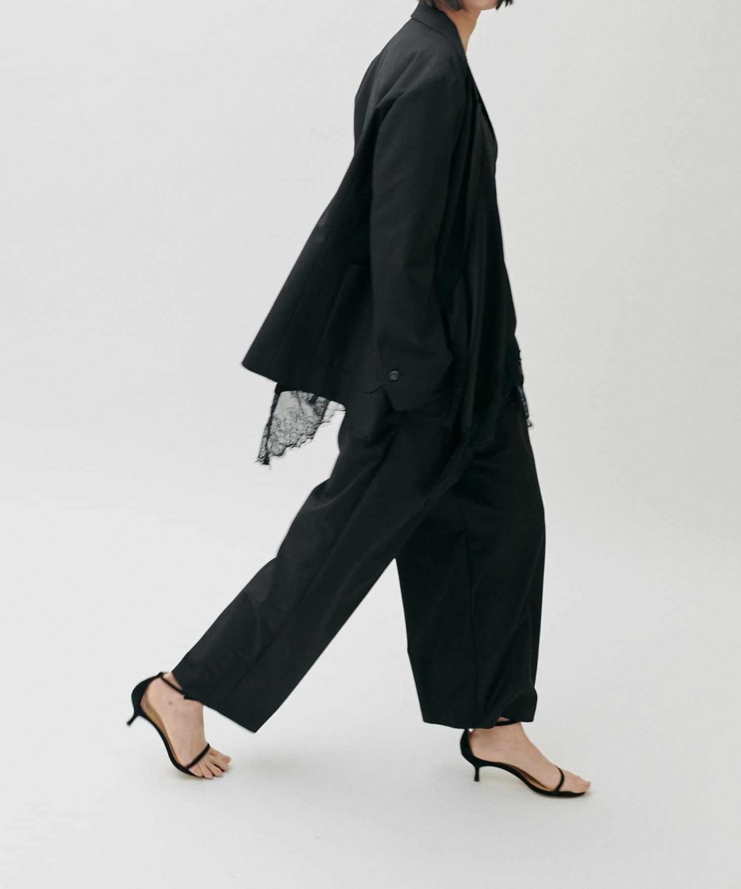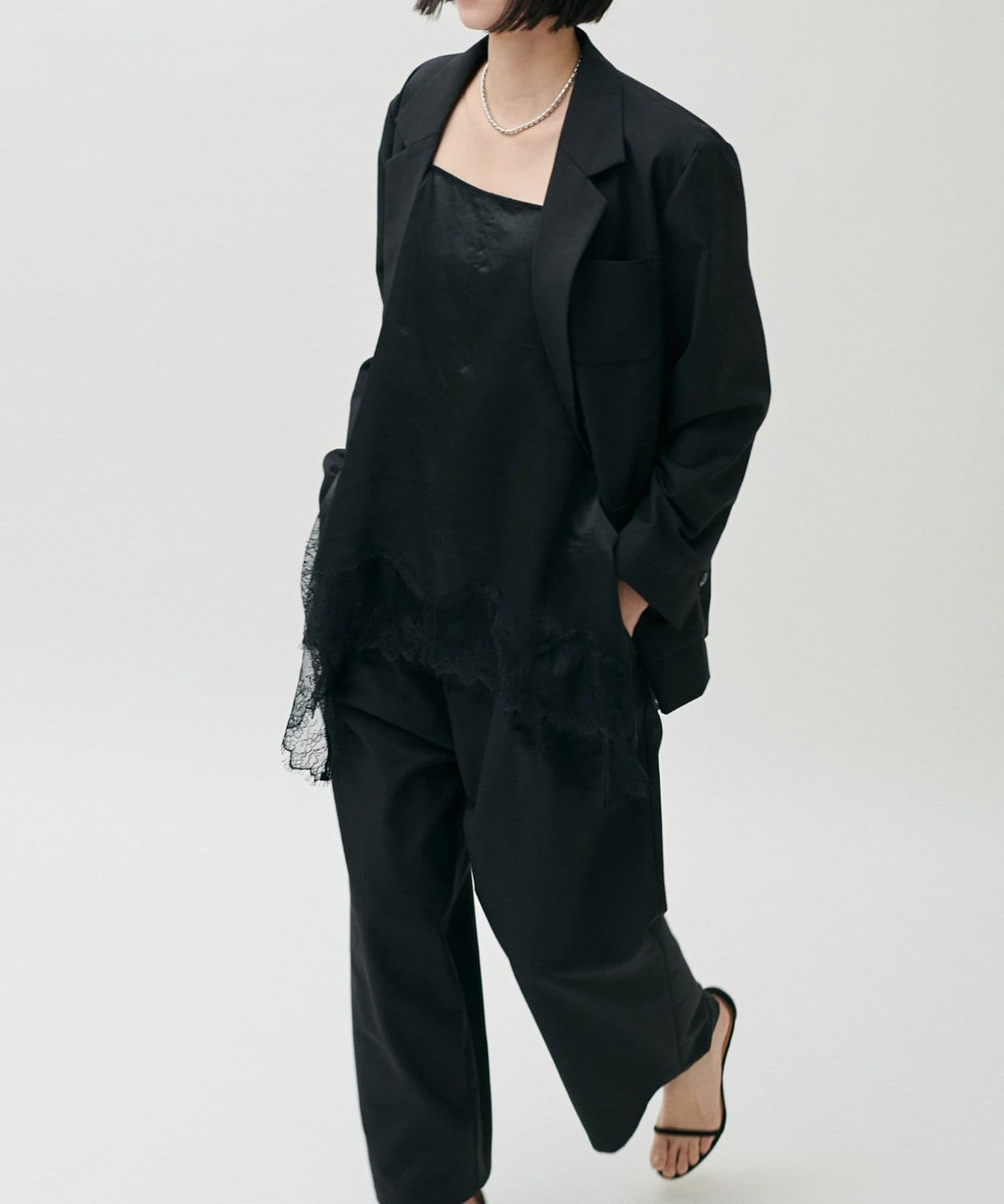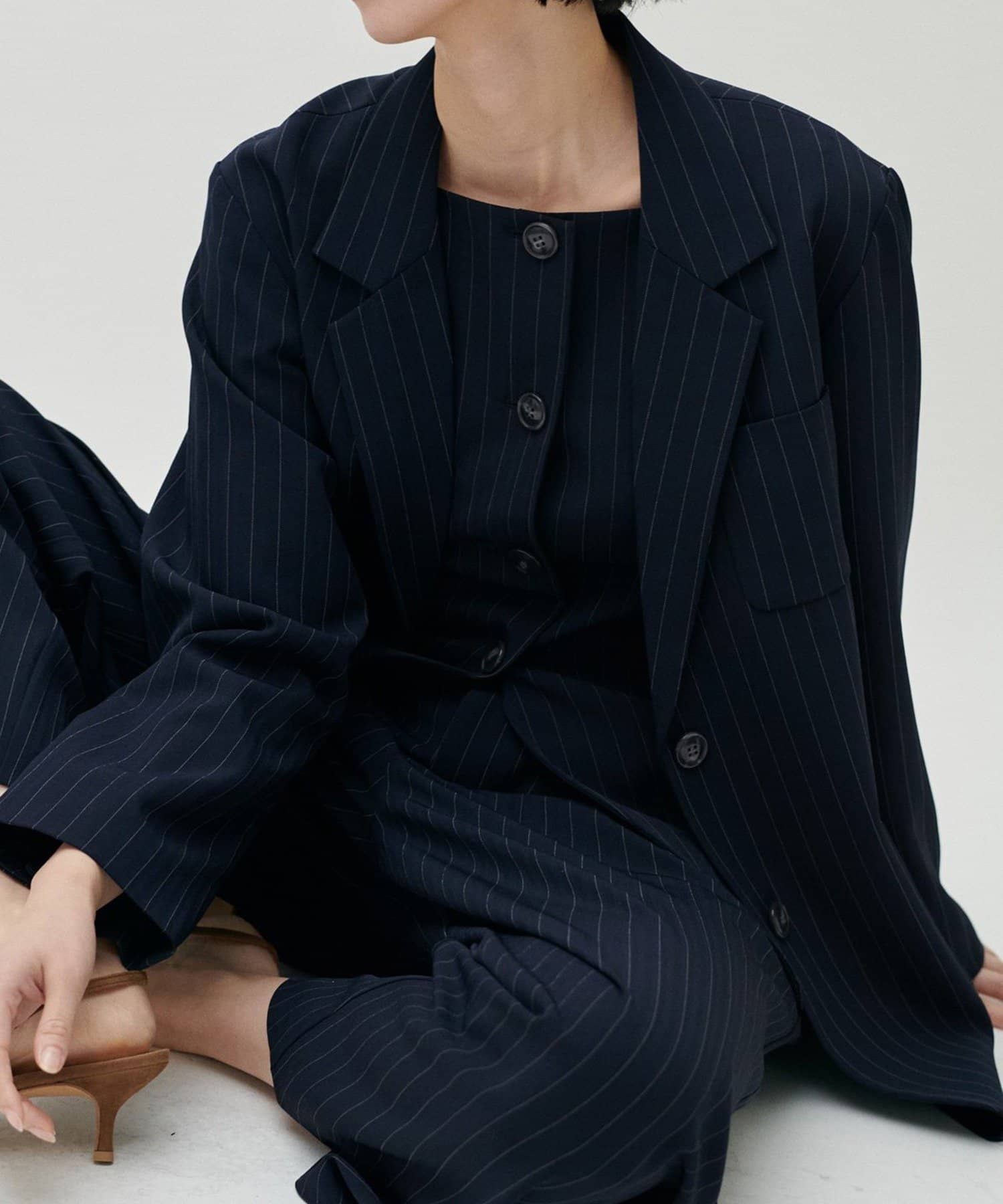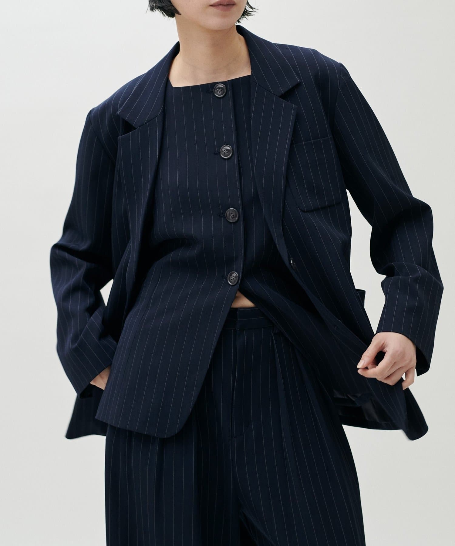 同素材のパンツやジレと合わせたセットアップ対応も可能で、シーンに応じた着こなしが楽しめる一着です。