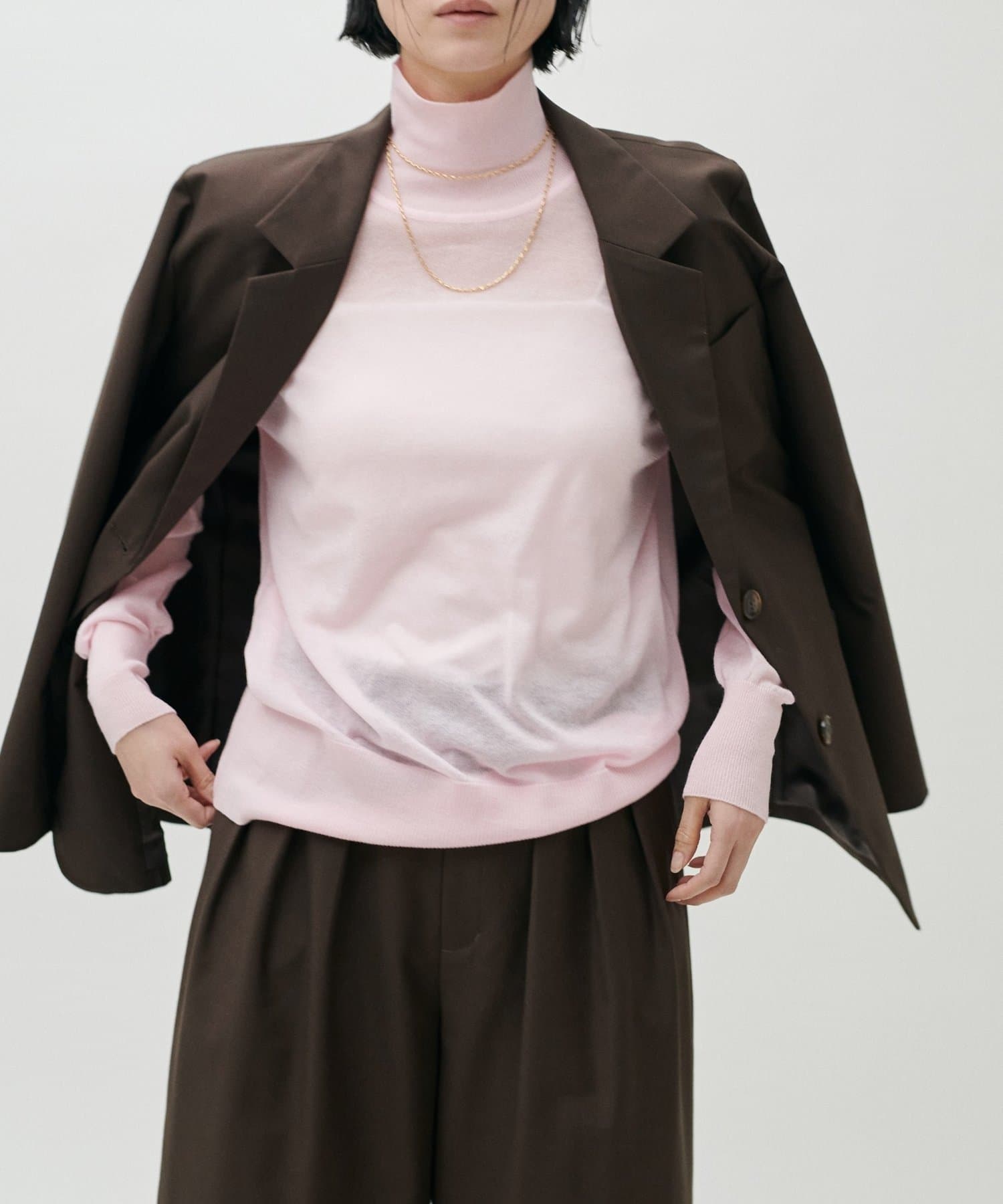 インナー次第でオン・オフ問わず活躍し、幅広いシーンに対応します。