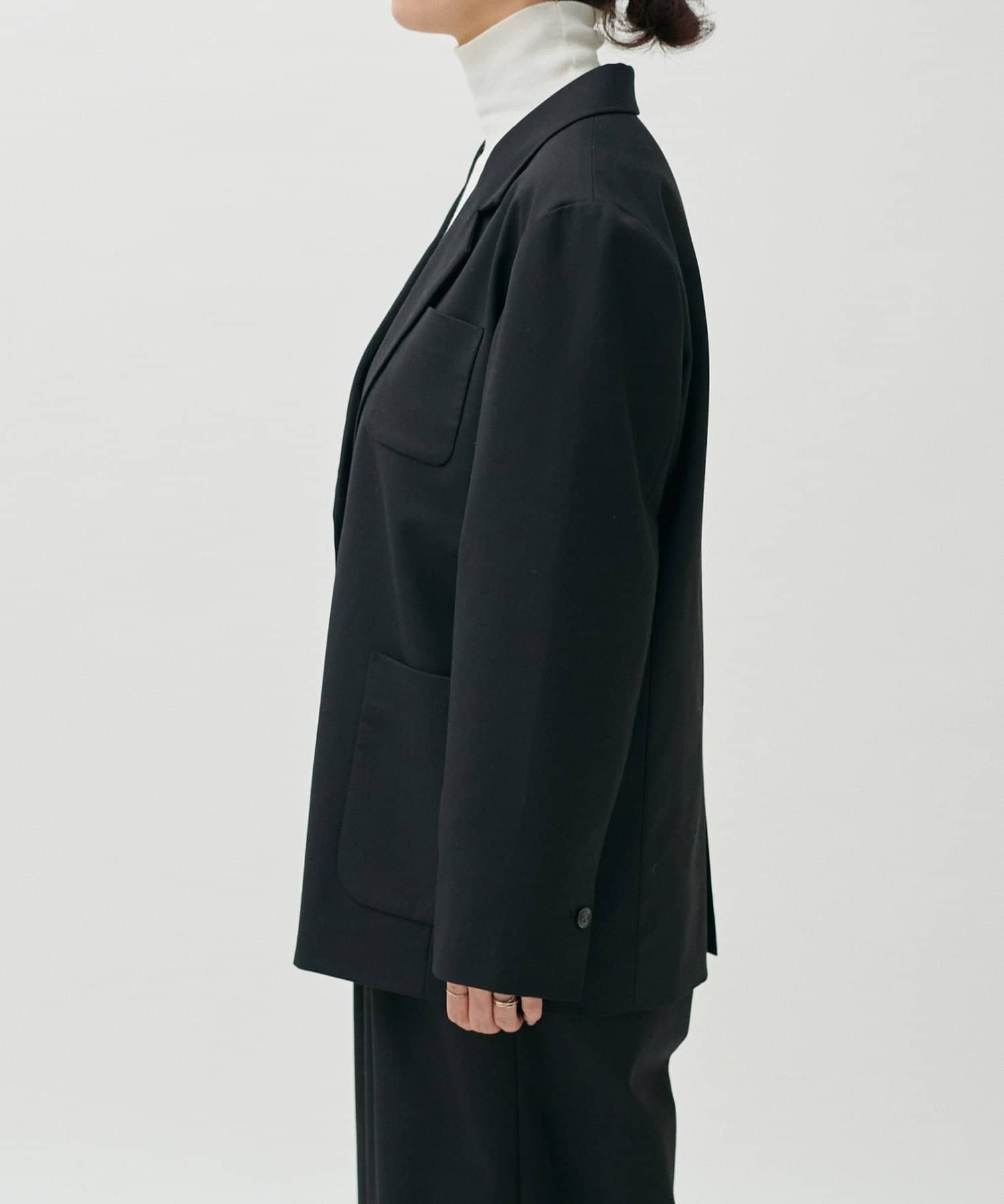 フロントに配したアウトポケットがさりげないアクセントとなり、きちんと感の中に抜けを与えてくれます。