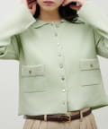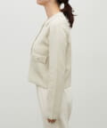 ショート丈に仕立てることで、バランスが取りやすく、スタイルアップ効果も期待できる一枚です。