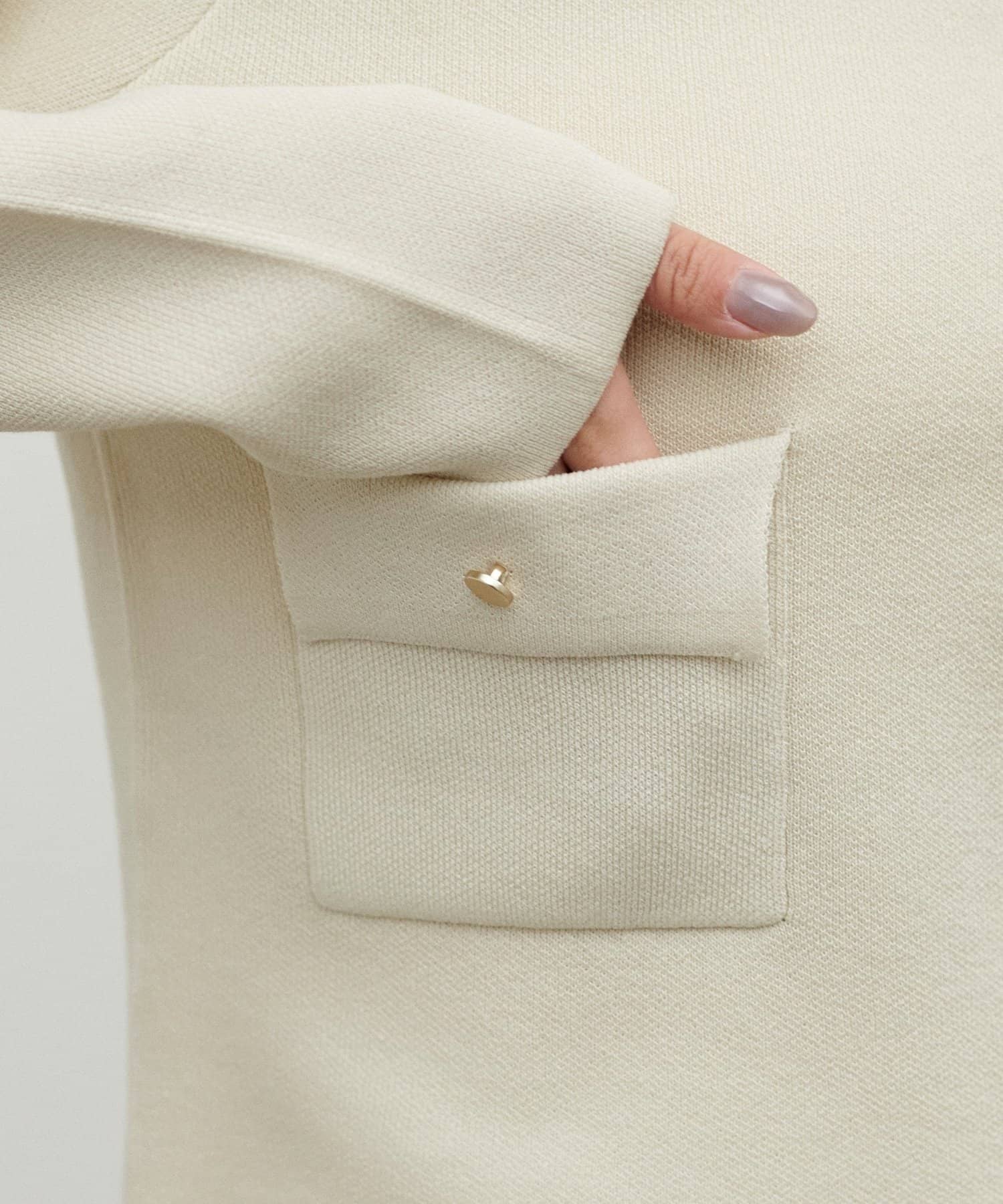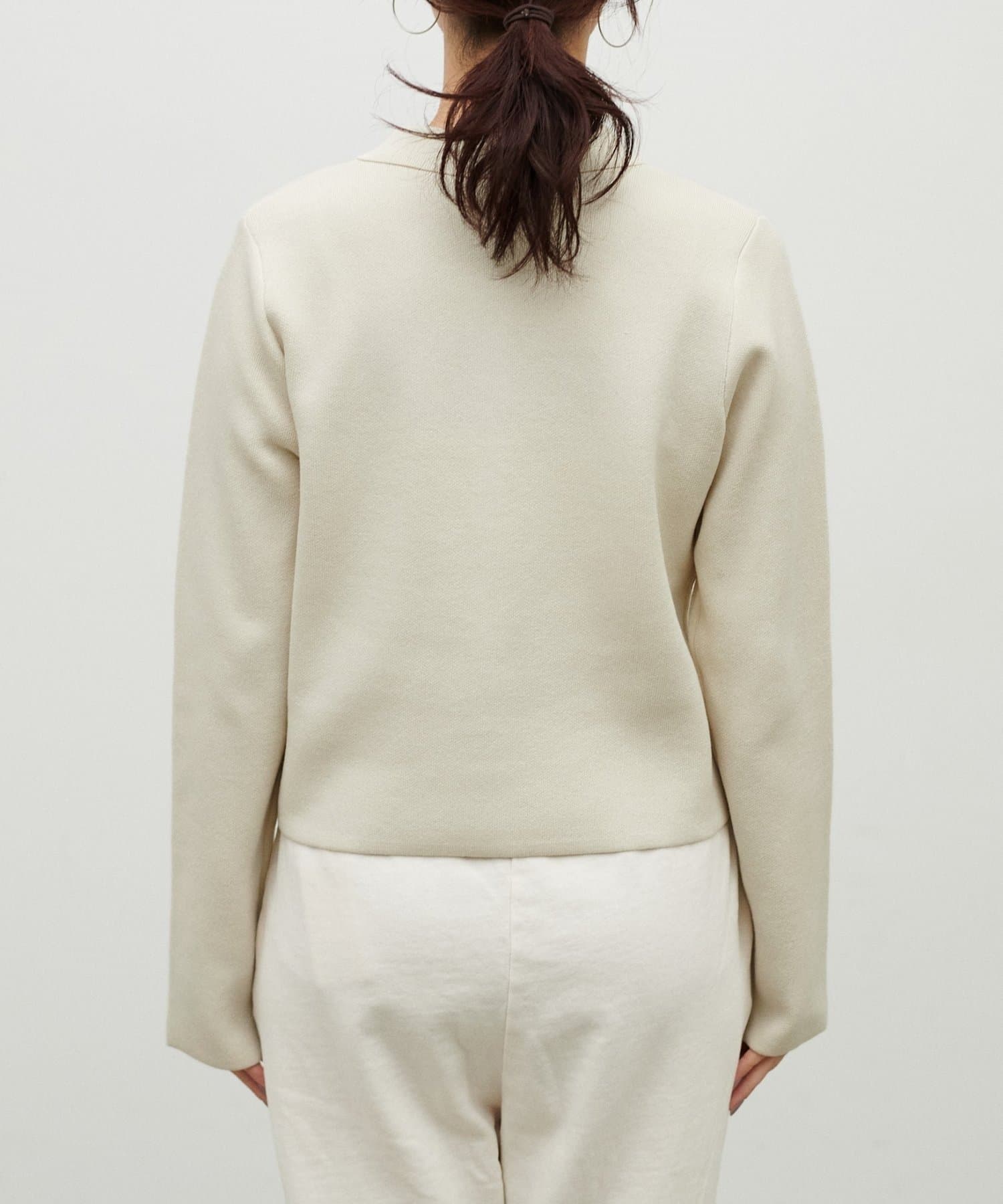 程よい厚みのニット素材で、ジャケットのようなきちんと感がありながらも、柔らかな着心地を実現。