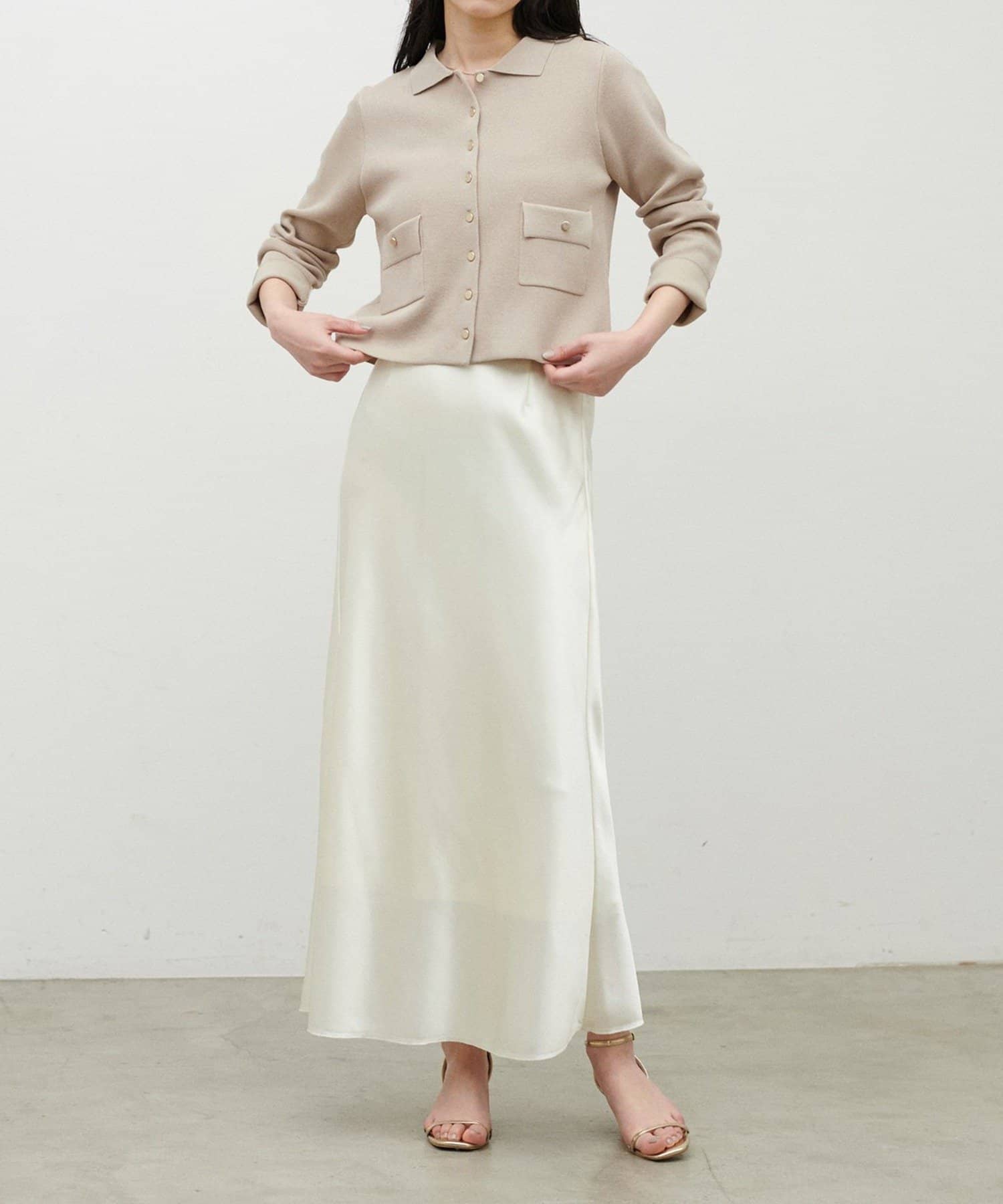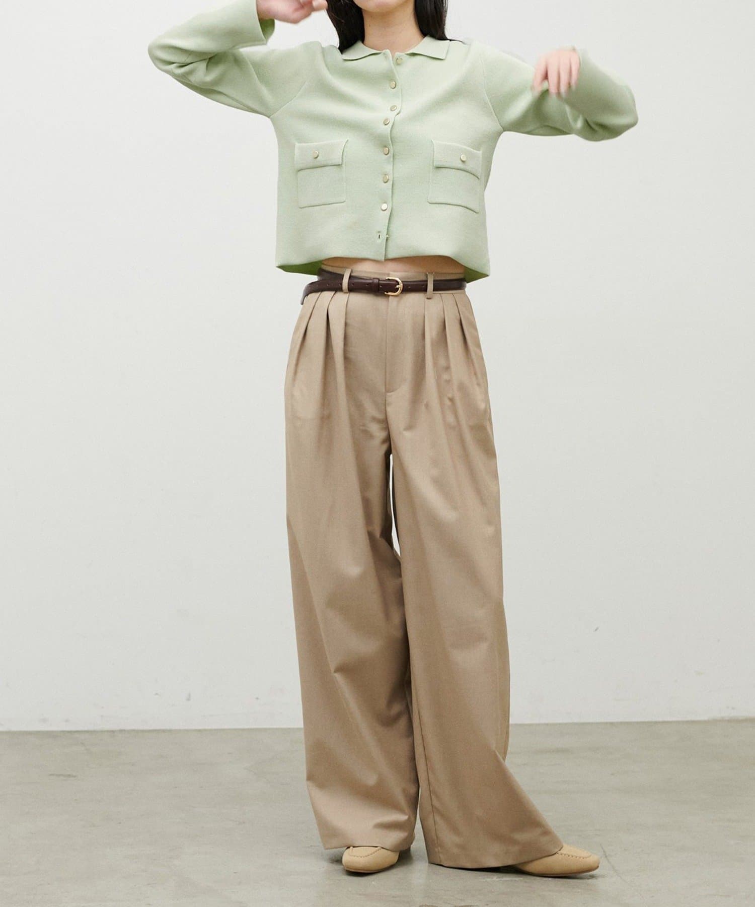 ハイウエストのパンツやIラインスカートと合わせれば、すっきりとした大人のバランスに。