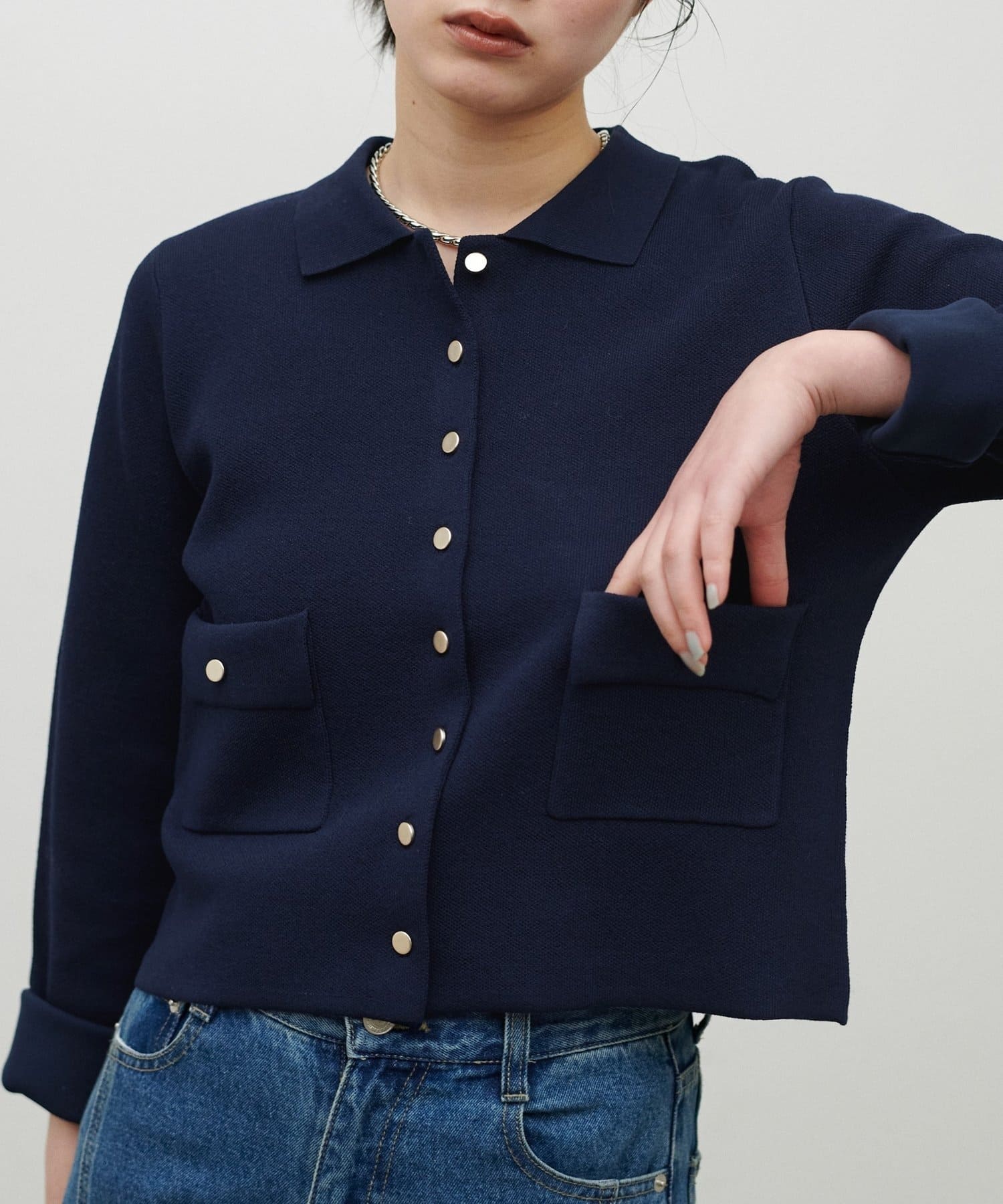 衿付ニットジャケット