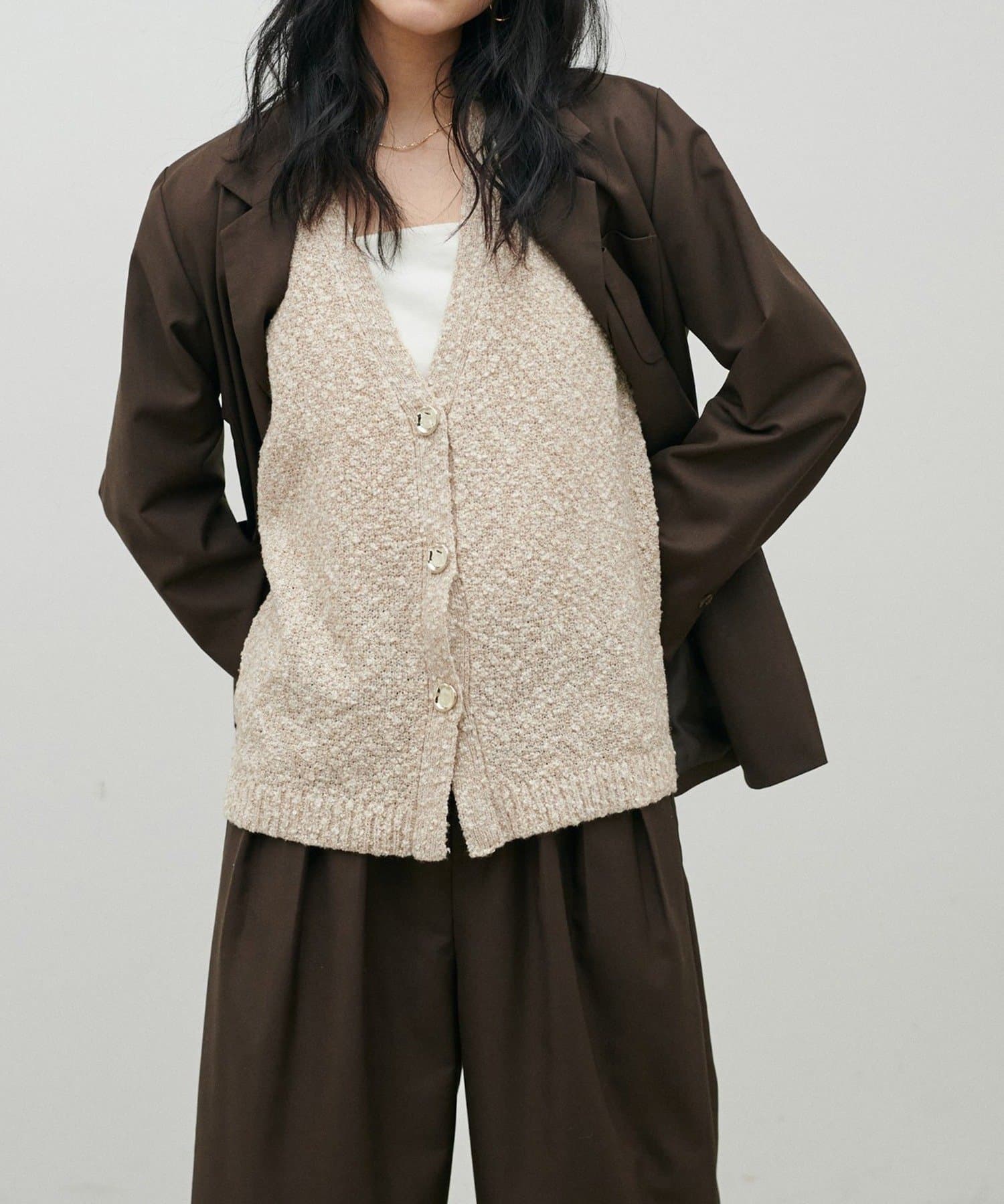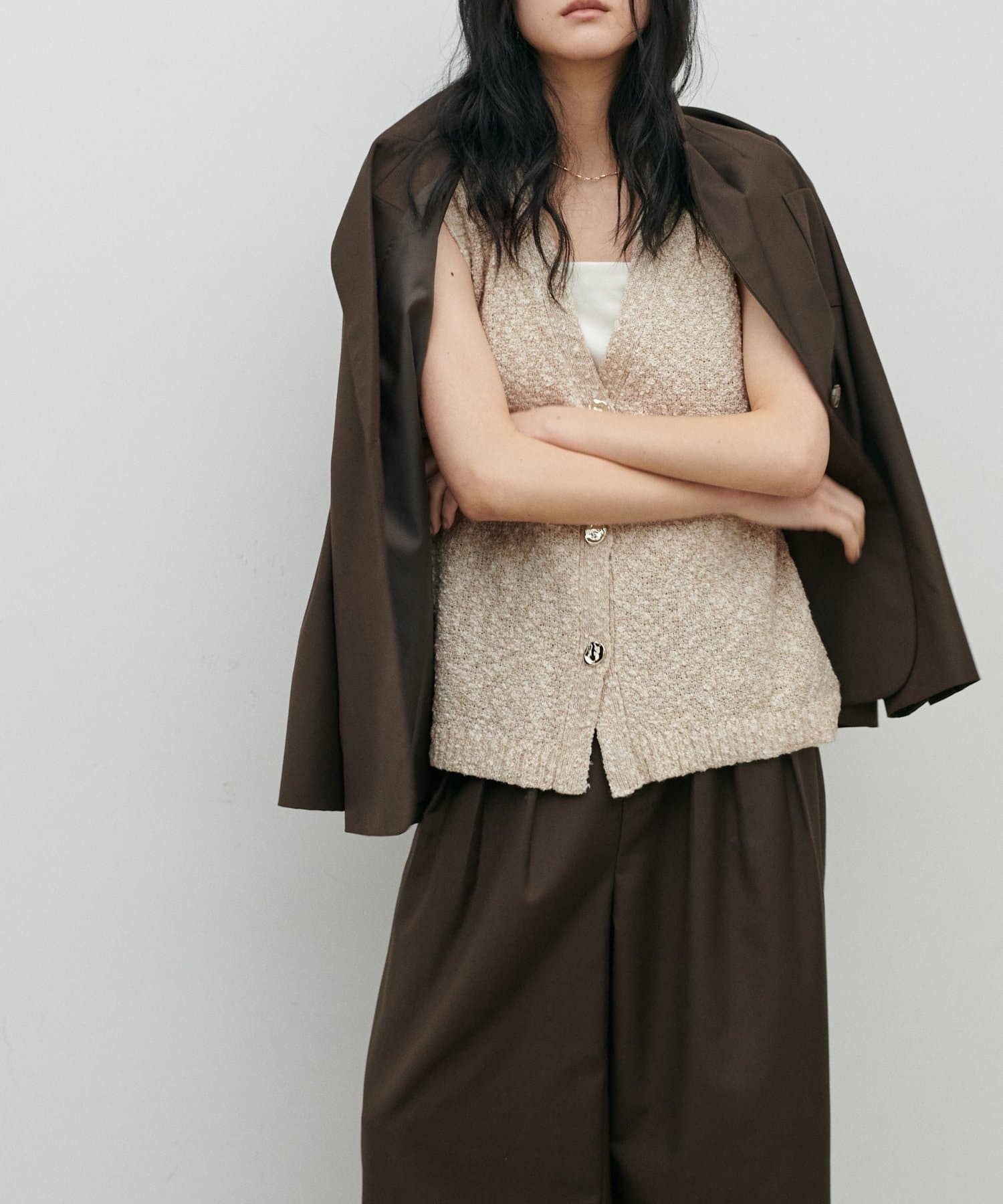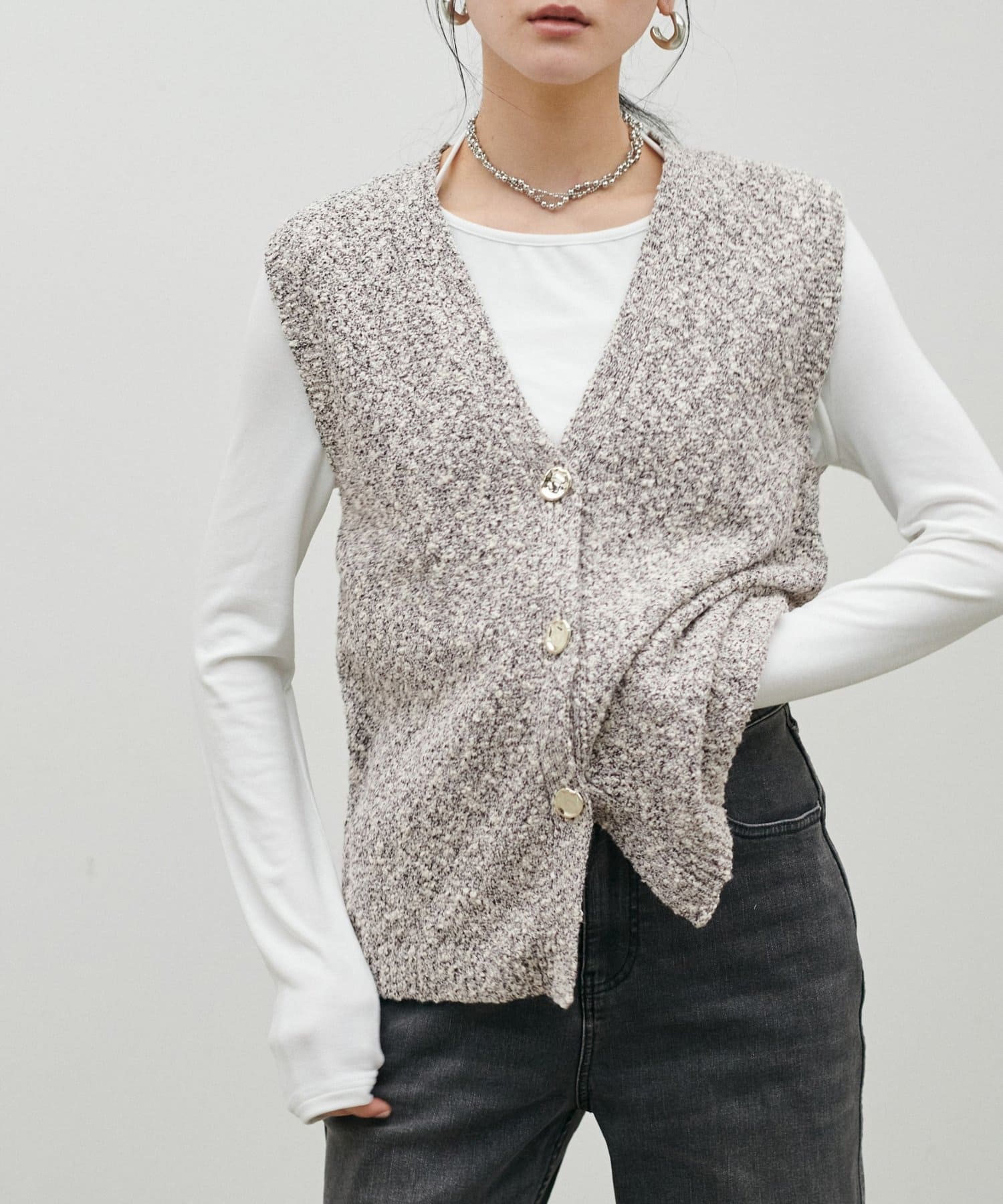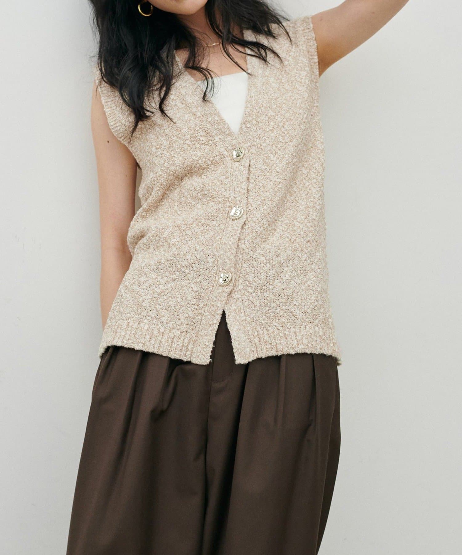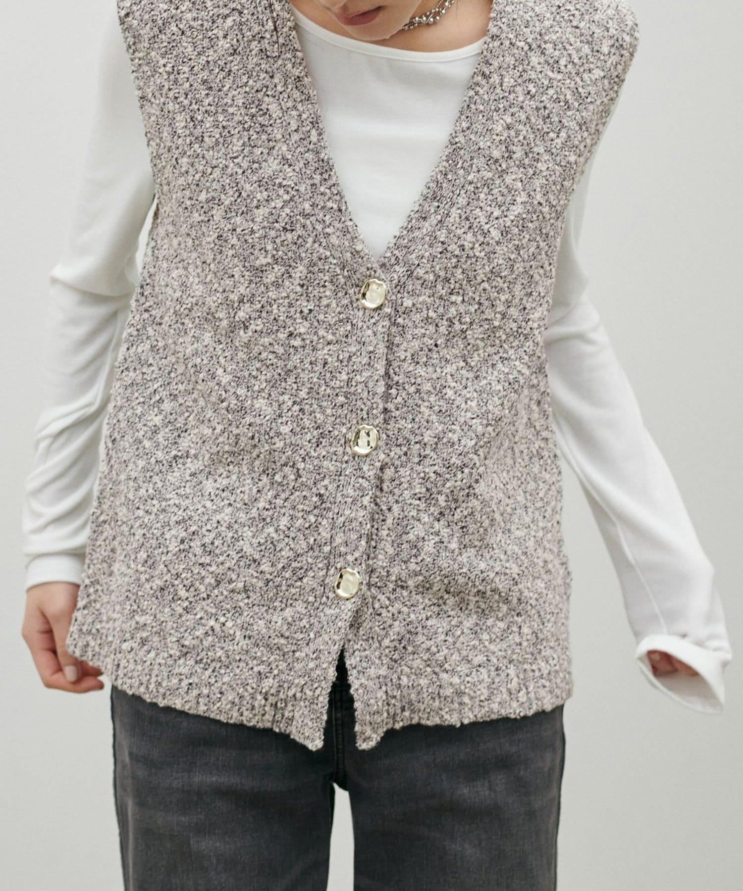 スラブ糸の表情のある素材感とMIX糸が特徴的なベスト。