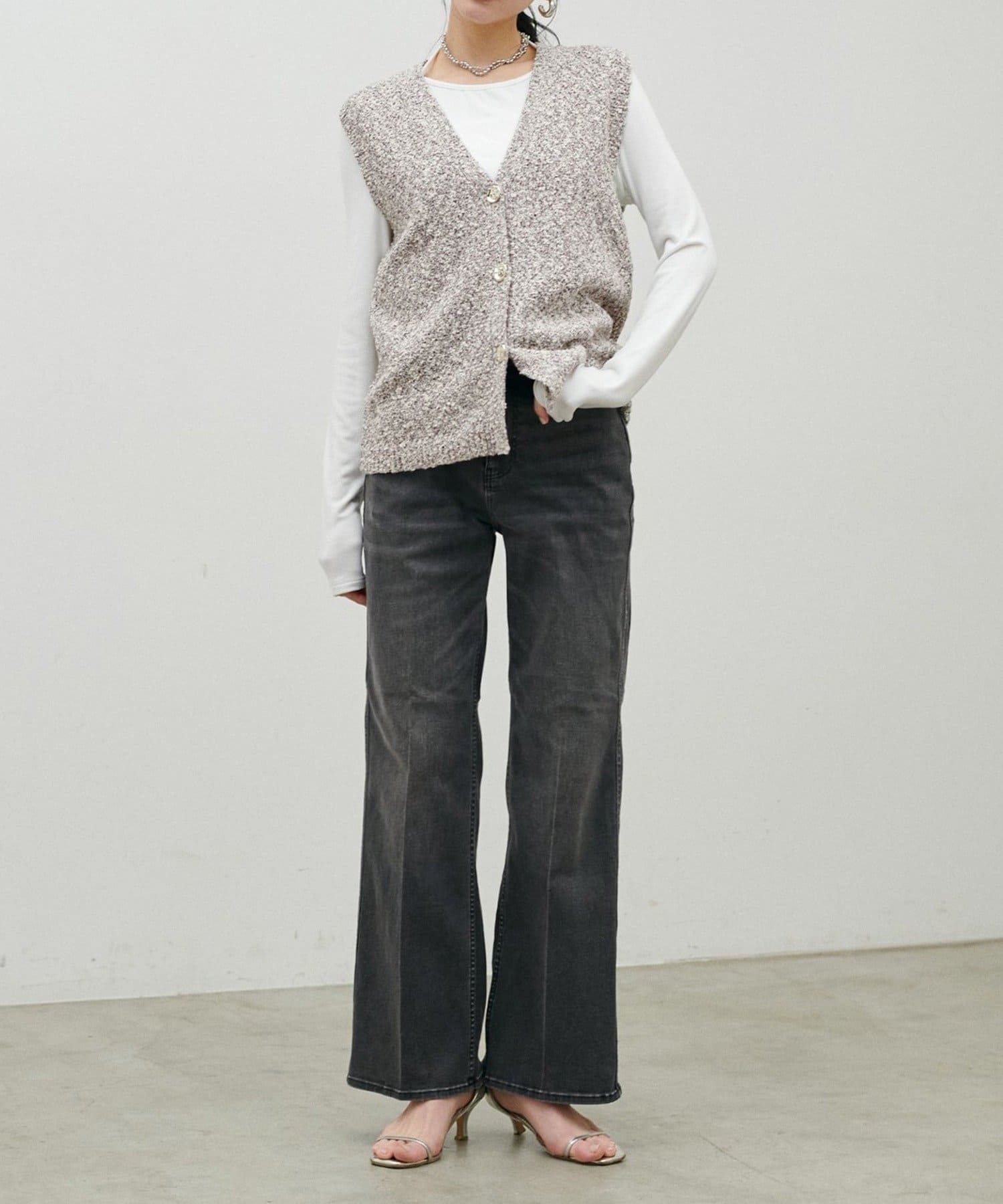 • NICE CLAUP / OLIVE des OLIVE OUTLET(ナイスクラップ  / オリーブ デ オリーブ アウトレット) 【LARUTA】ツイード風MIXスラブベスト