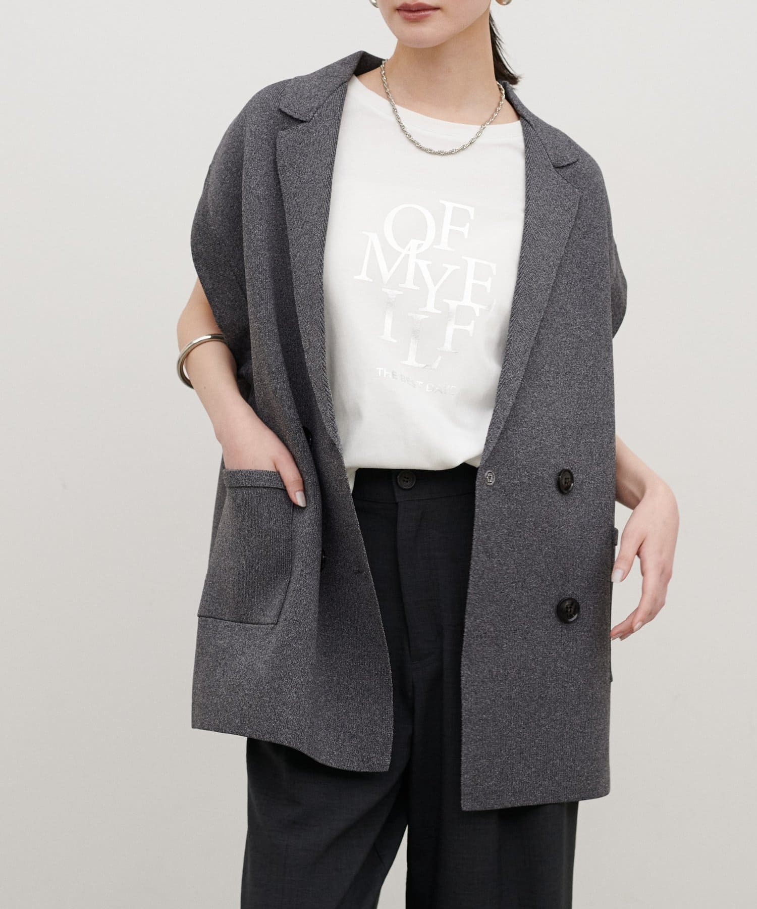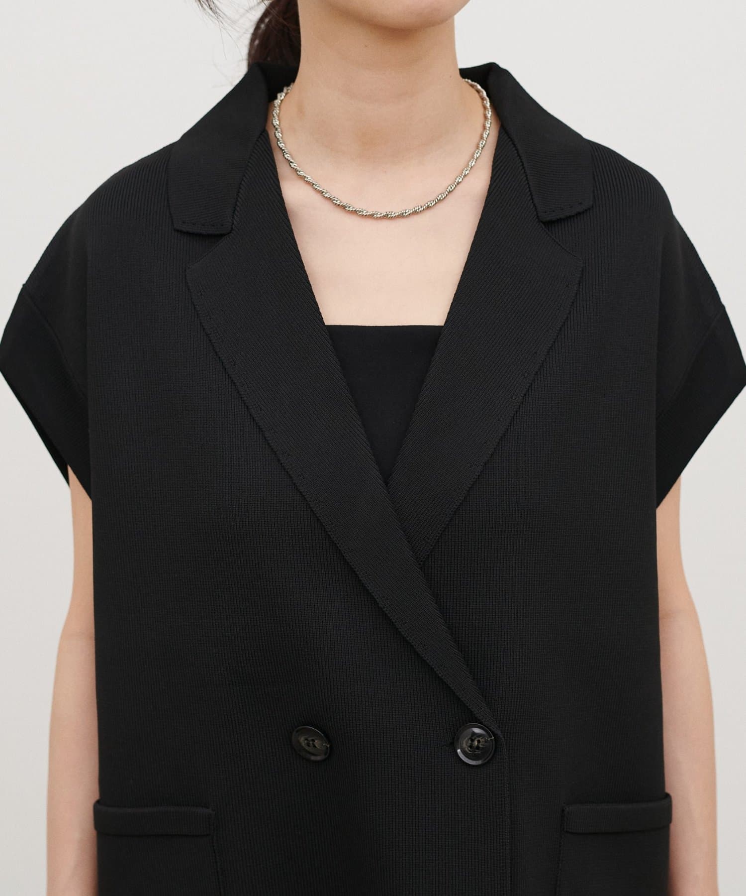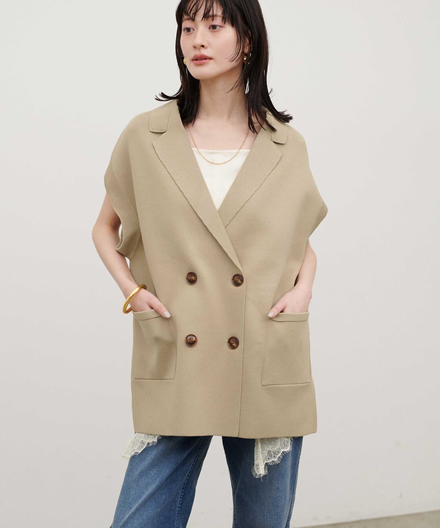 テーラードデザインを取り入れた、きれいめな印象のニットベスト。