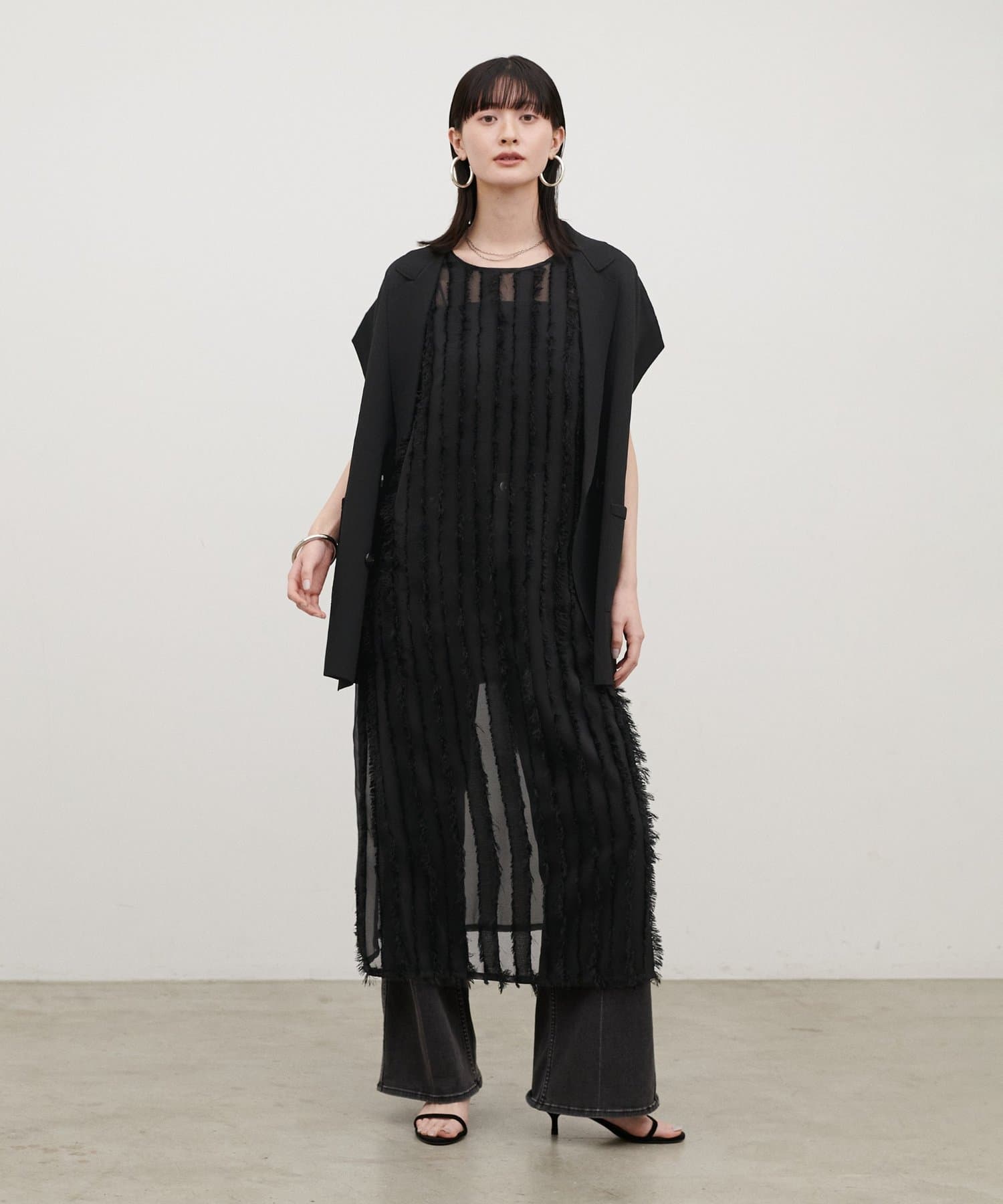 シャツやカットソー、ワンピースの上に重ねるだけで、コーディネートに奥行きをプラス。