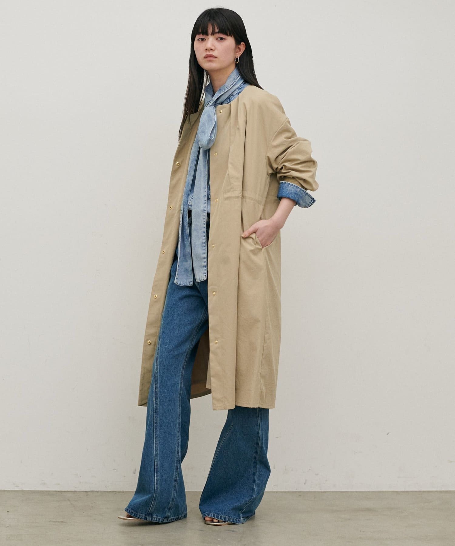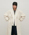 春らしいノーカラーコートが登場。