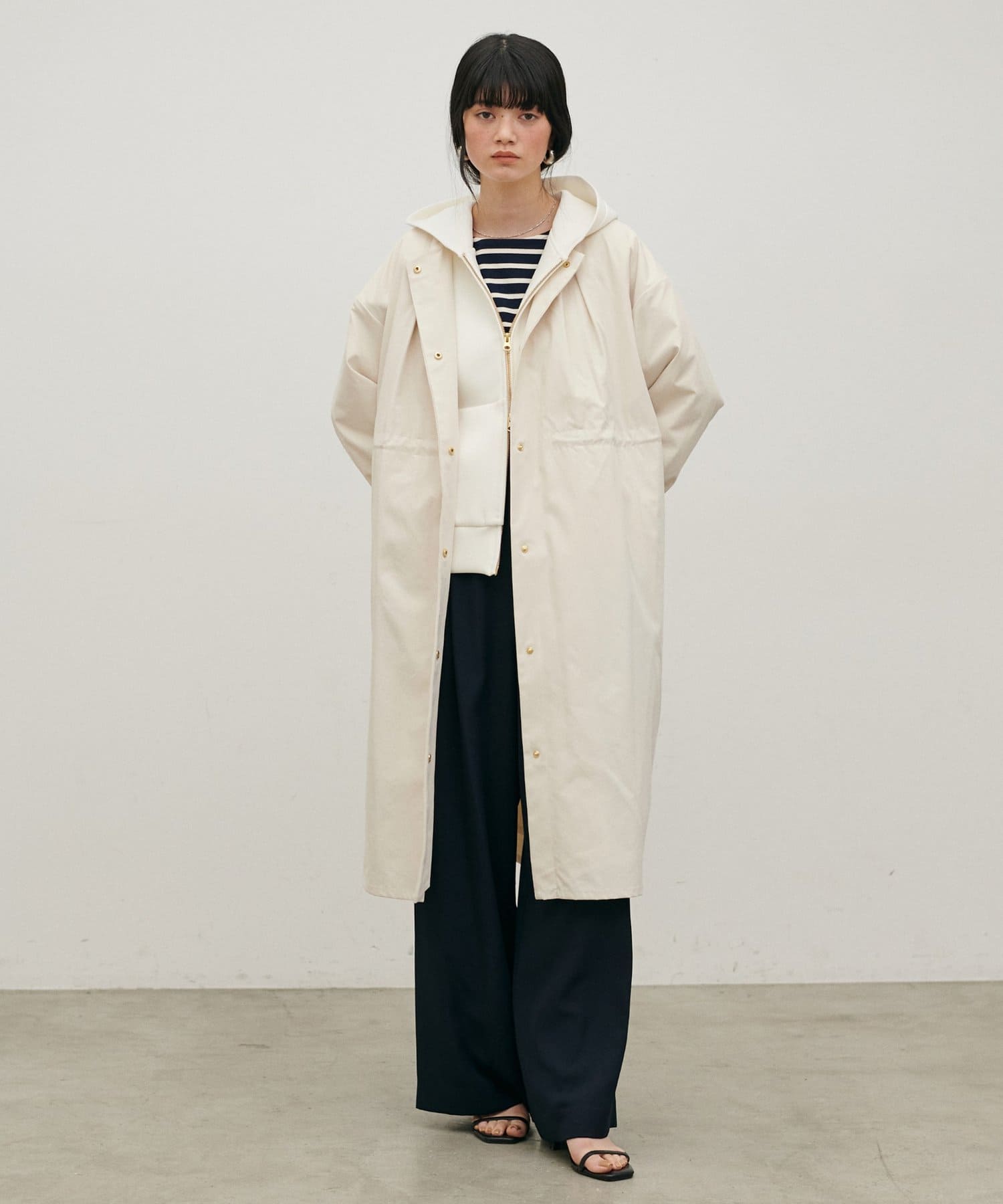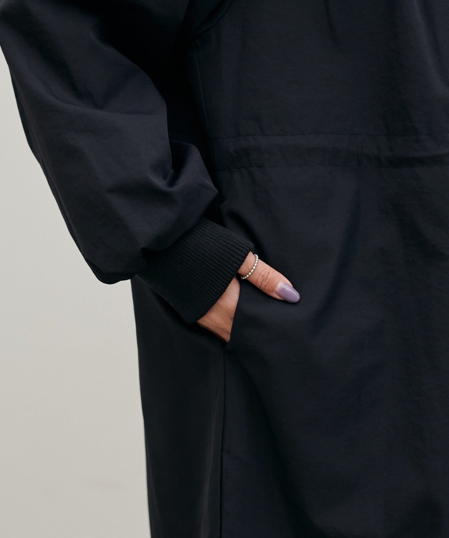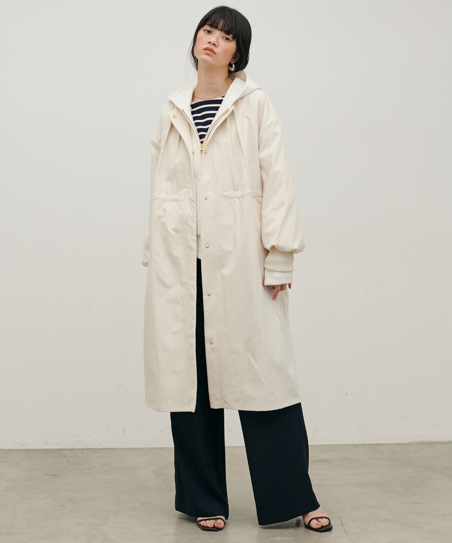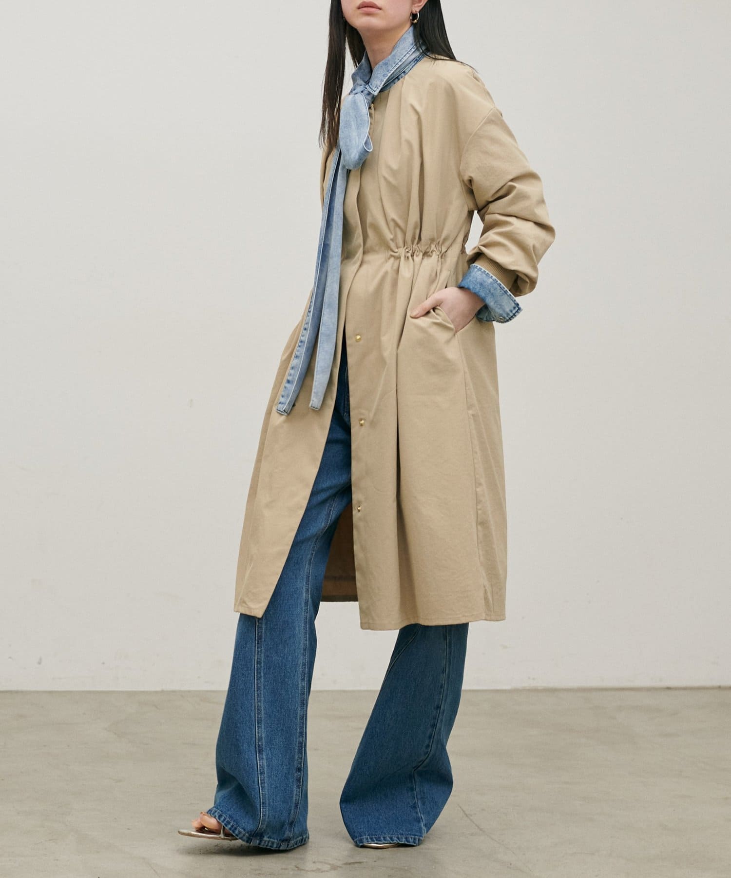 内側のドロストを調整すれば、ウエストマークが可能になり、
