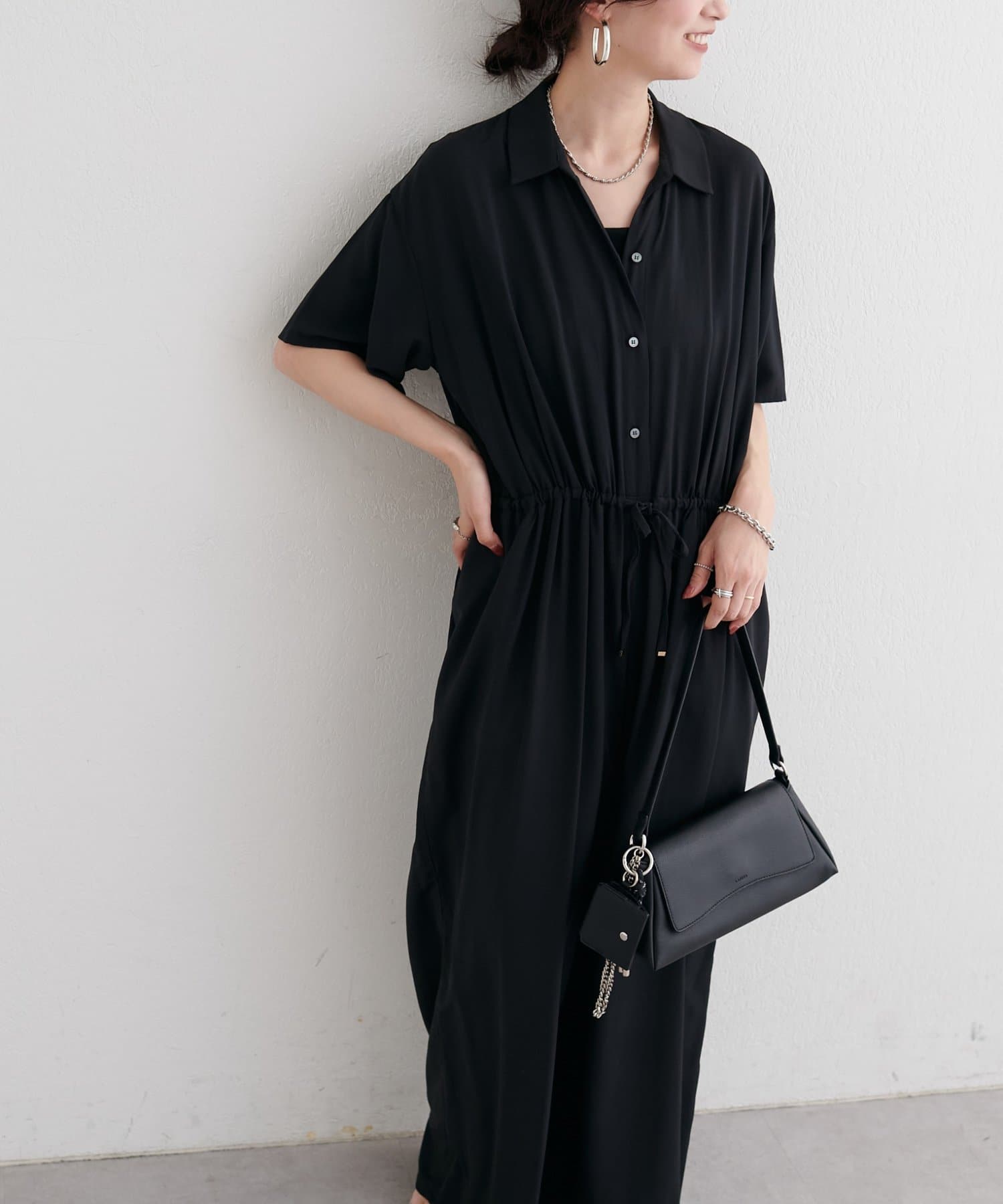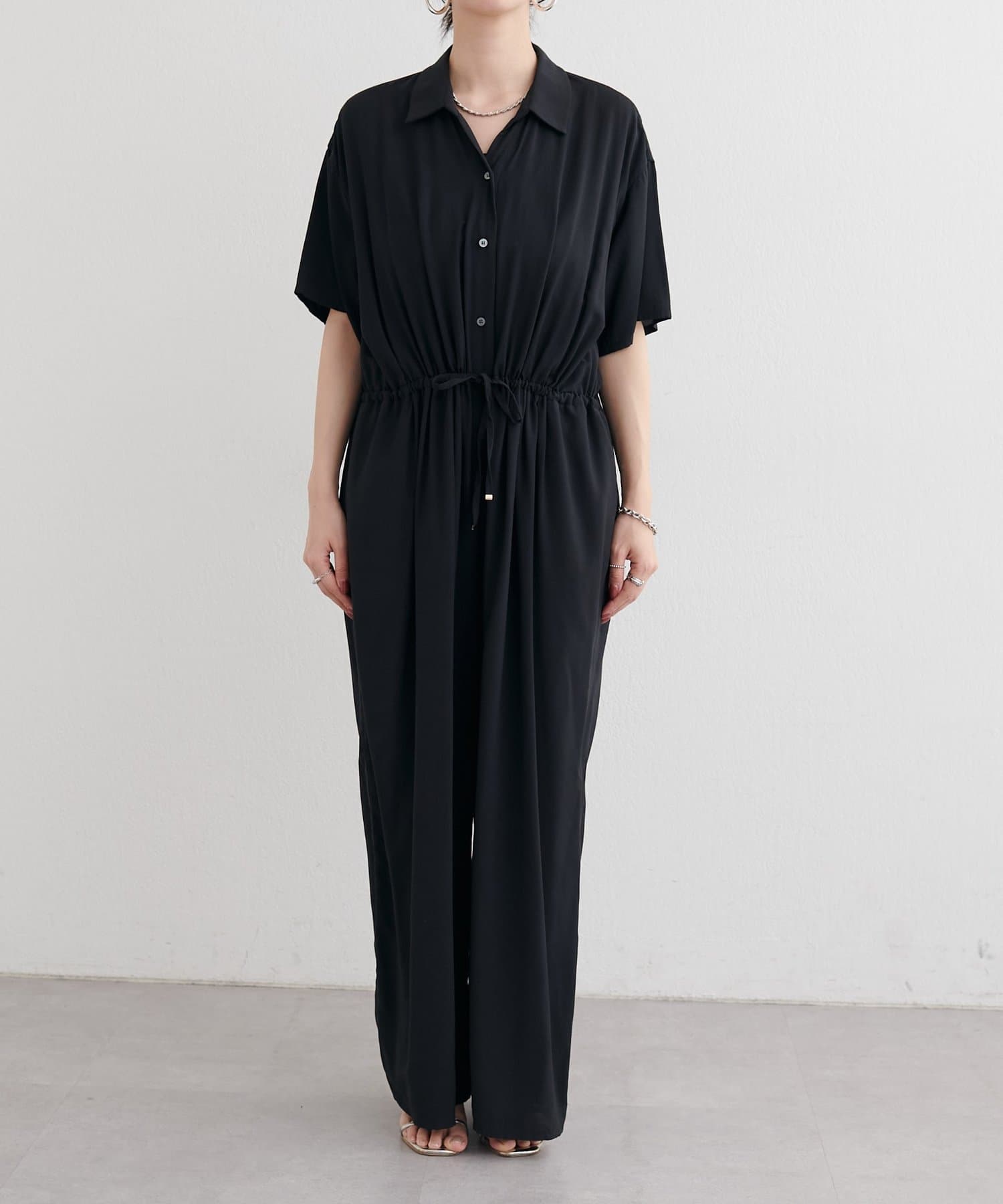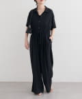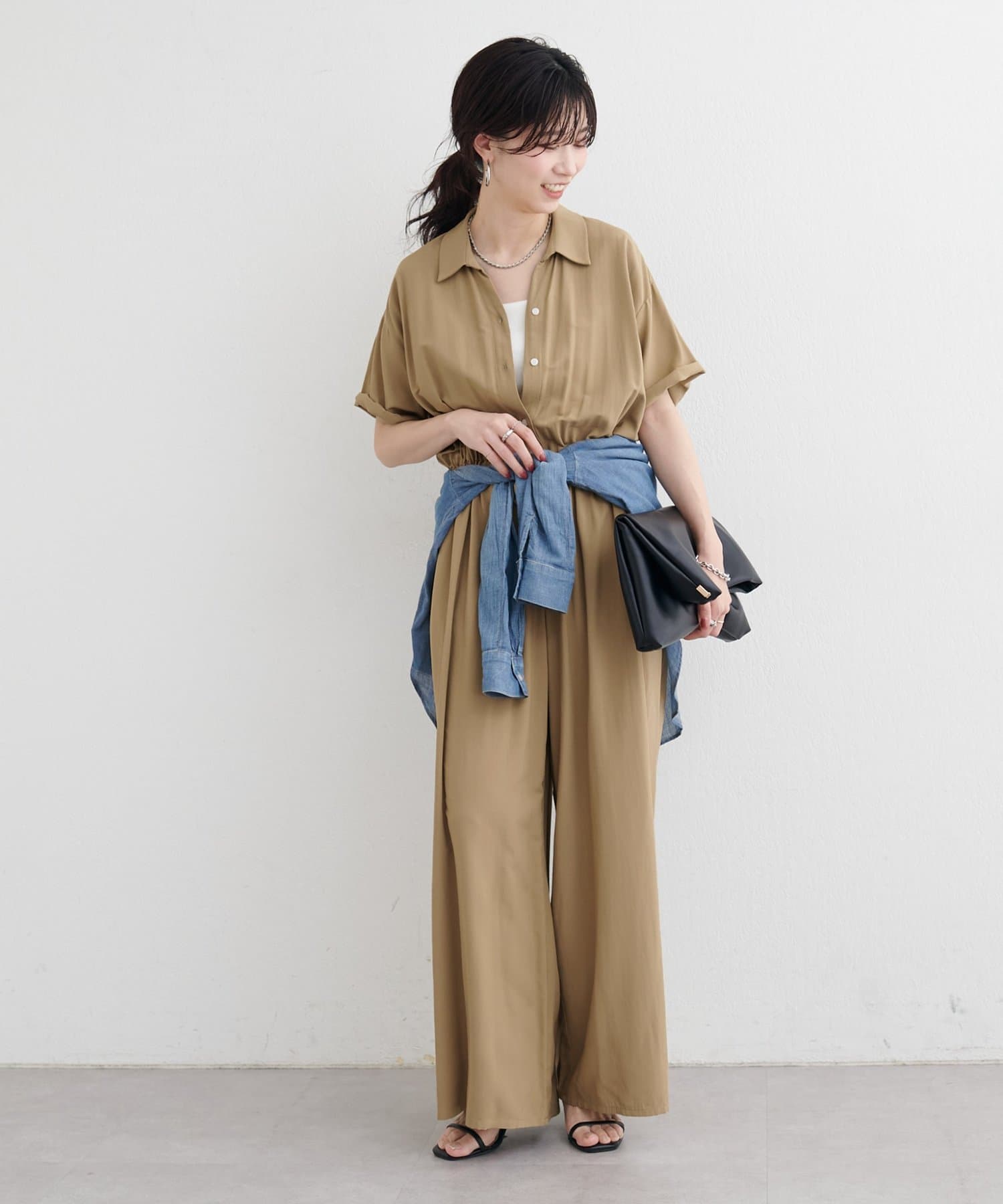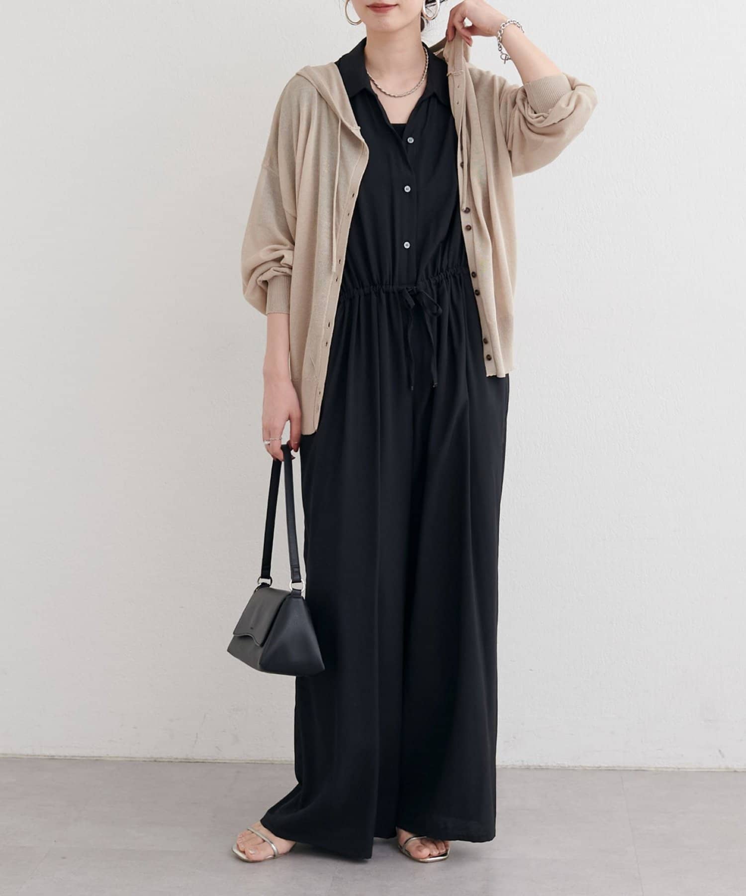 落ち感のあるなめらかな素材で仕立てた、大人な印象のオールインワン。
