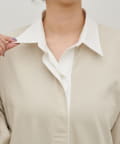 襟付きデザインが程よくきちんと感をプラスし、カジュアルになりすぎない大人のバランスに仕上げました。