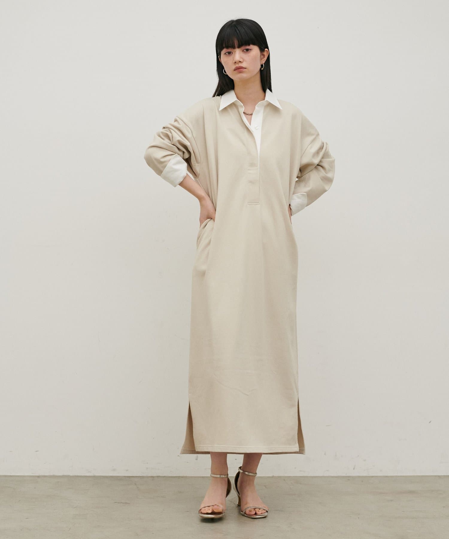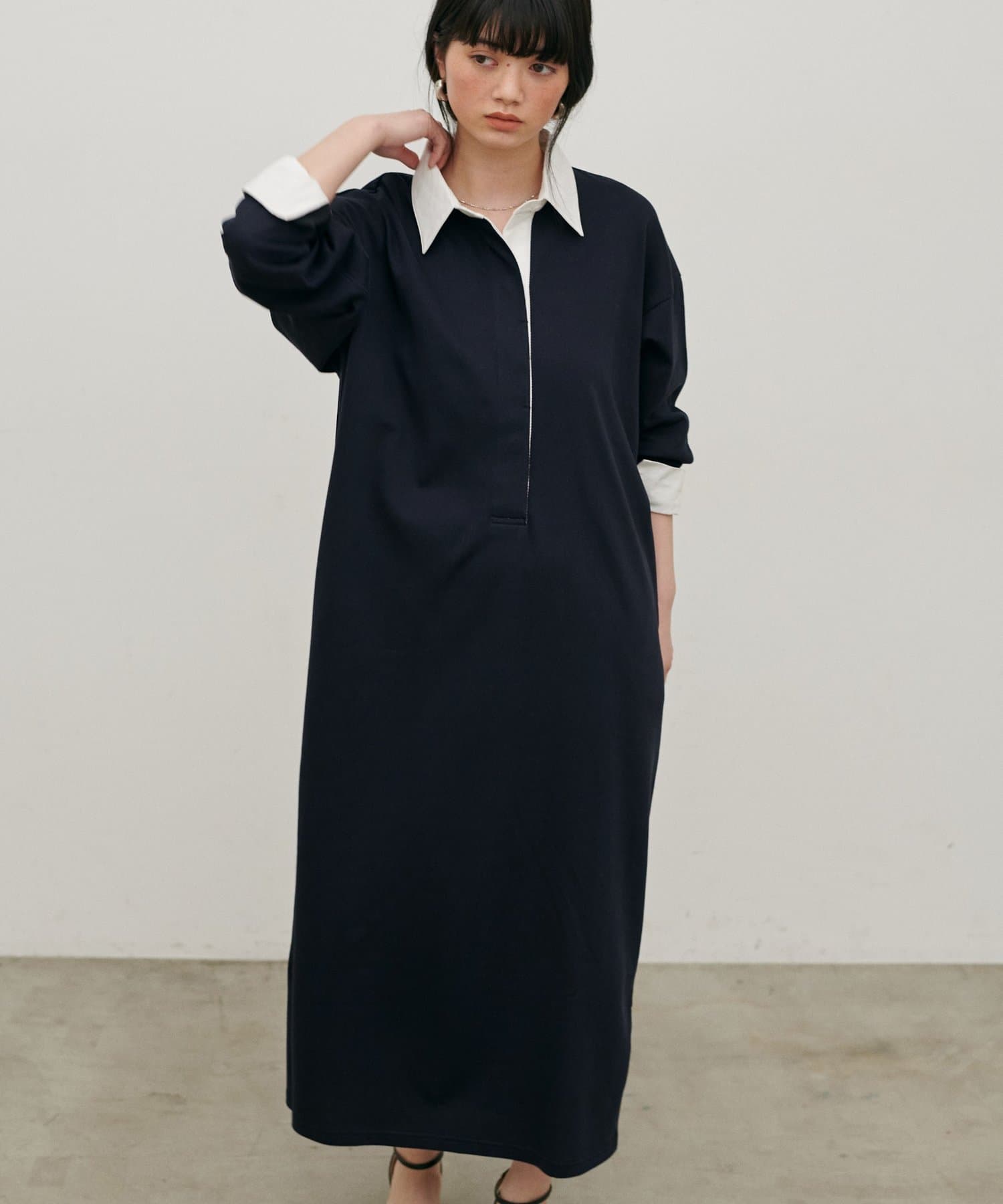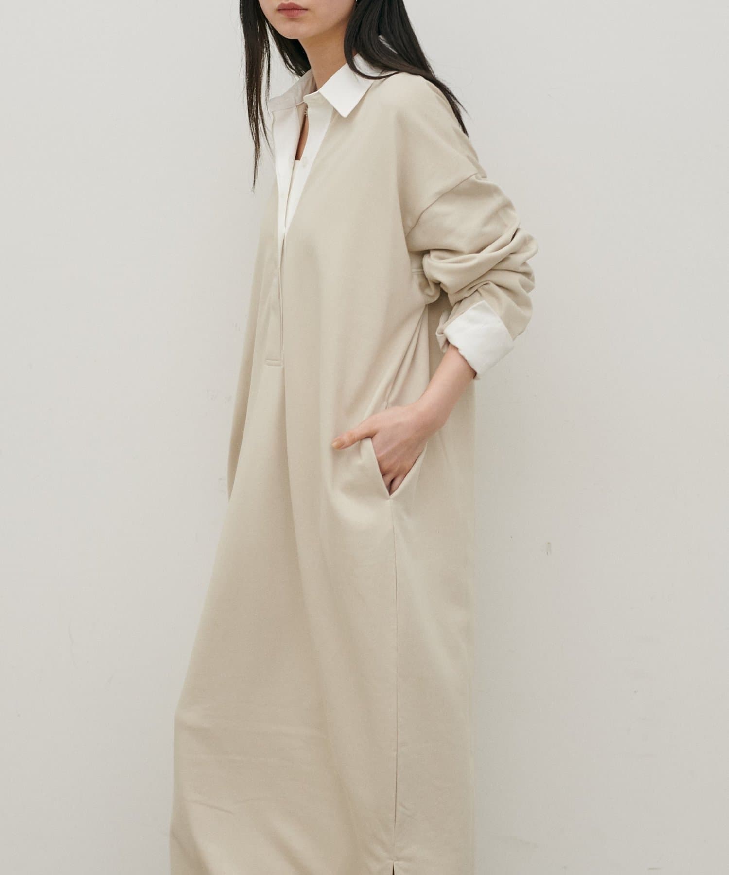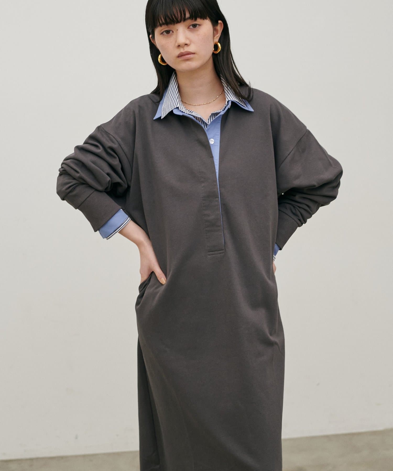ポロシャツのディテールを取り入れた、リラックス感のあるスウェットカットソーワンピース。